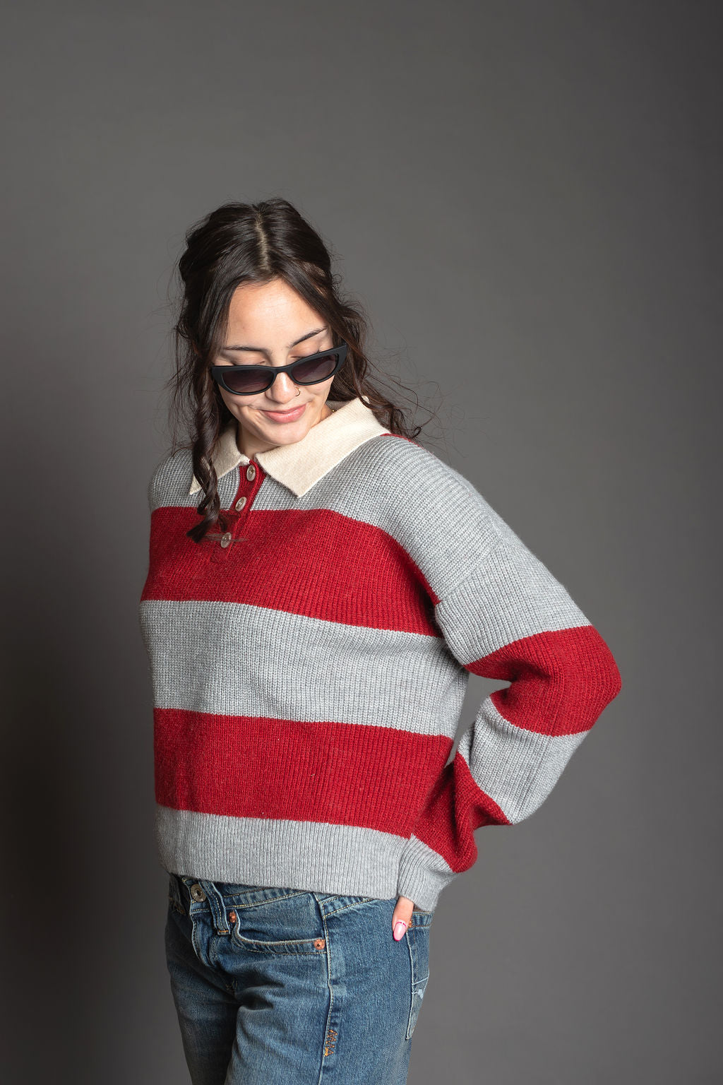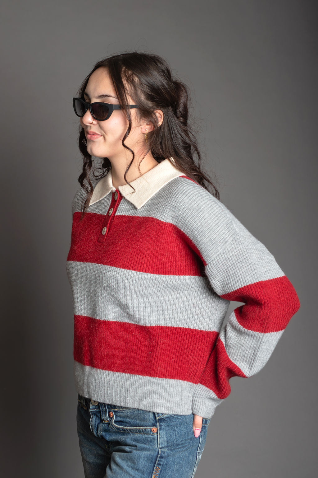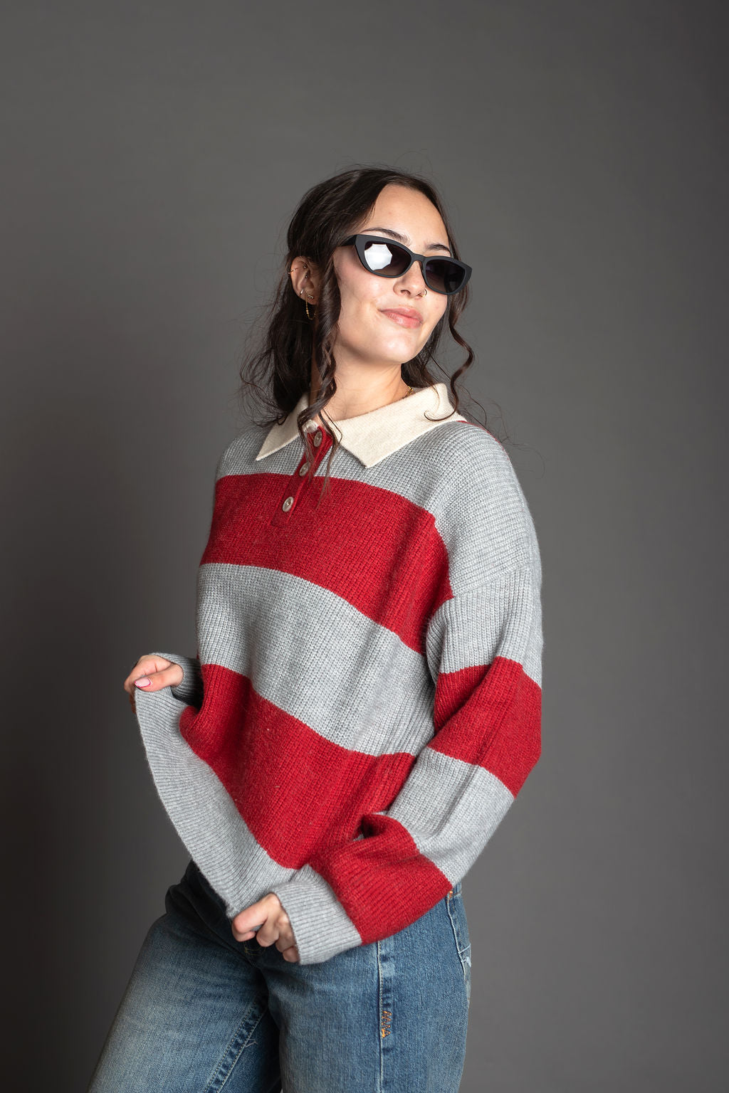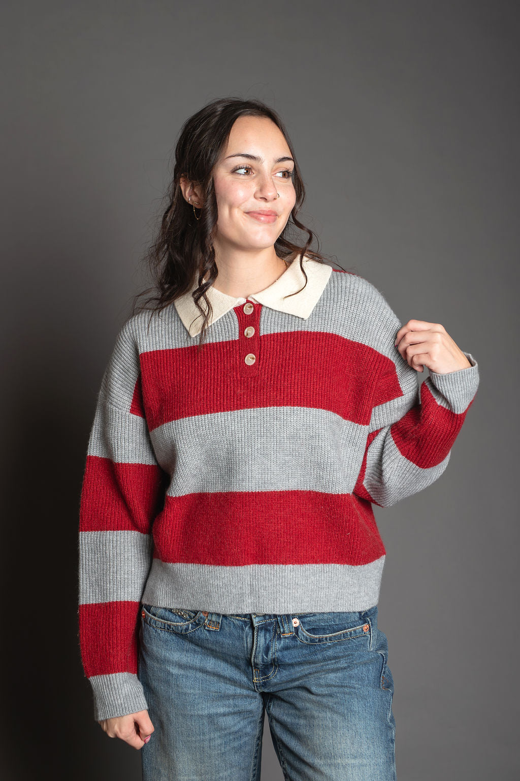 Smart and stylish, this buttoned striped collared long sleeve top offers a polished look with everyday comfort. Featuring classic stripes, a crisp collar, and full button-down front, it's perfect for work, casual outings, or an OSU Buckeyes game!!