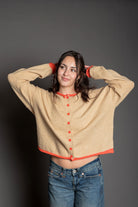 Darcie Taupe/Coral Contrast Cardigan