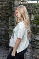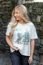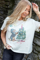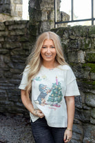 Celebrate the holiday season in style with this playful Merry Meowy Tee from the We The Free collection. Featuring a relaxed fit silhouette, lightweight cotton-blend fabrication, and a cheerful graphic, this festive tee includes charming details like a boat neckline, short sleeves, ribbed accents, and embroidered trim.