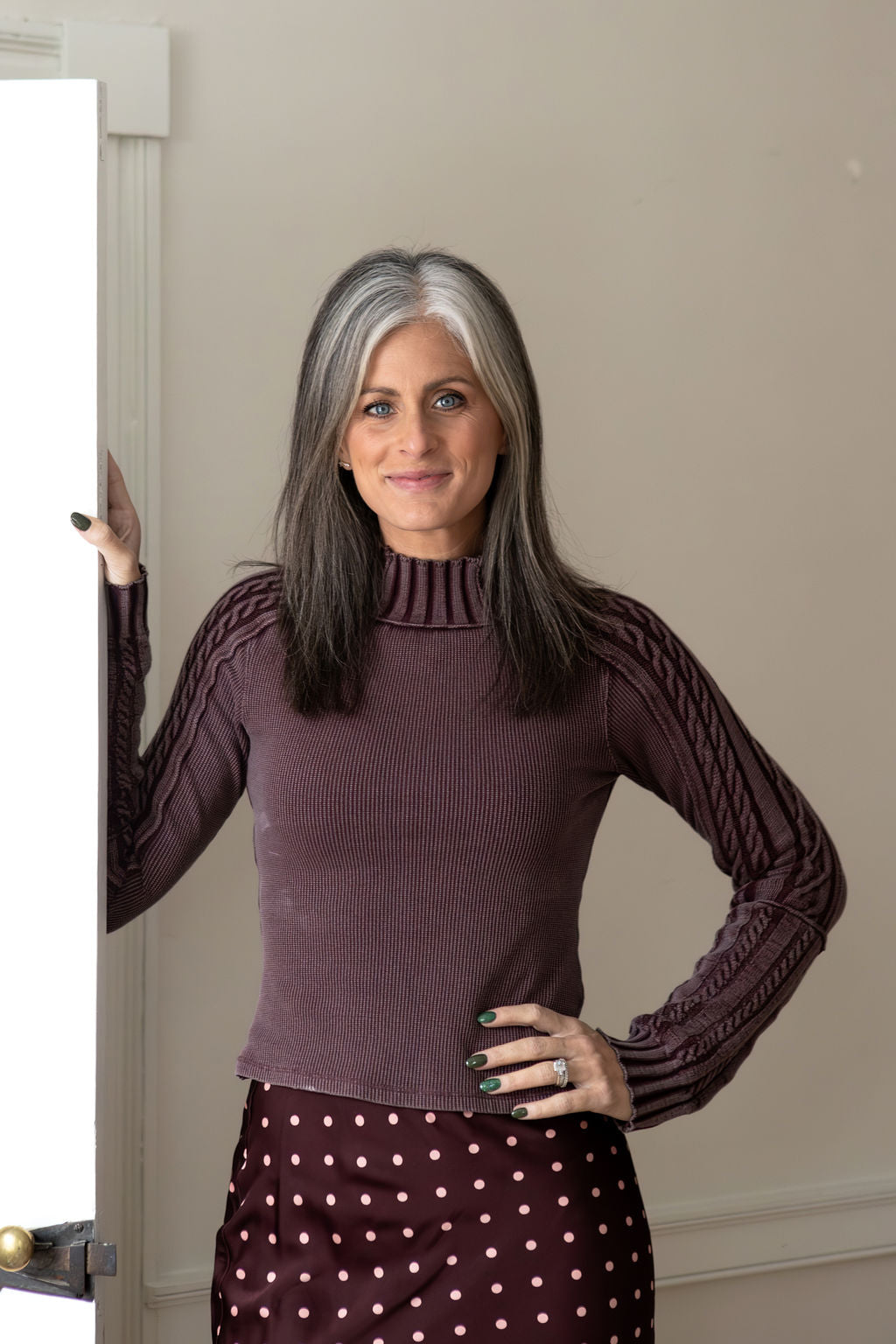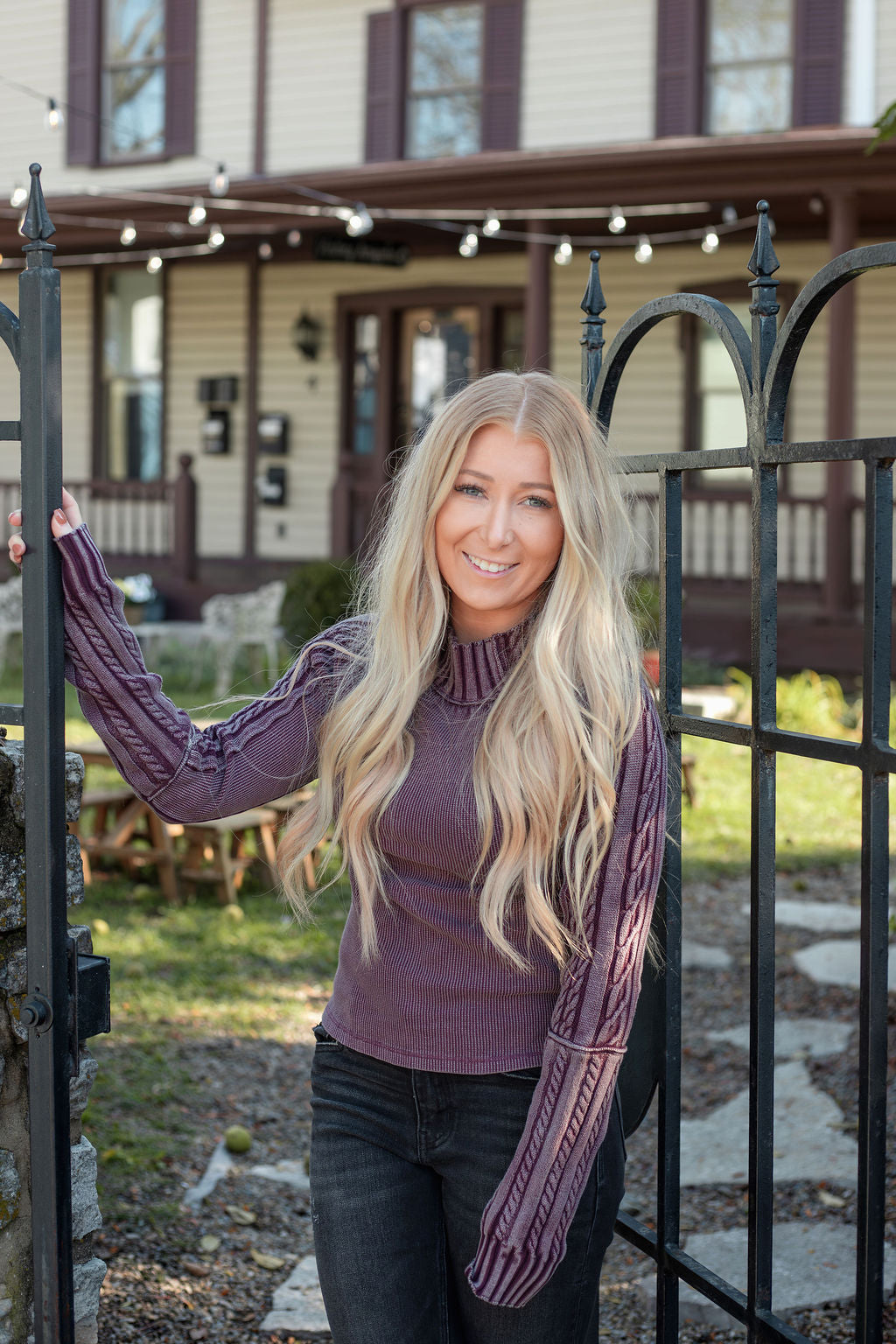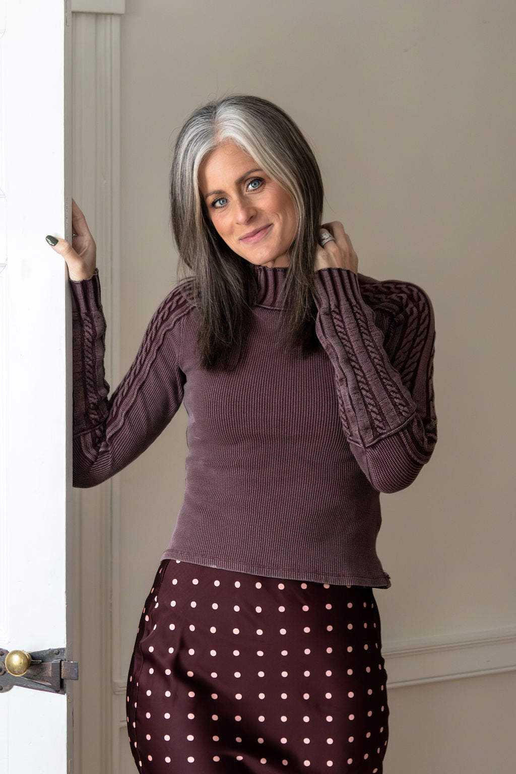 Ashley is 5'2" in a Small.