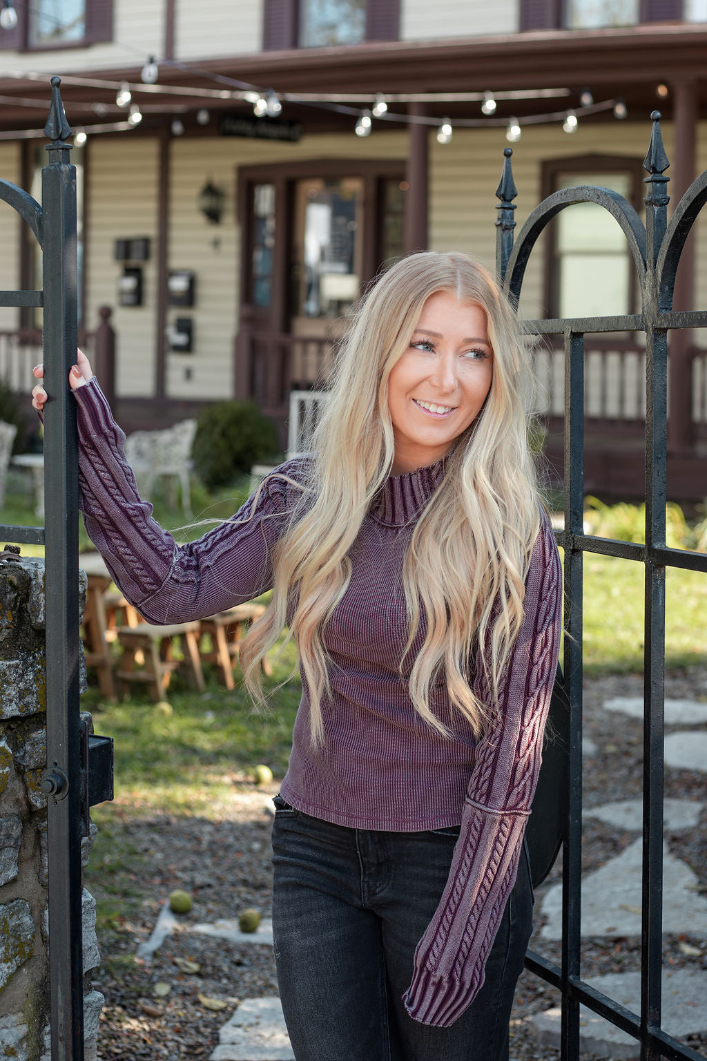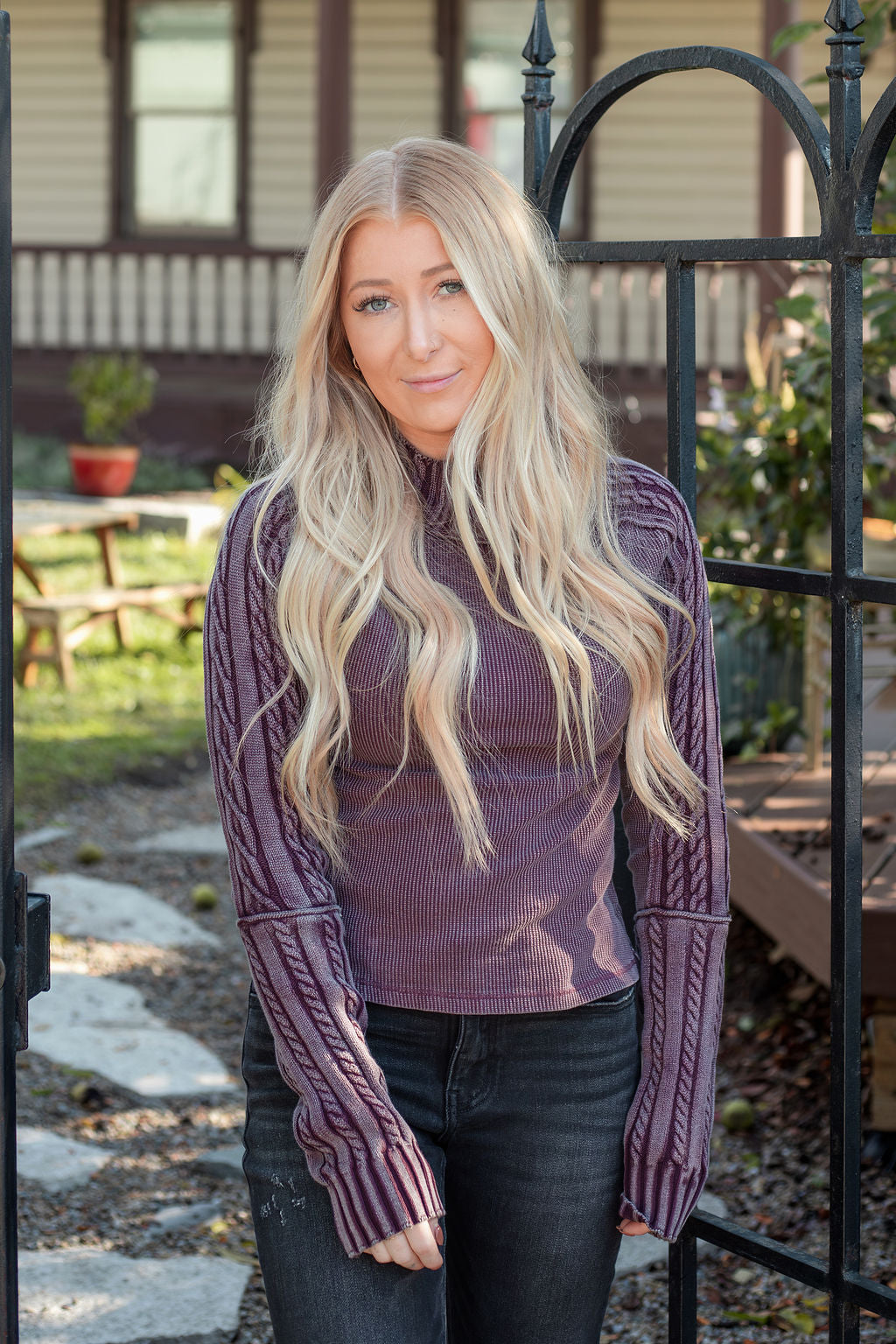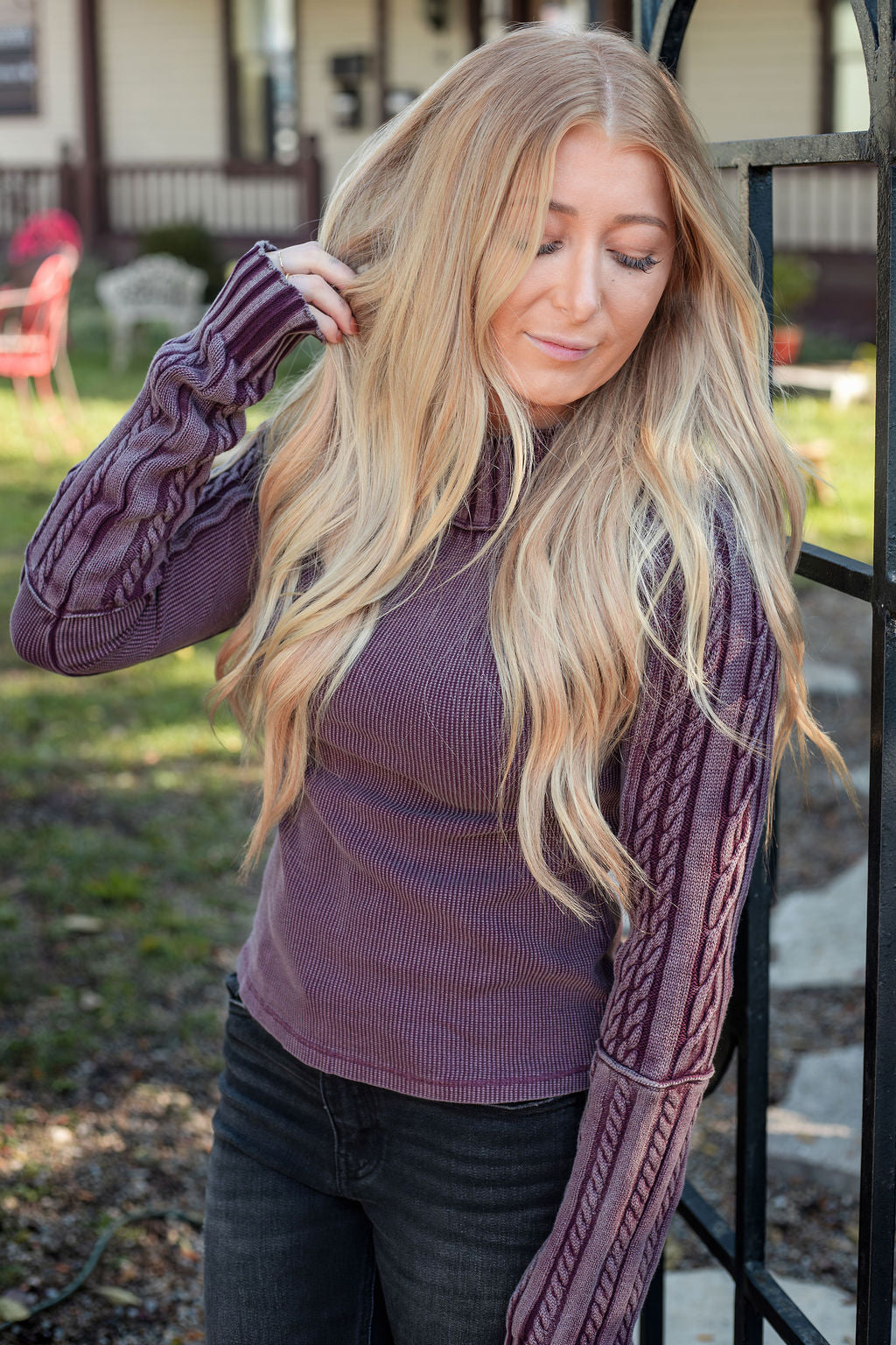 Embrace ultimate coziness with this We The Free sweater, featuring a waffle knit base and cable-knit trims for the perfect blend of comfort and style. The turtle neckline and semi-fitted silhouette create a heritage-inspired, lived-in look that's perfect for everyday wear. Crafted from a soft cotton knit blend with a washed finish. Measurements (Size Small):