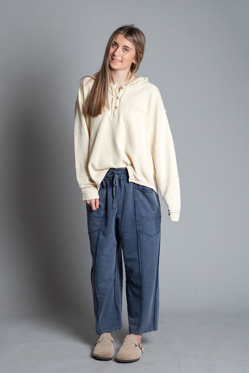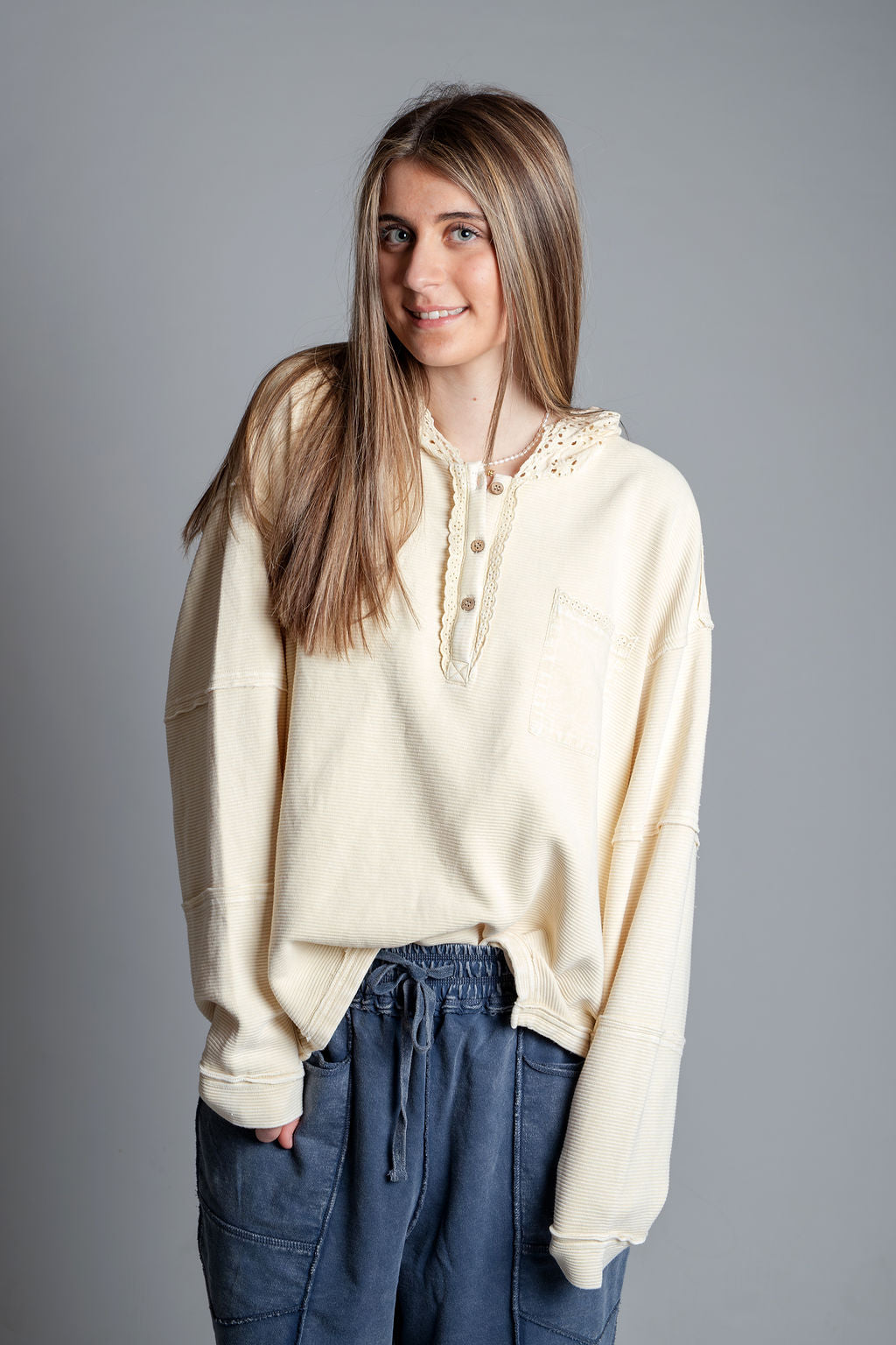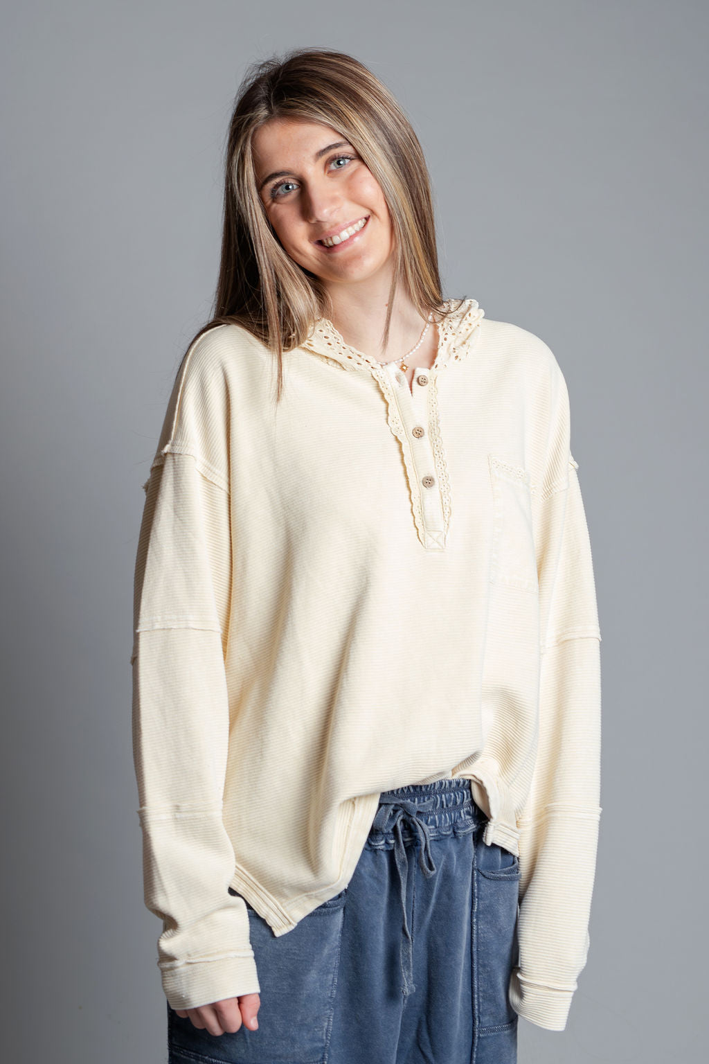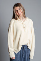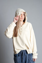 A comfortable and stylish essential! Featuring a soft, mineral-washed finish and textured knit fabric, this relaxed-fit hoodie combines cozy comfort with effortless boho-inspired style. The eyelet hood makes this such a fun, unique piece!