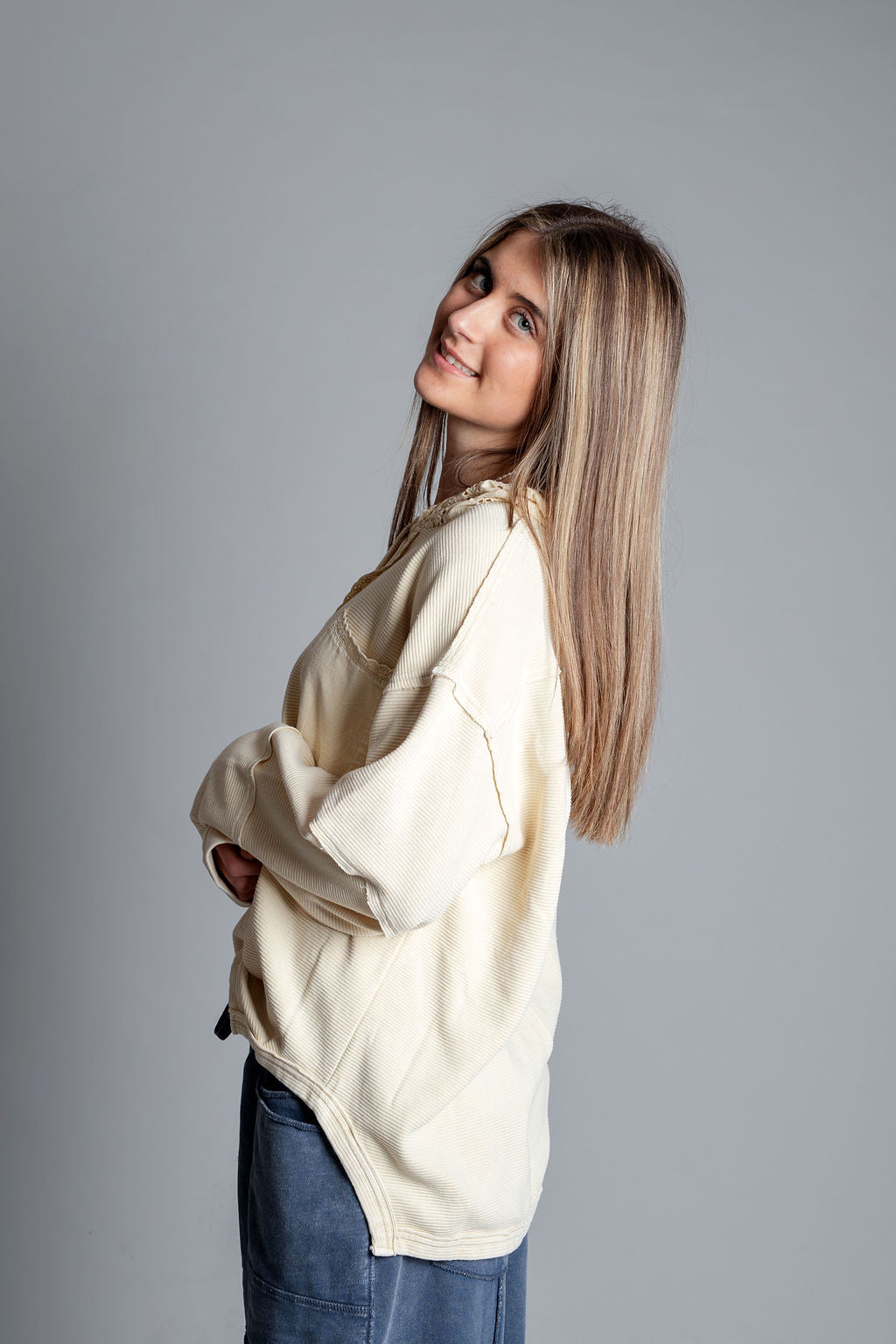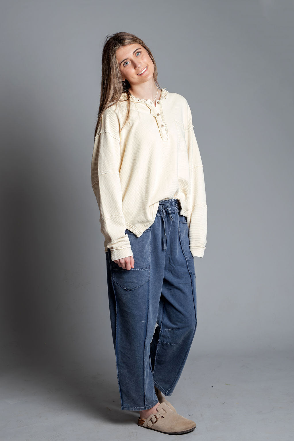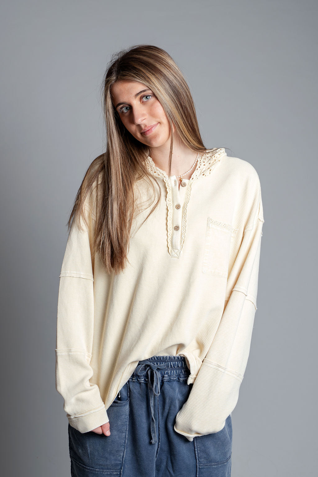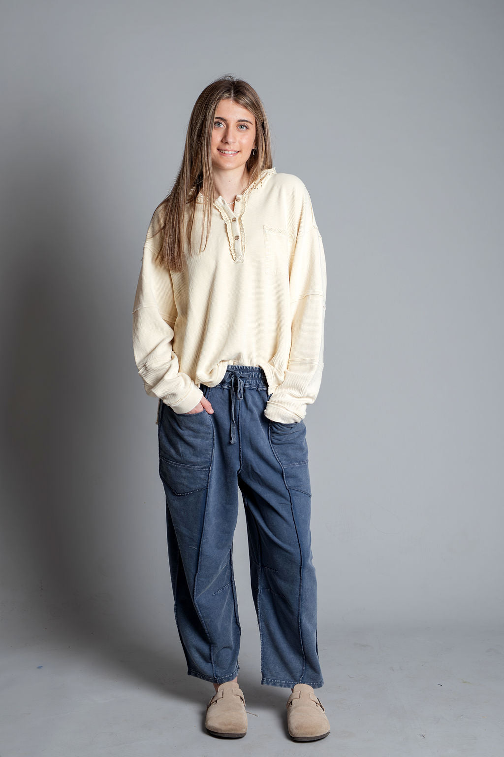 A comfortable and stylish essential! Featuring a soft, mineral-washed finish and textured knit fabric, this relaxed-fit hoodie combines cozy comfort with effortless boho-inspired style. The eyelet hood makes this such a fun, unique piece!