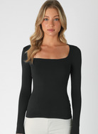 Experience modern simplicity with this Clean Line Square Neck Long Sleeve Top in timeless black. The contemporary square neckline adds sophisticated style, while the seamless design ensures a smooth, irritation-free fit perfect for all-day wear. • Seamless construction • Square neckline design