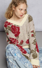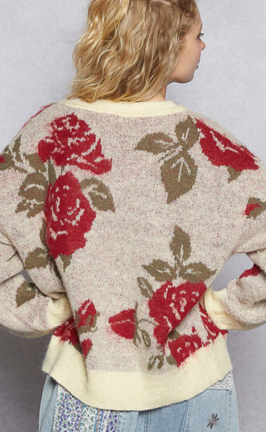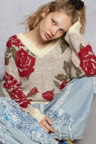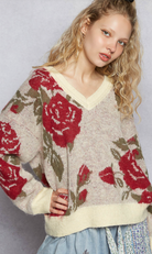 Slip into effortless elegance with this dreamy V-neck sweater, crafted from luxuriously soft mohair that feels like a cloud against your skin. The relaxed fit drapes beautifully for all-day comfort with a beautiful floral design,
