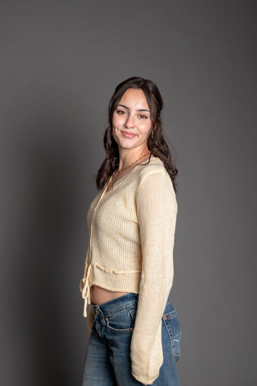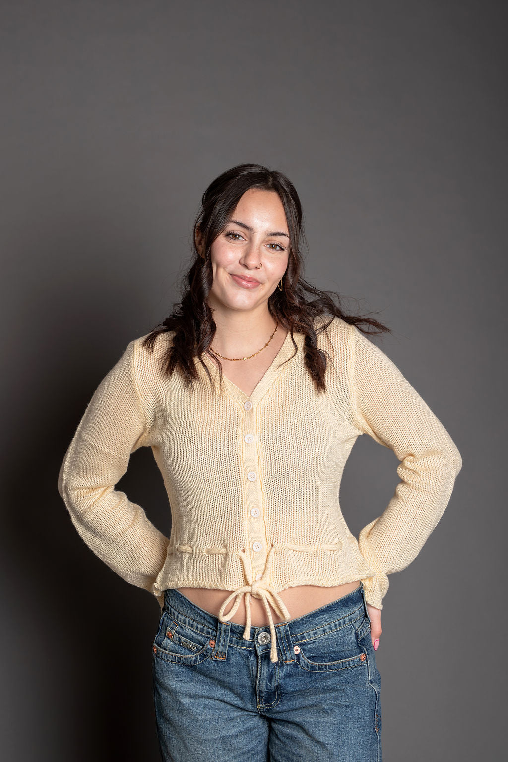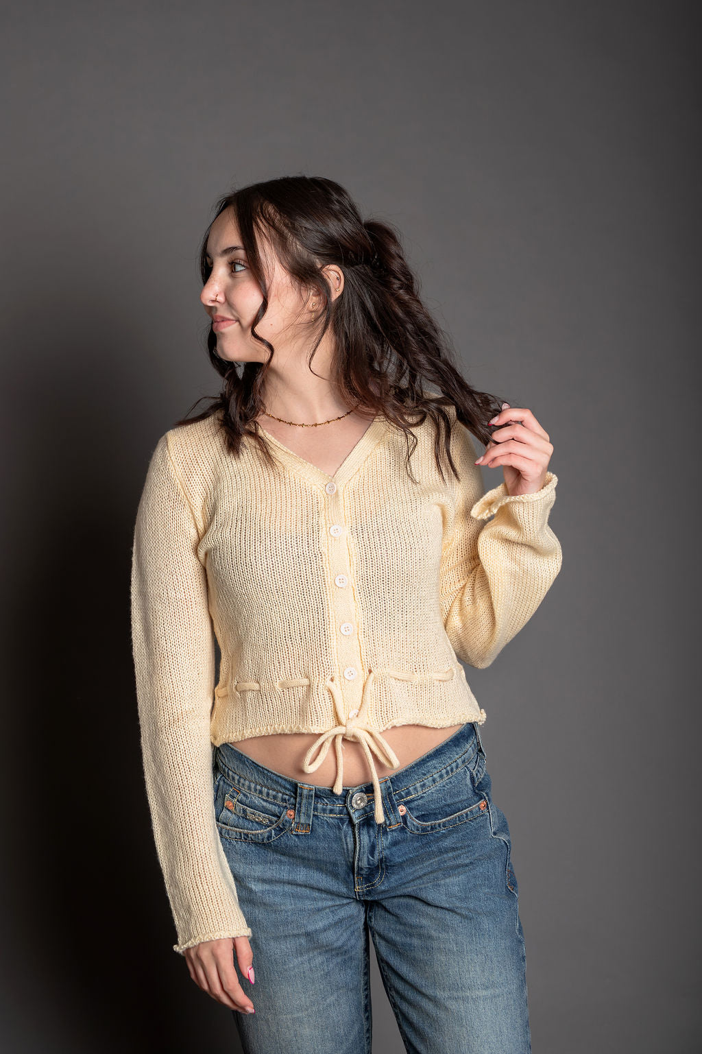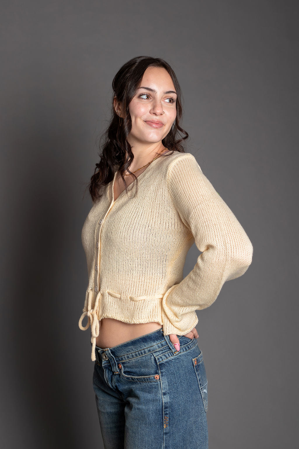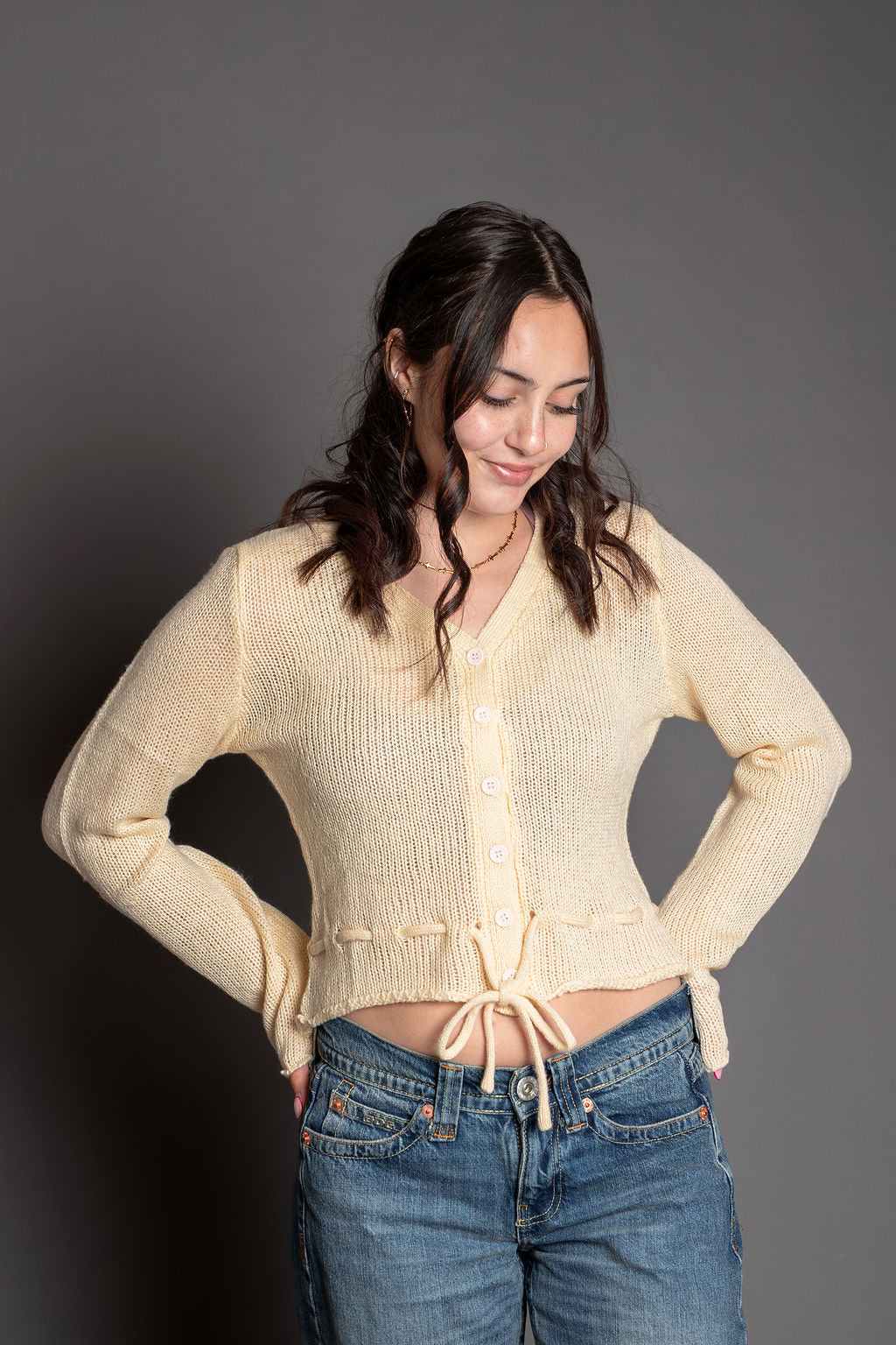 - Style: Button-down cardigan with adjustable ties