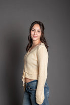She's so cute!! This versatile cardigan tie top combines classic button-down styling with charming tie details at the waist, allowing you to adjust the fit to your preference. Made from polyester for easy care and lasting comfort.
