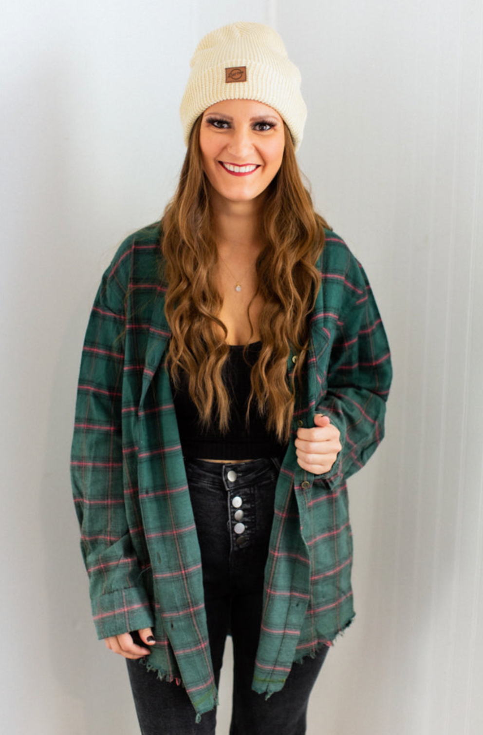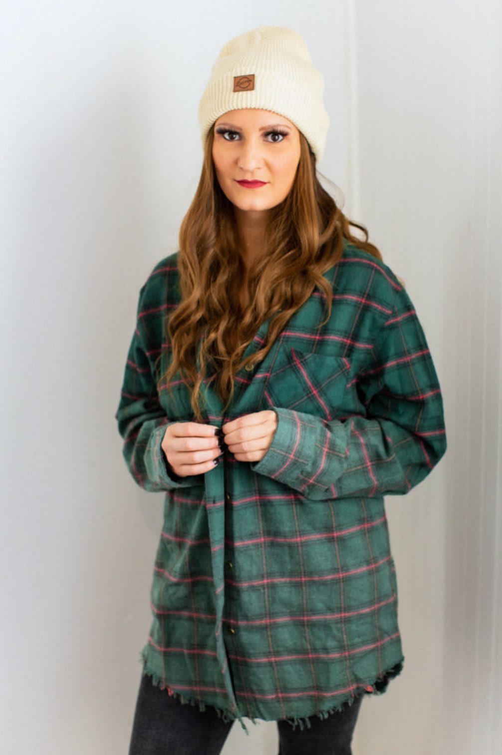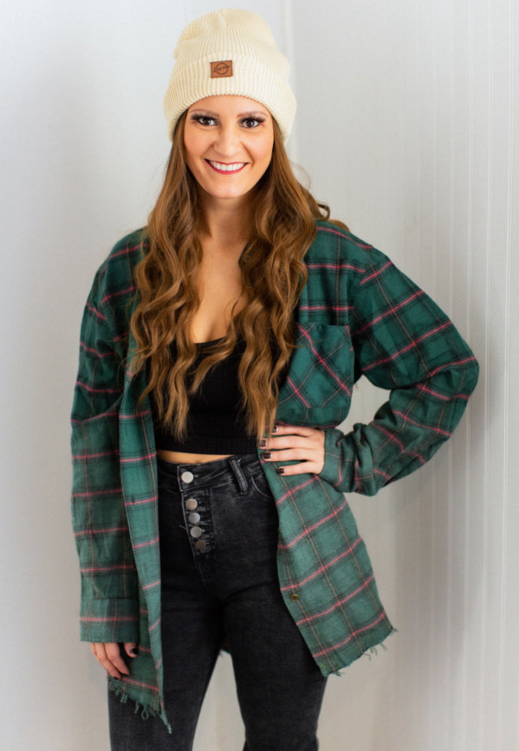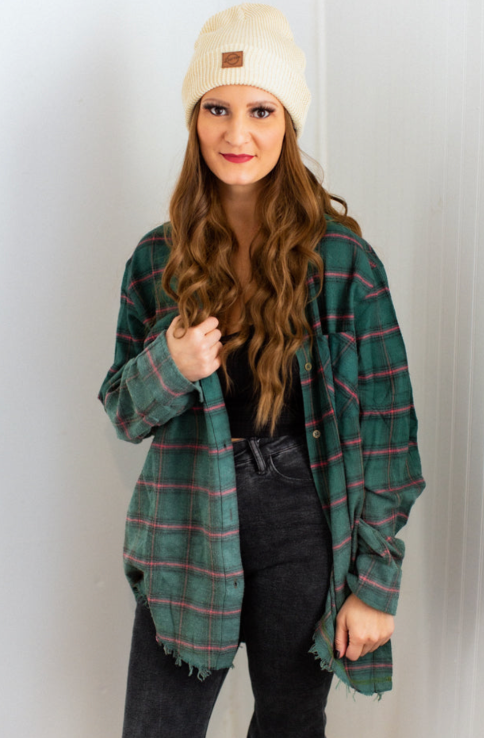 Gus Green Raw Edge Two Tone Plaid Shirt