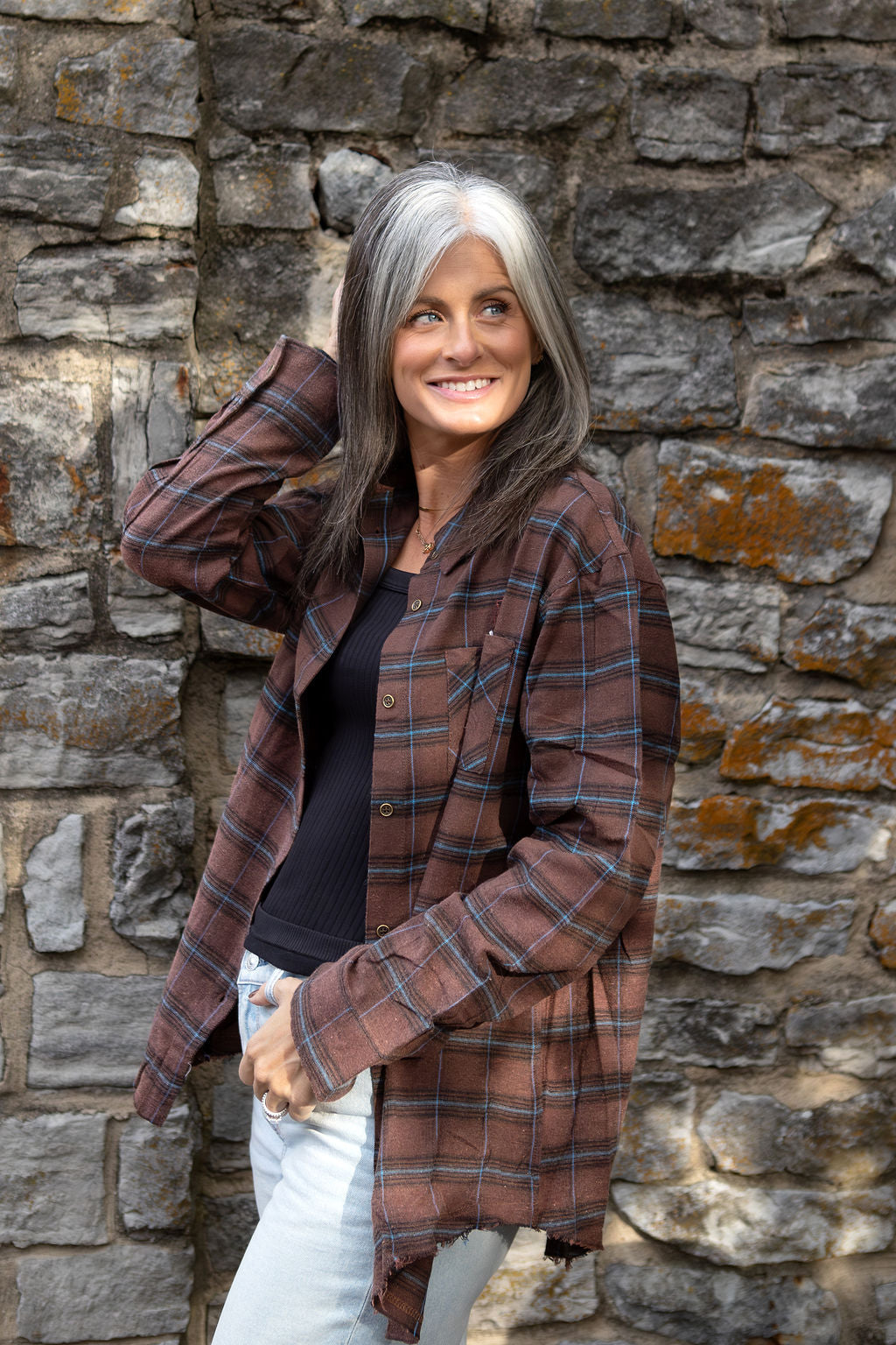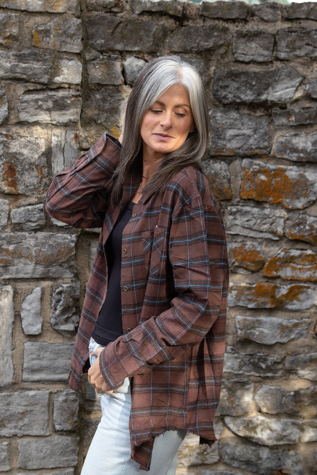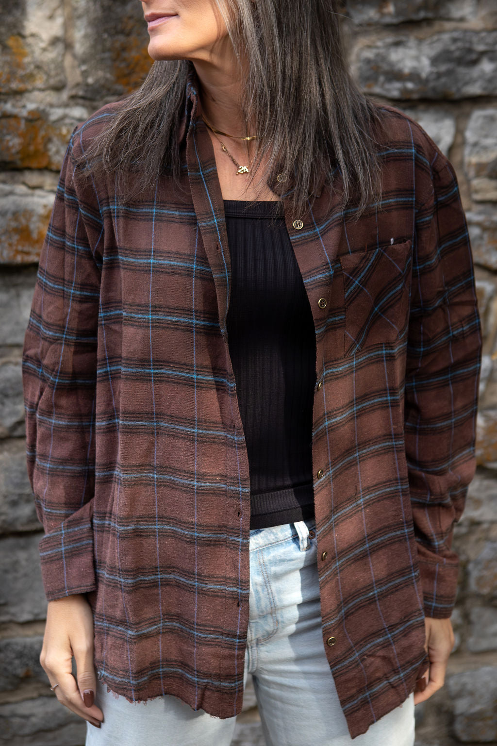 Gus Chocolate Raw Edge Two Tone Plaid Shirt