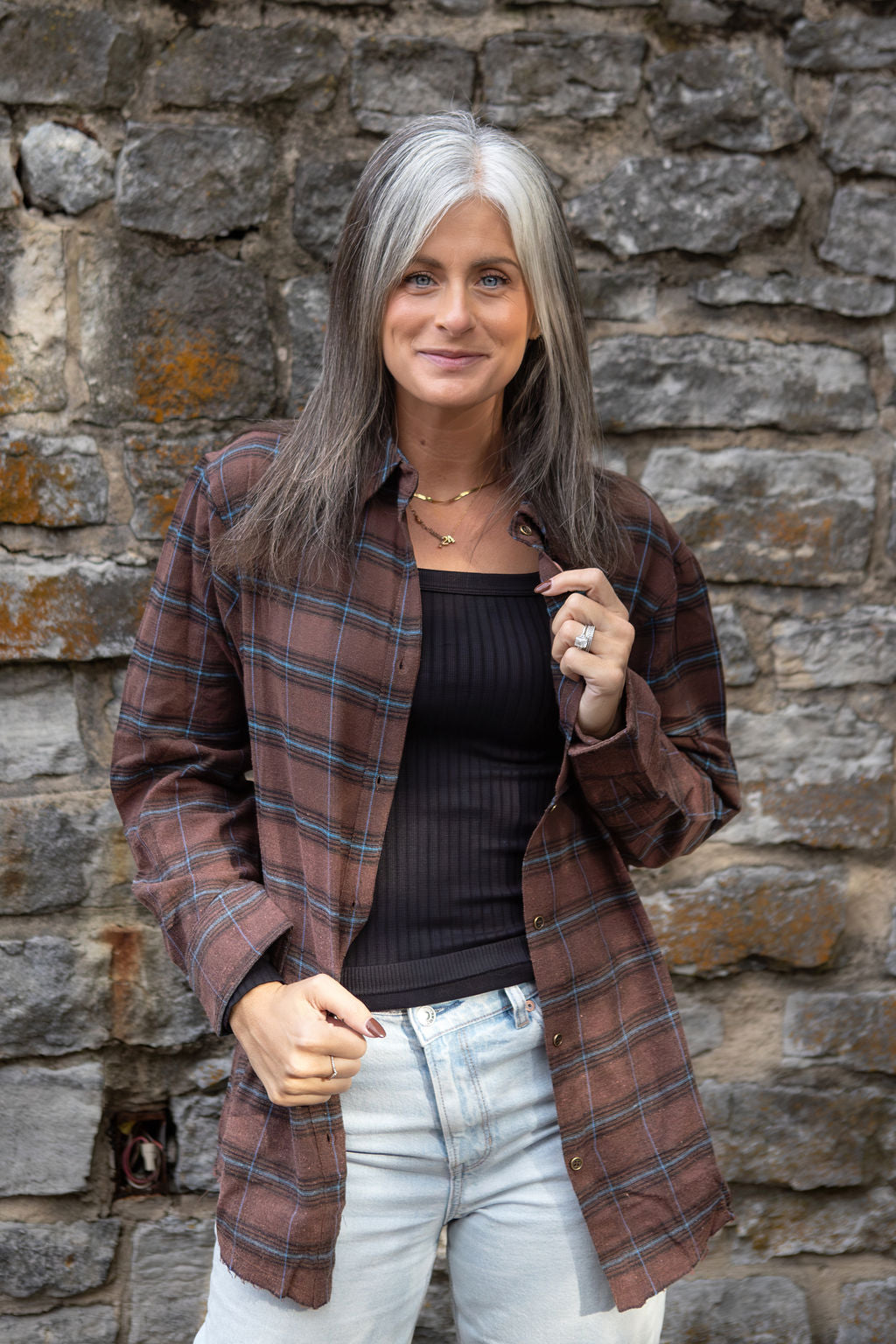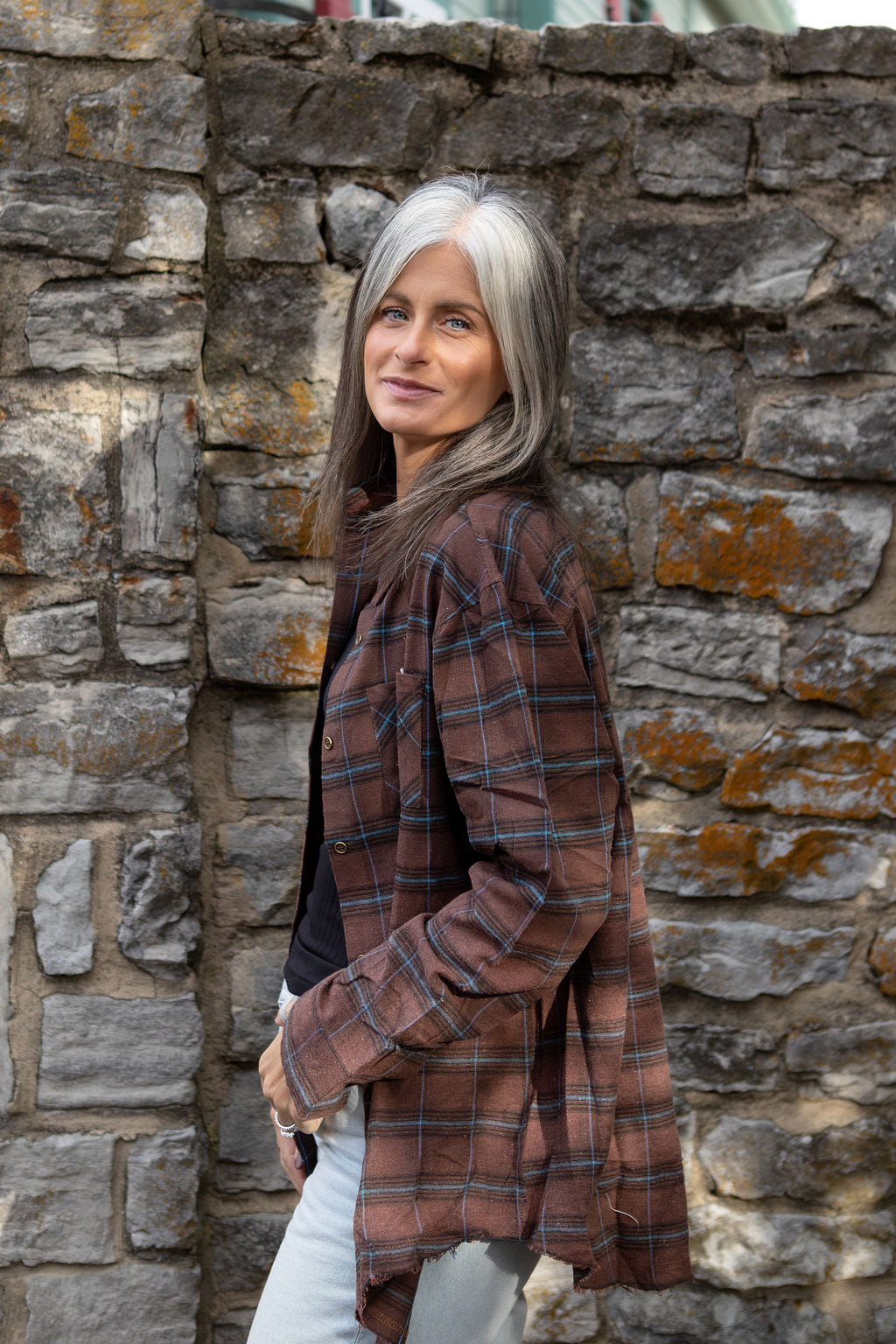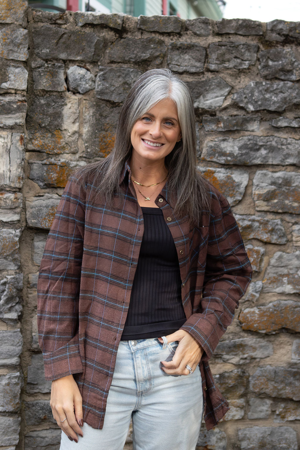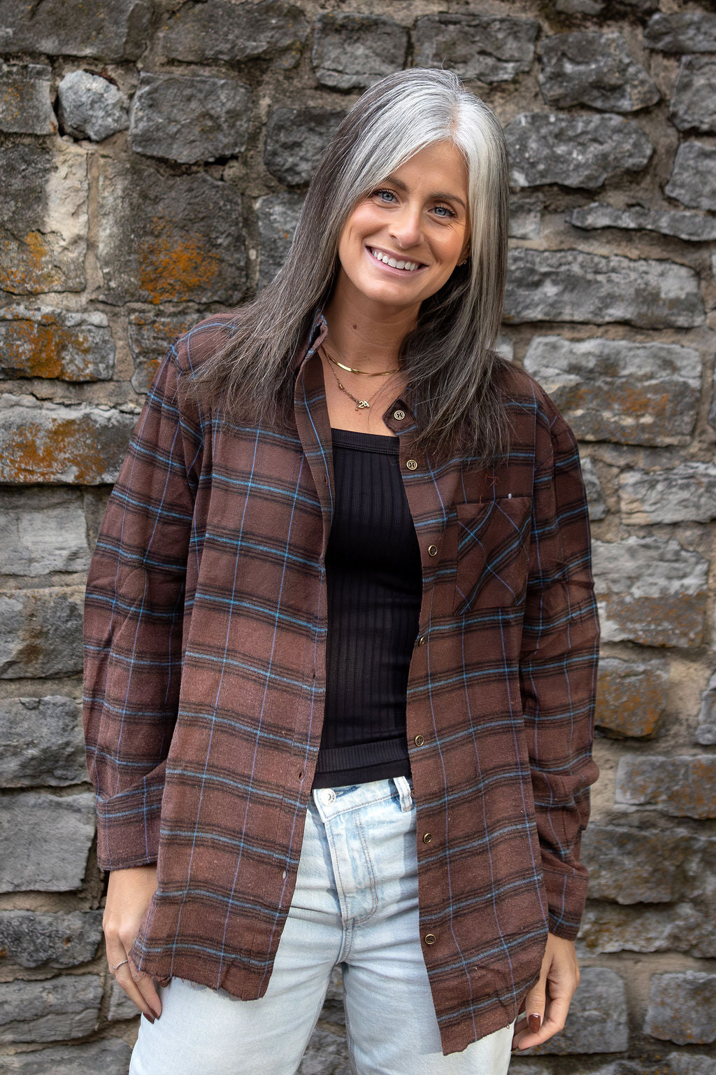 Gus Chocolate Raw Edge Two Tone Plaid Shirt