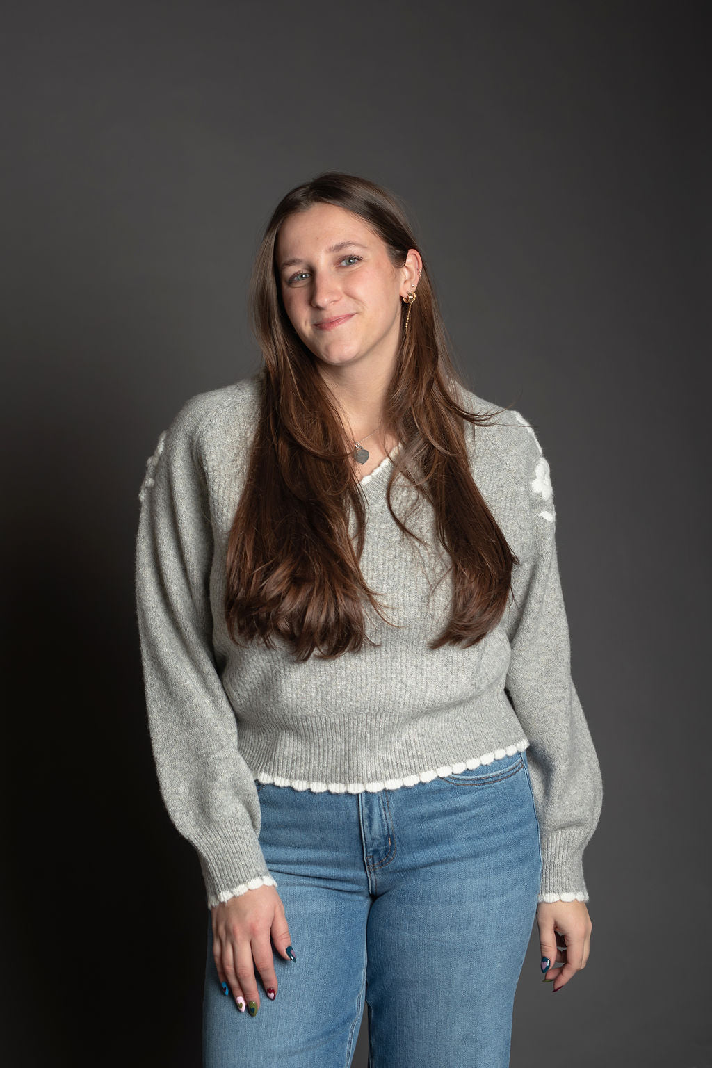 En Vie Floral Applique V-Neck Sweater - Heather Grey