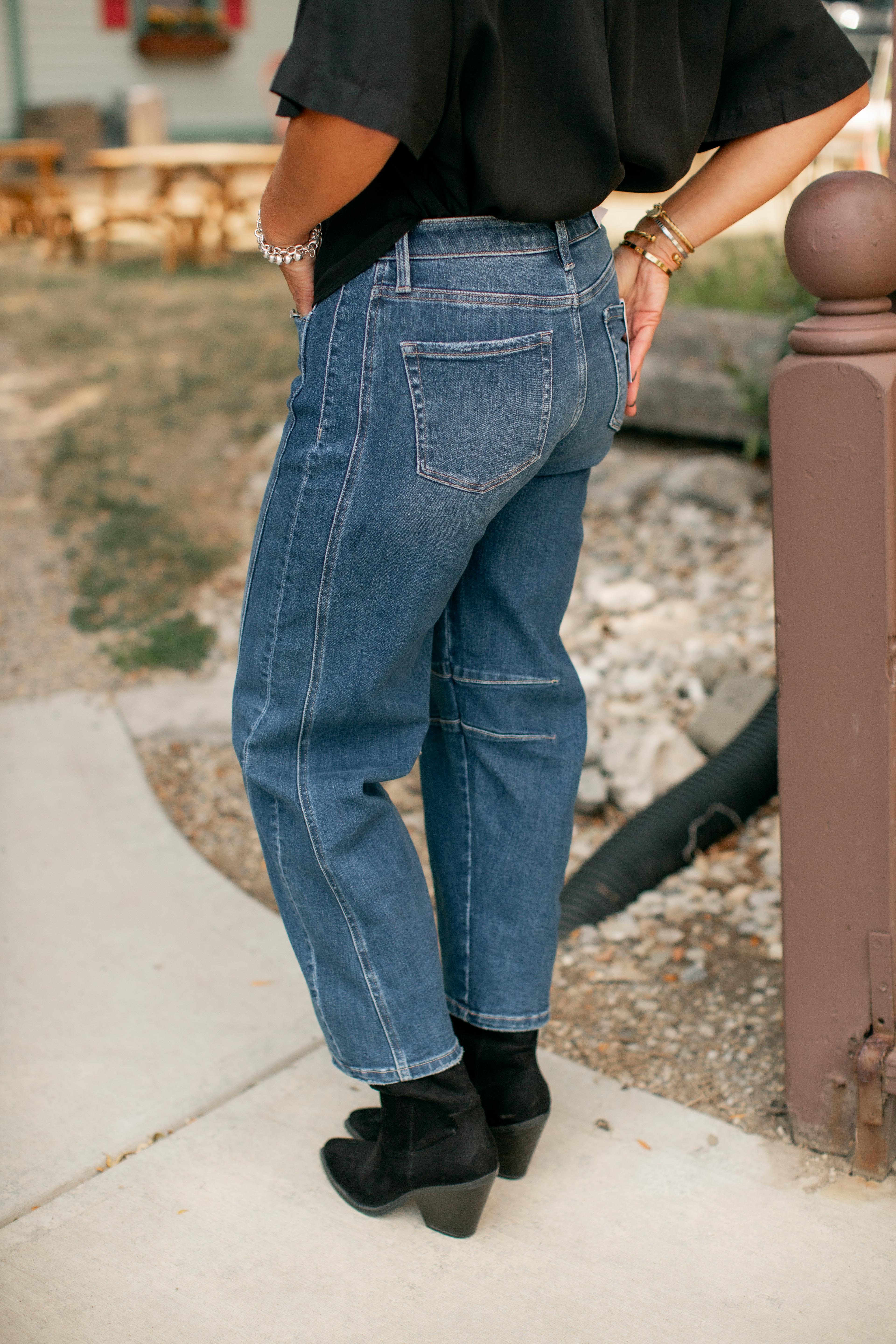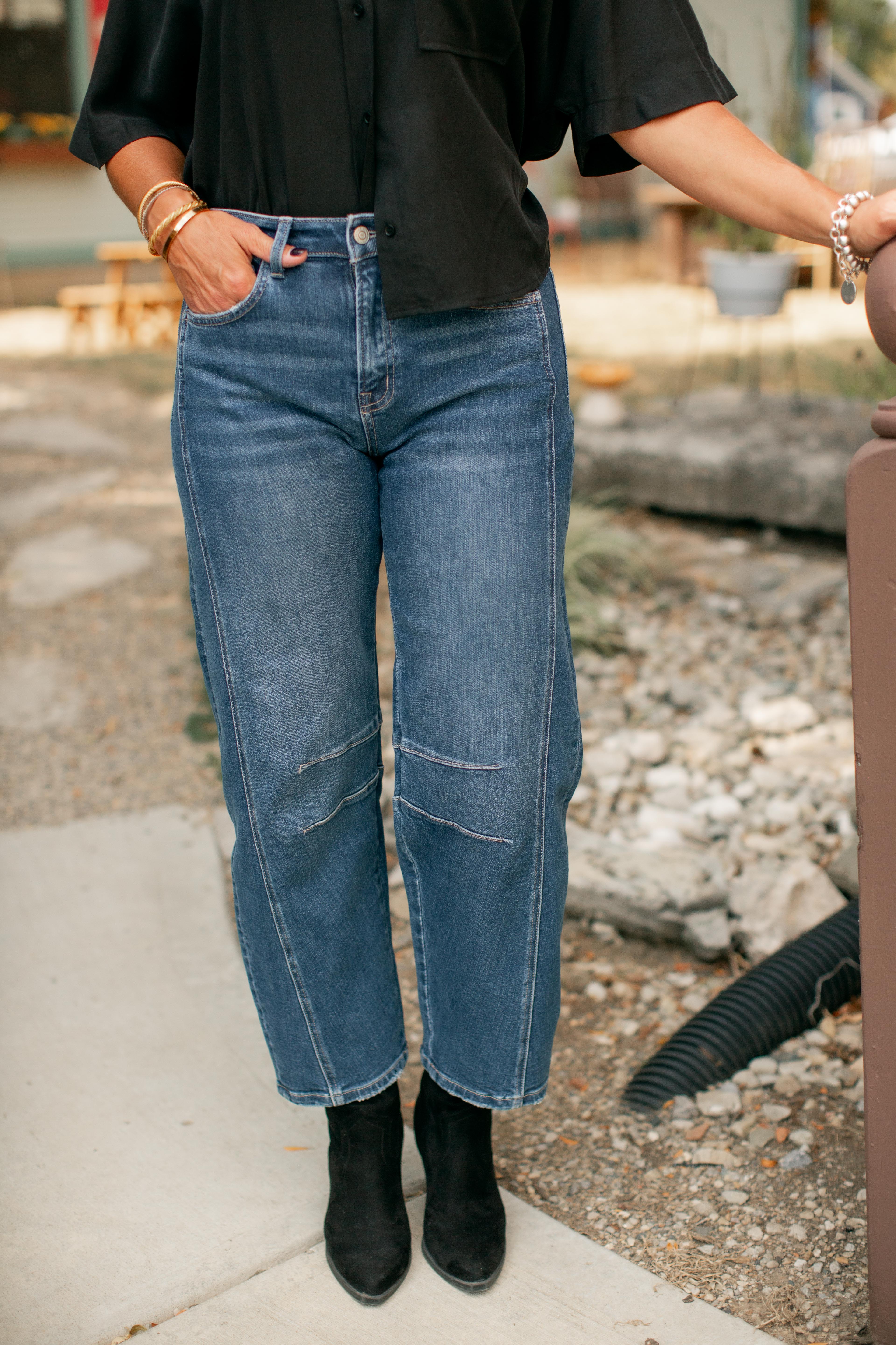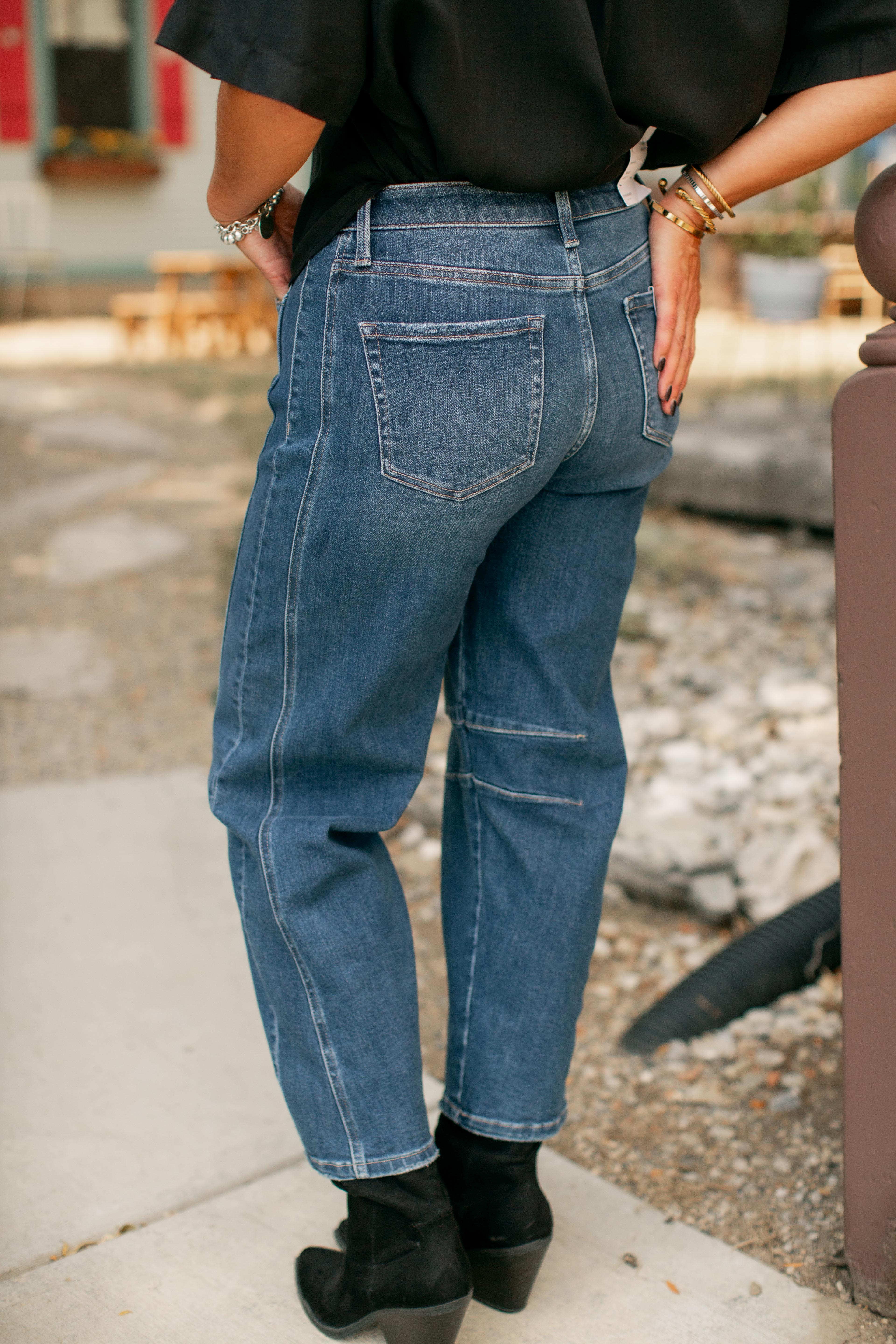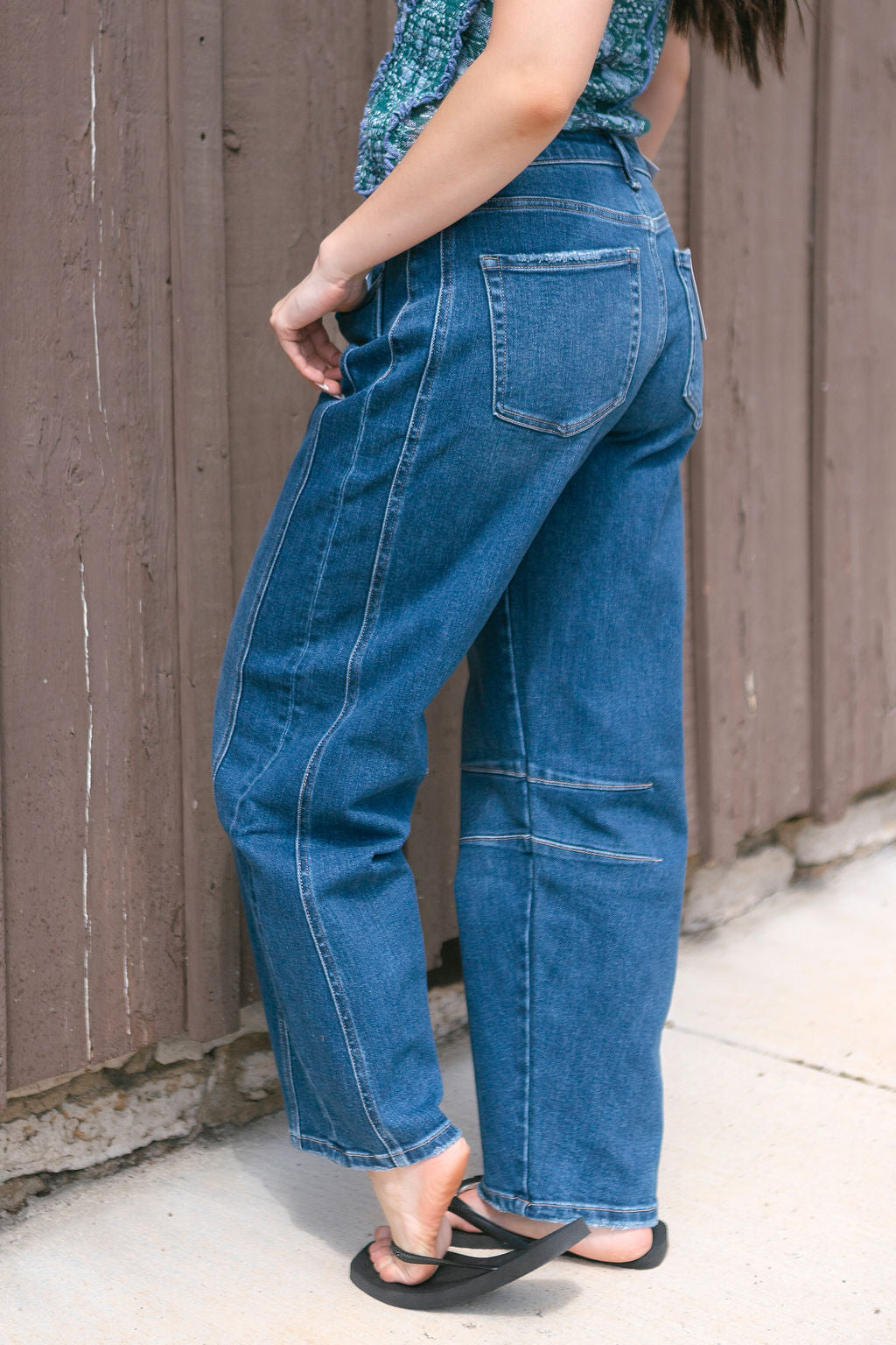 Dark Wash Denim High Rise Barrel Jeans - by Flying Monkey