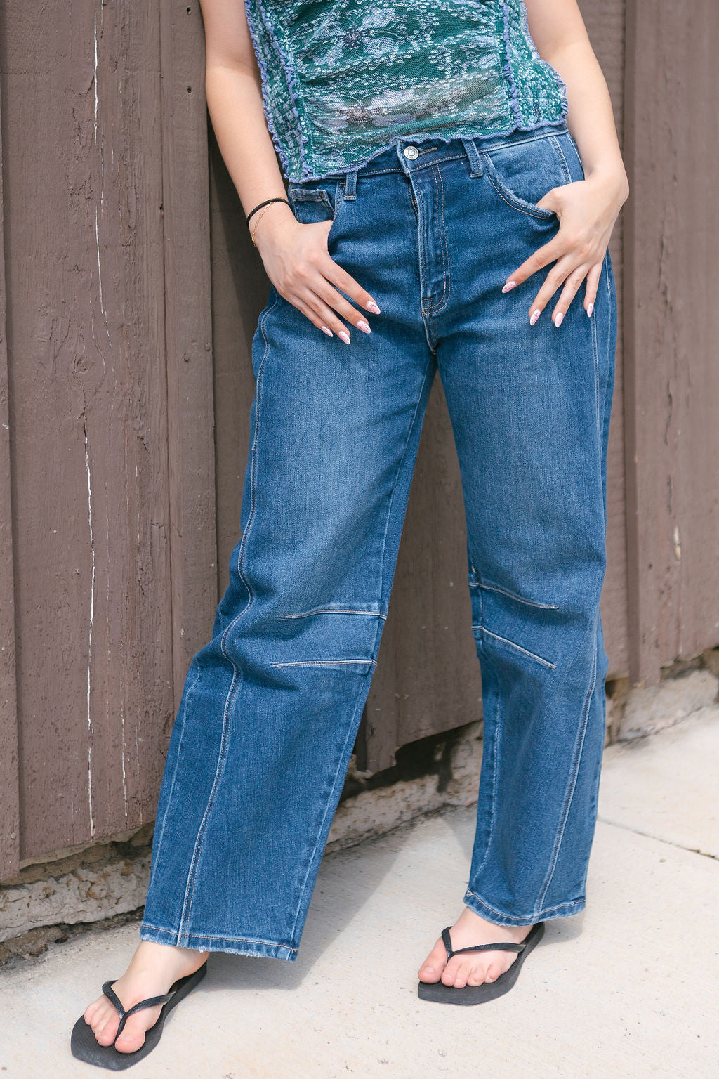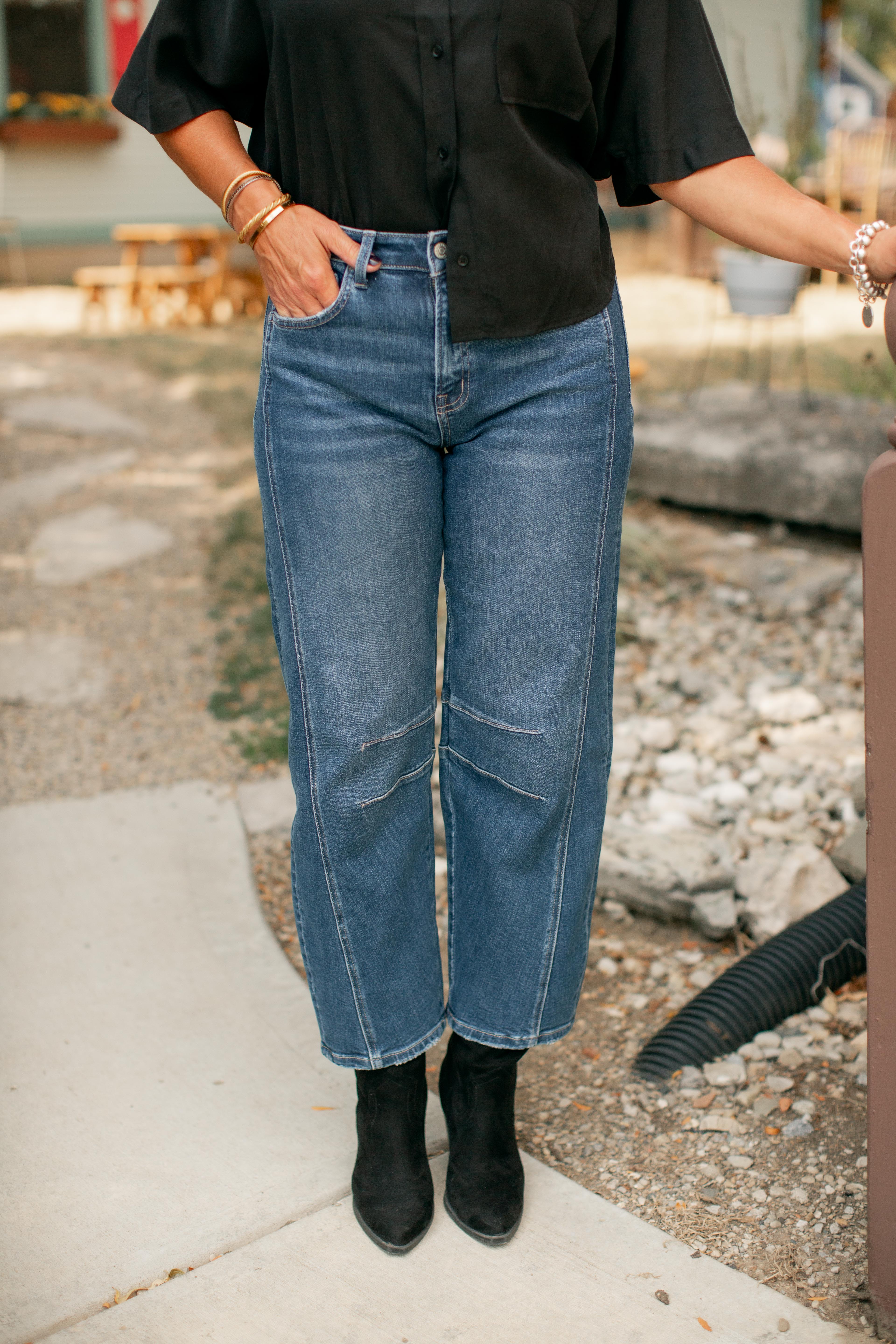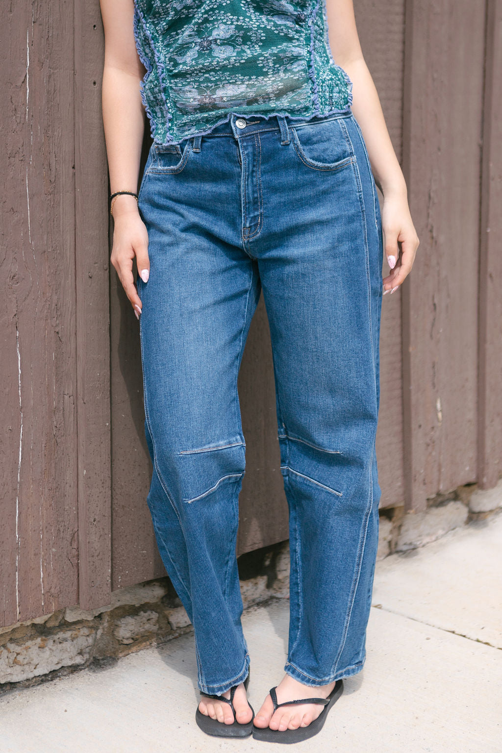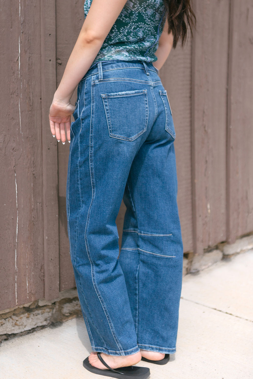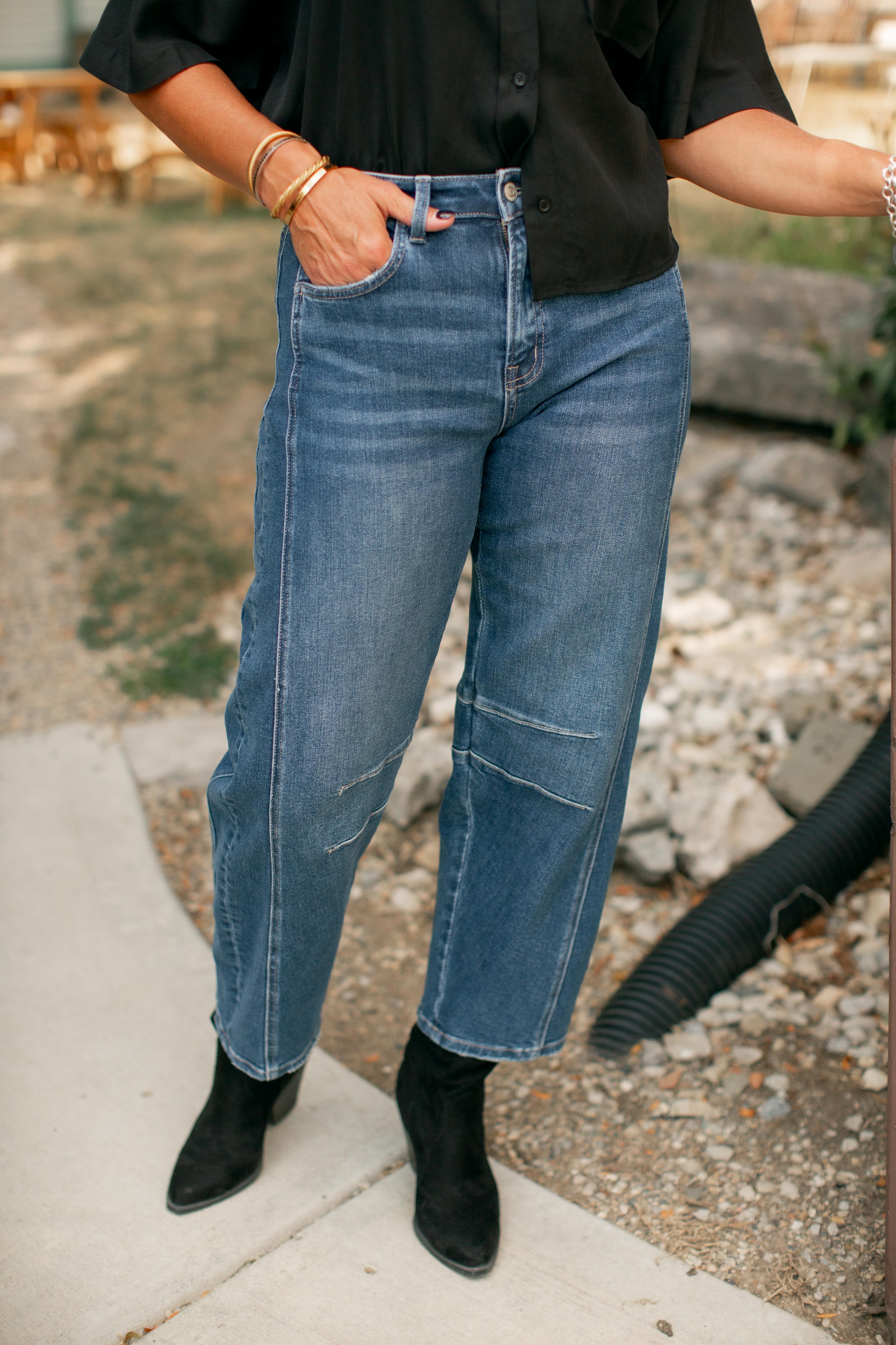 Dark Wash Denim High Rise Barrel Jeans - by Flying Monkey