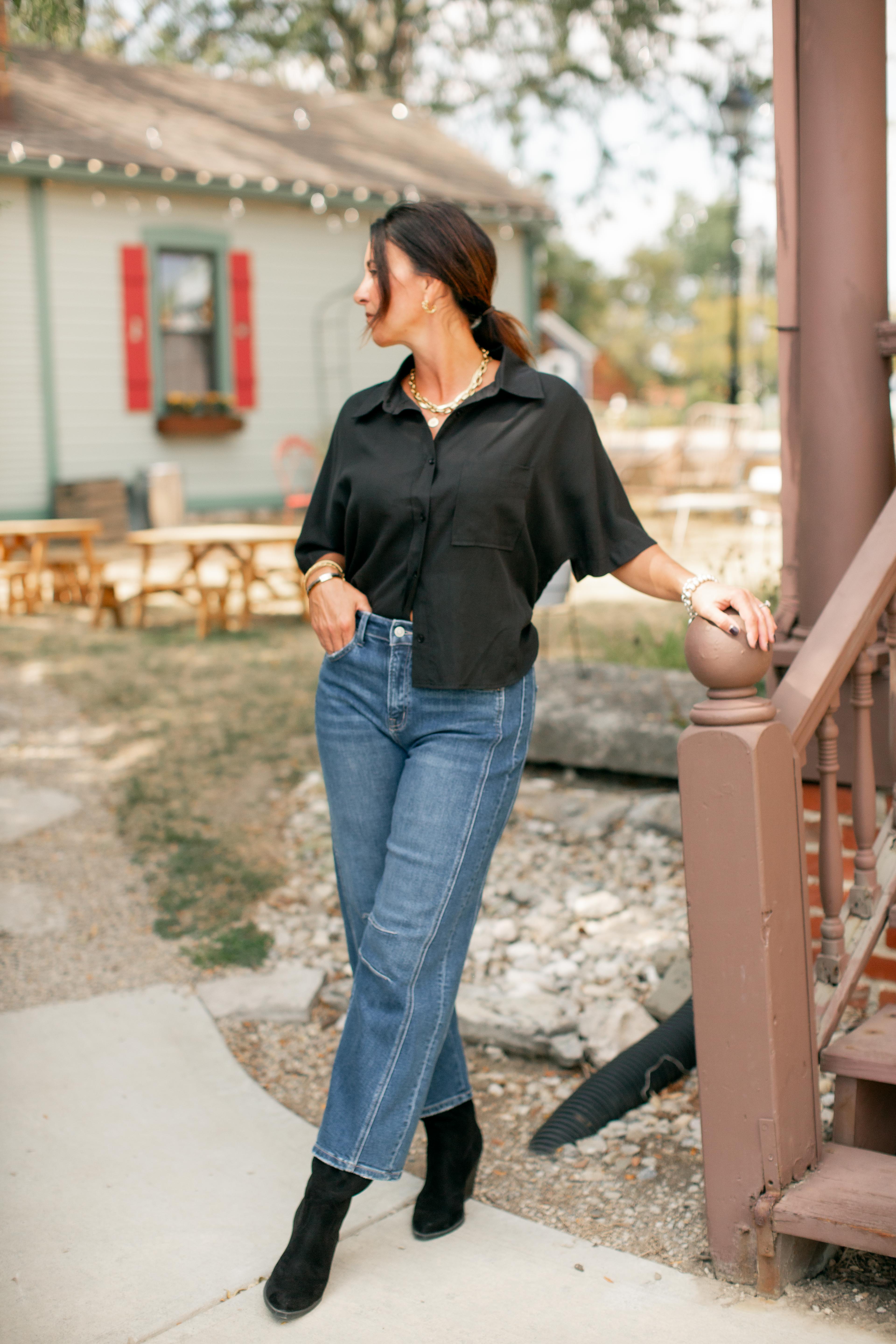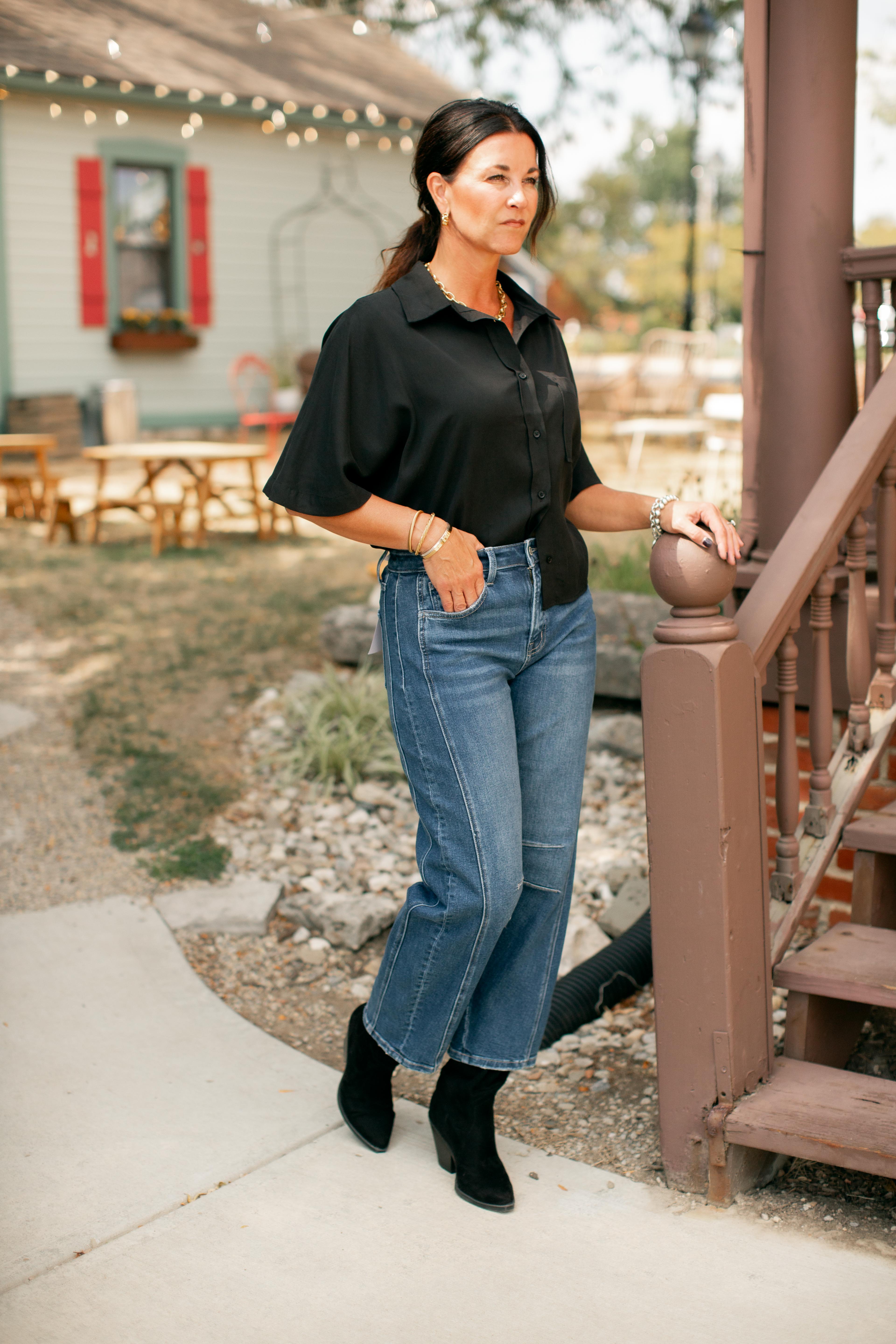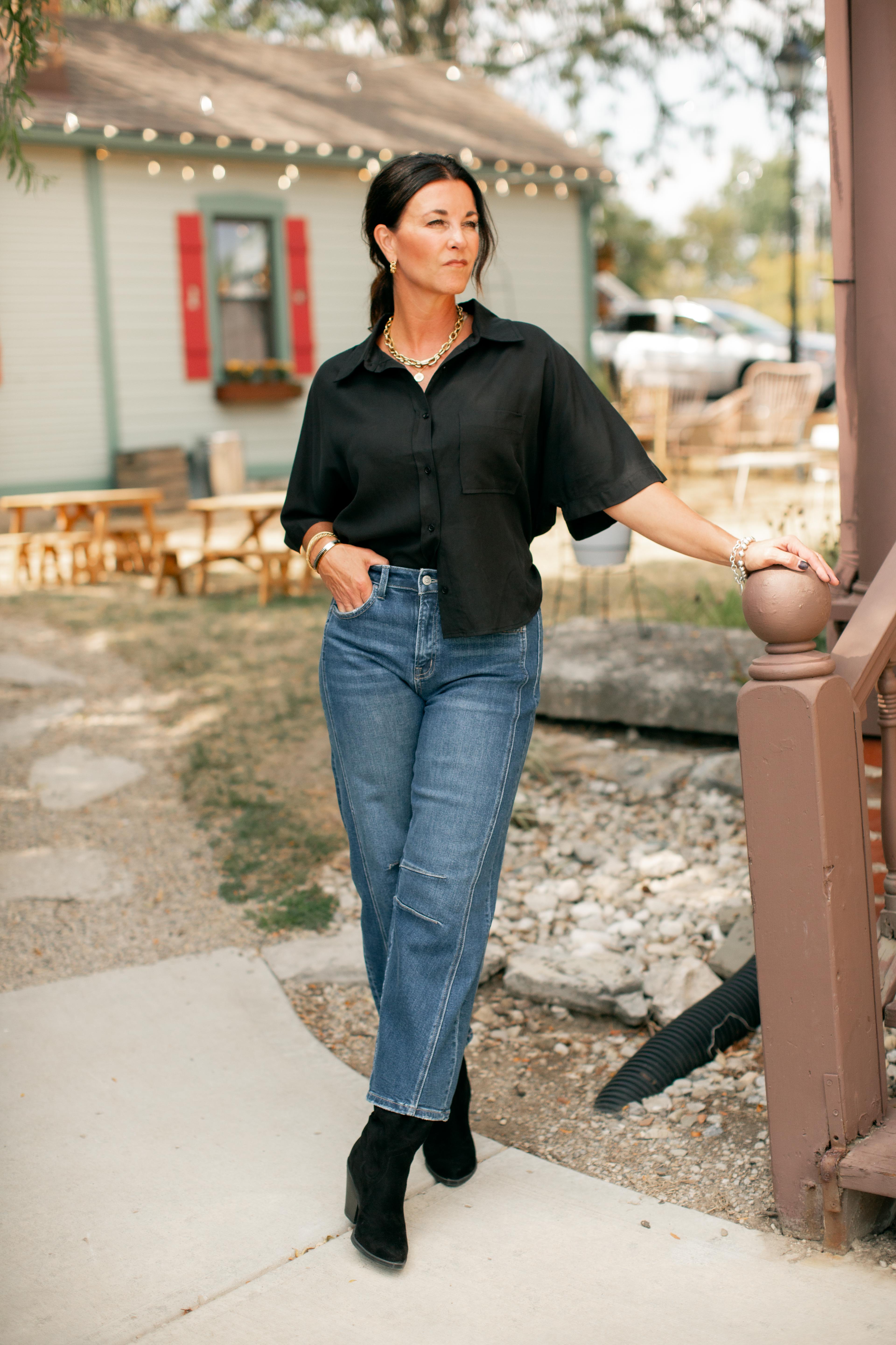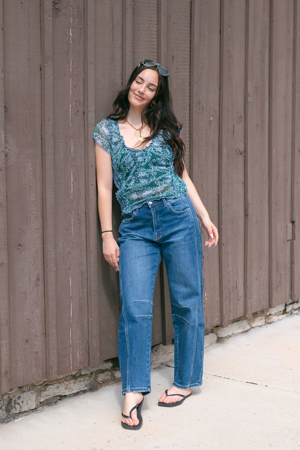 Dark Wash Denim High Rise Barrel Jeans - by Flying Monkey