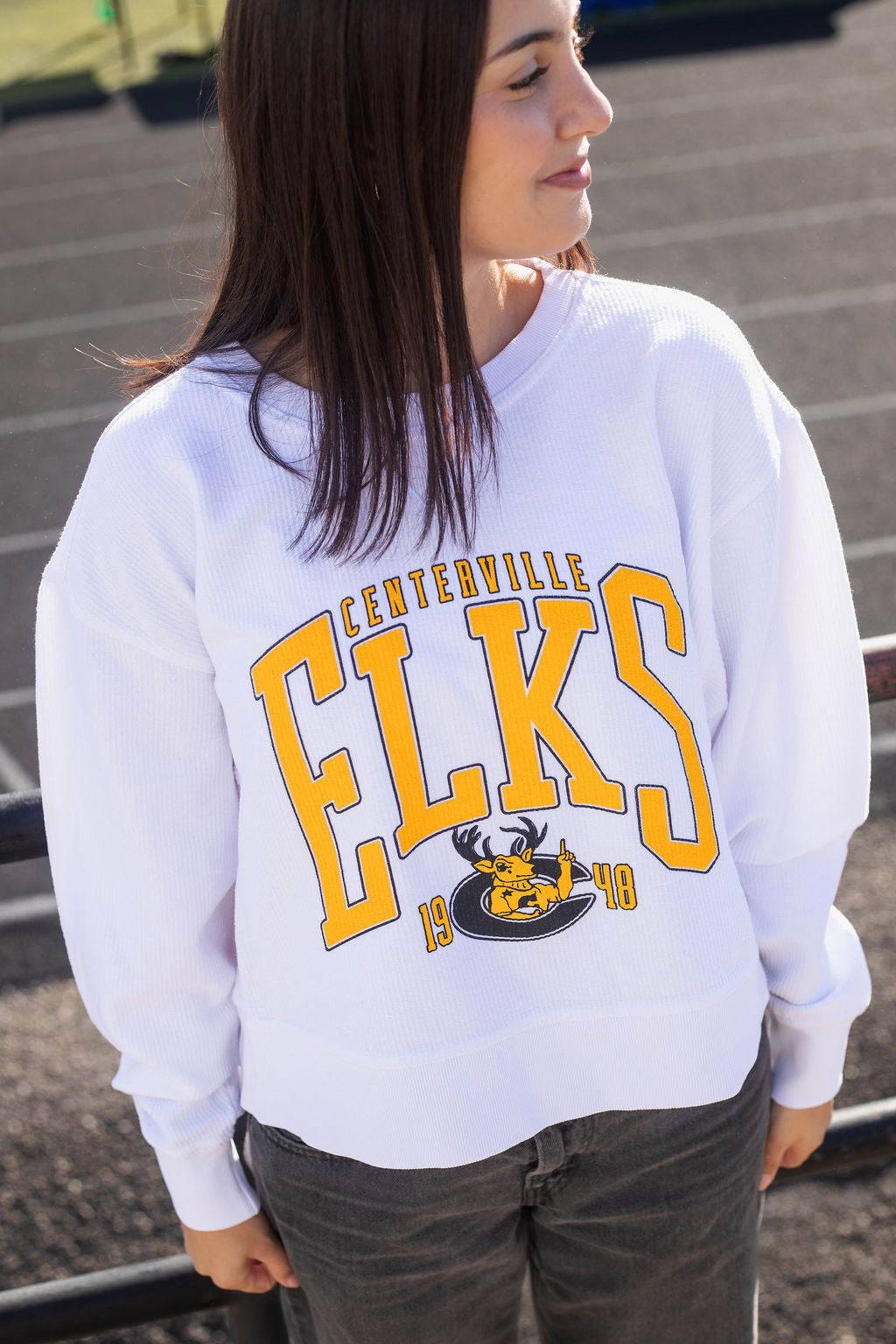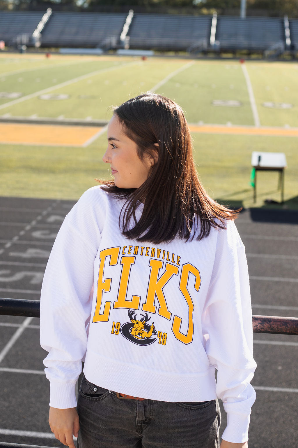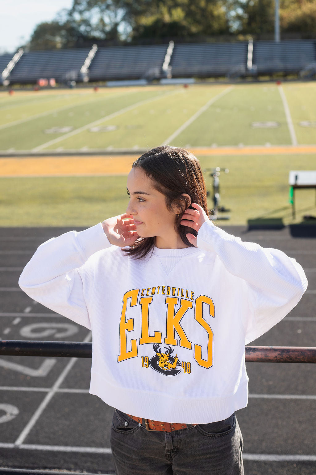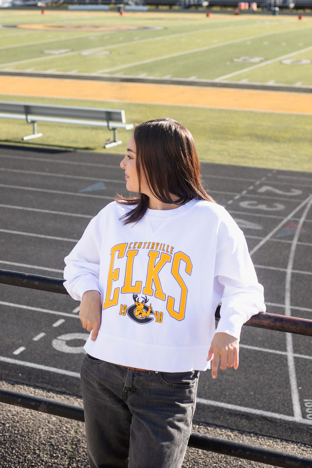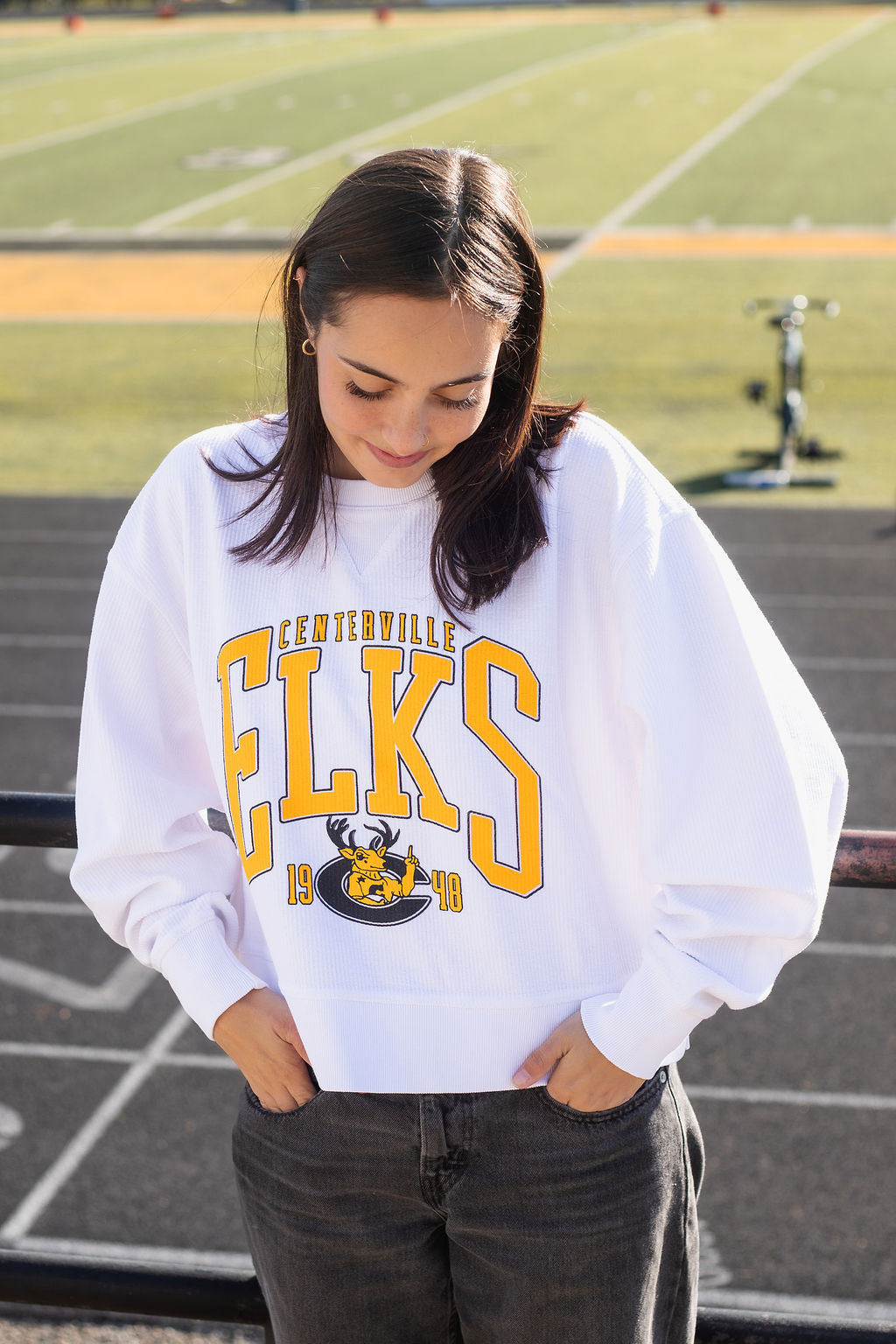Elks Block White Ribbed Crew Sweatshirt - Crop