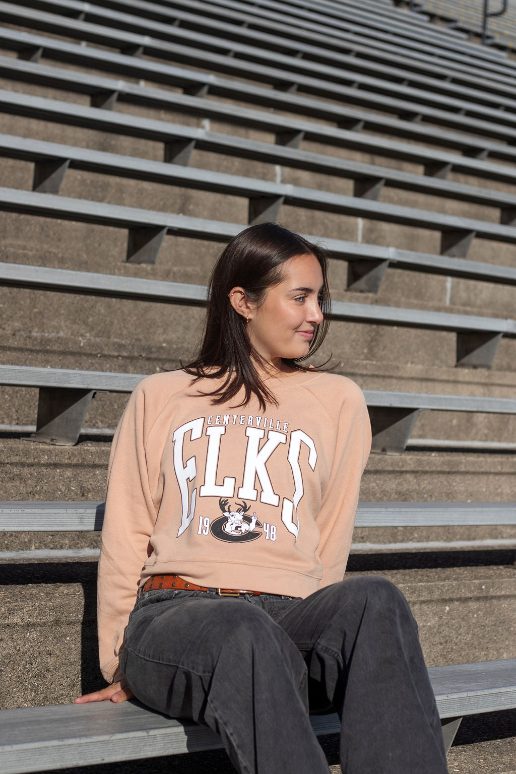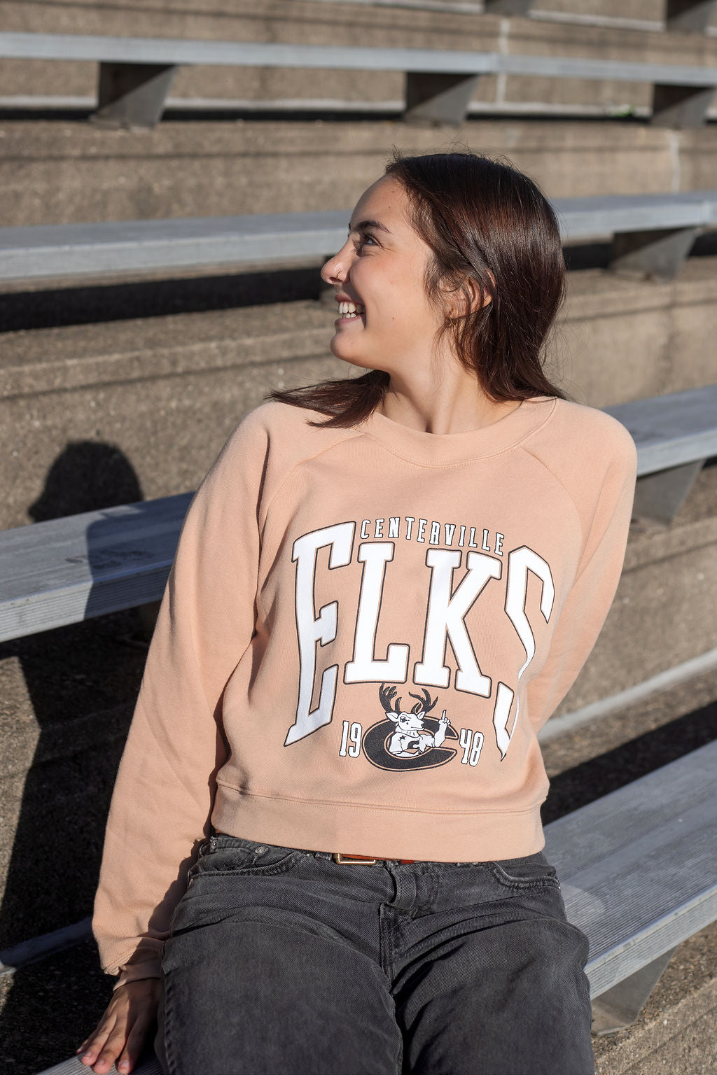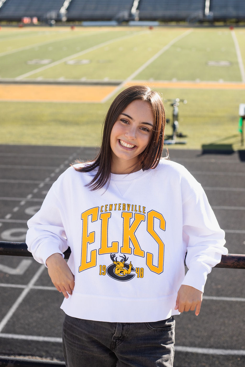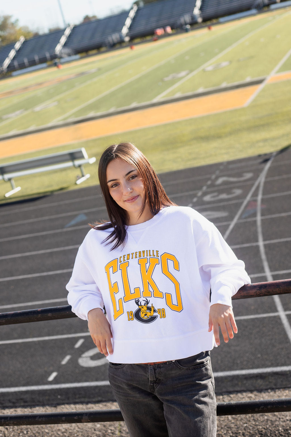 Elks Block White Ribbed Crew Sweatshirt - Crop