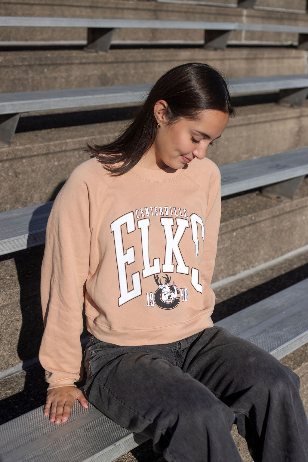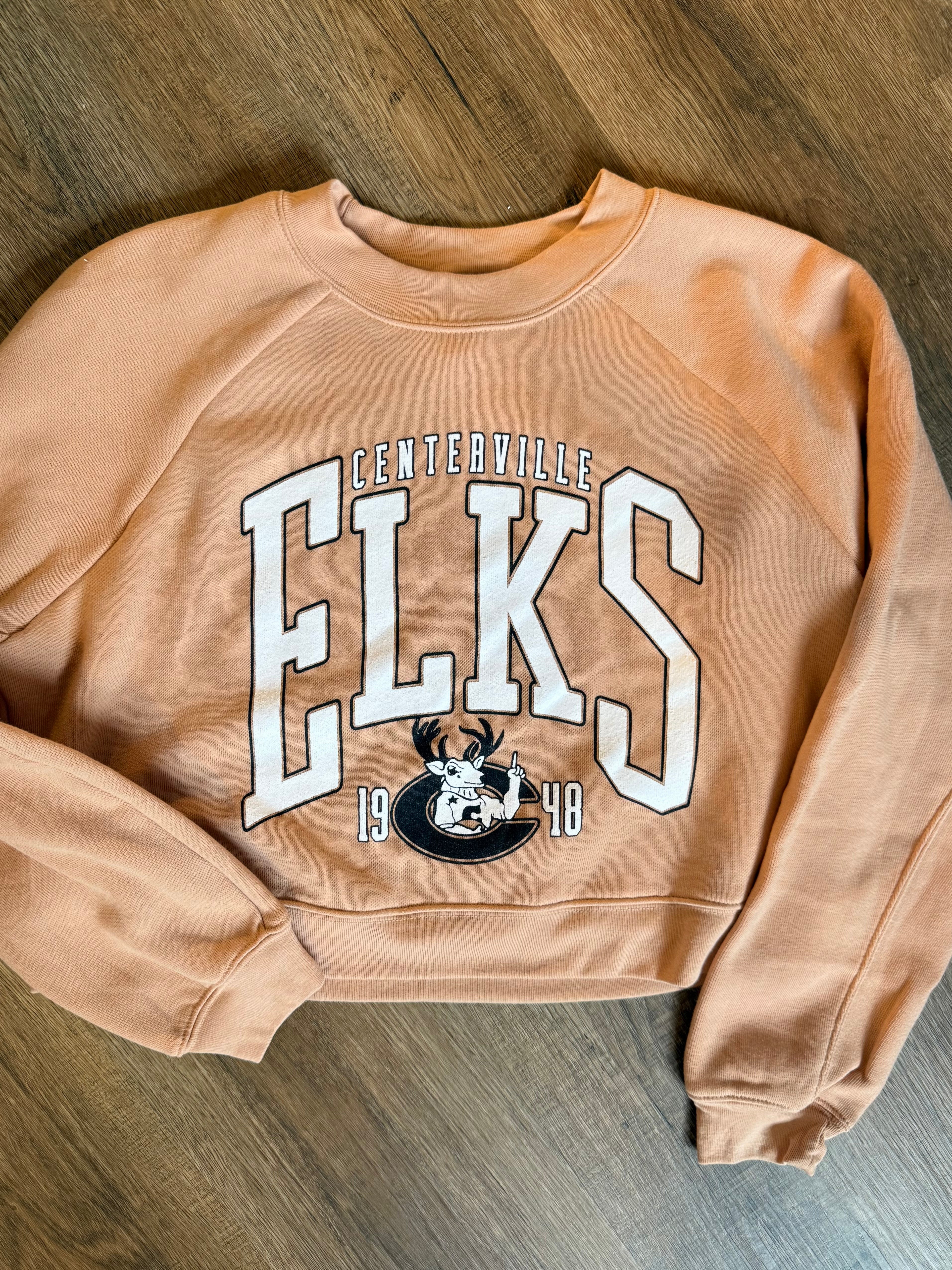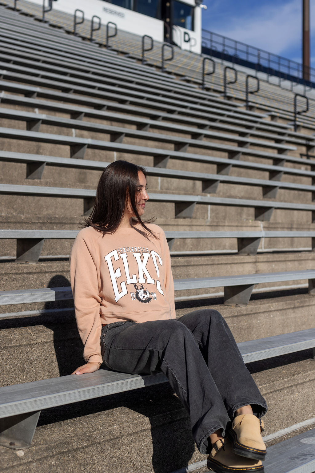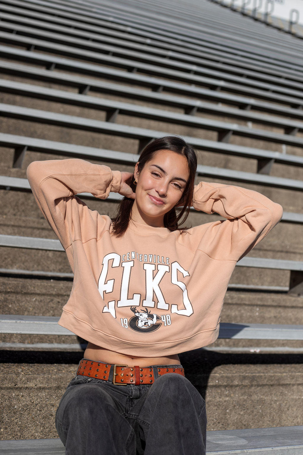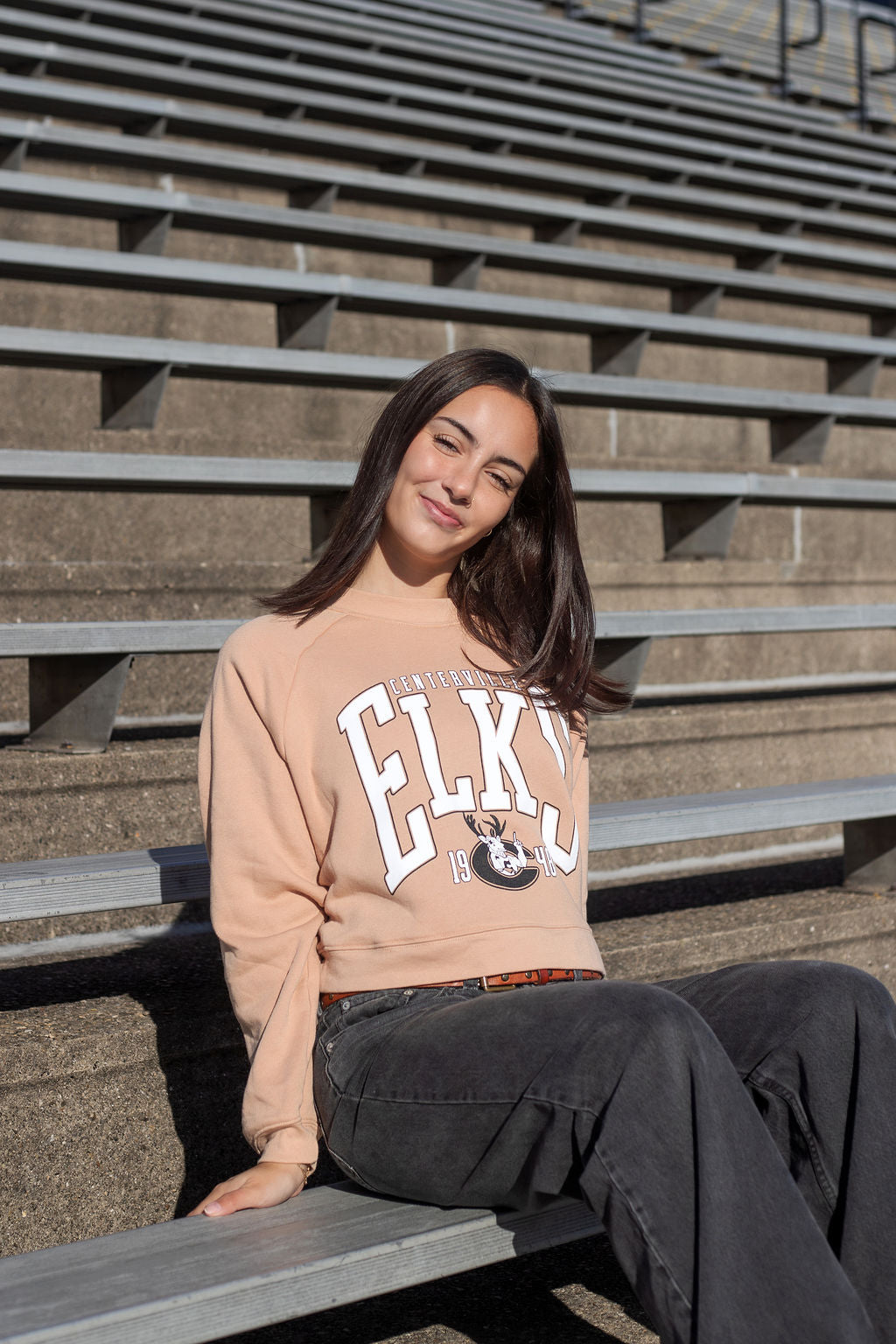 Elks Block White Ribbed Crew Sweatshirt - Crop