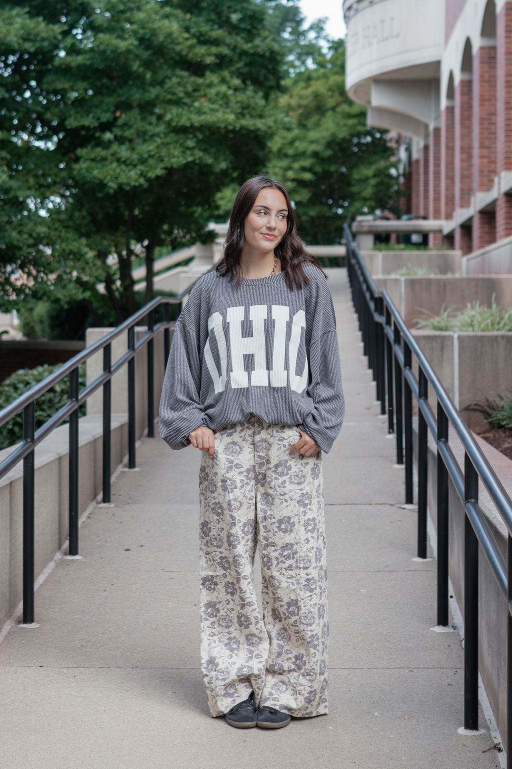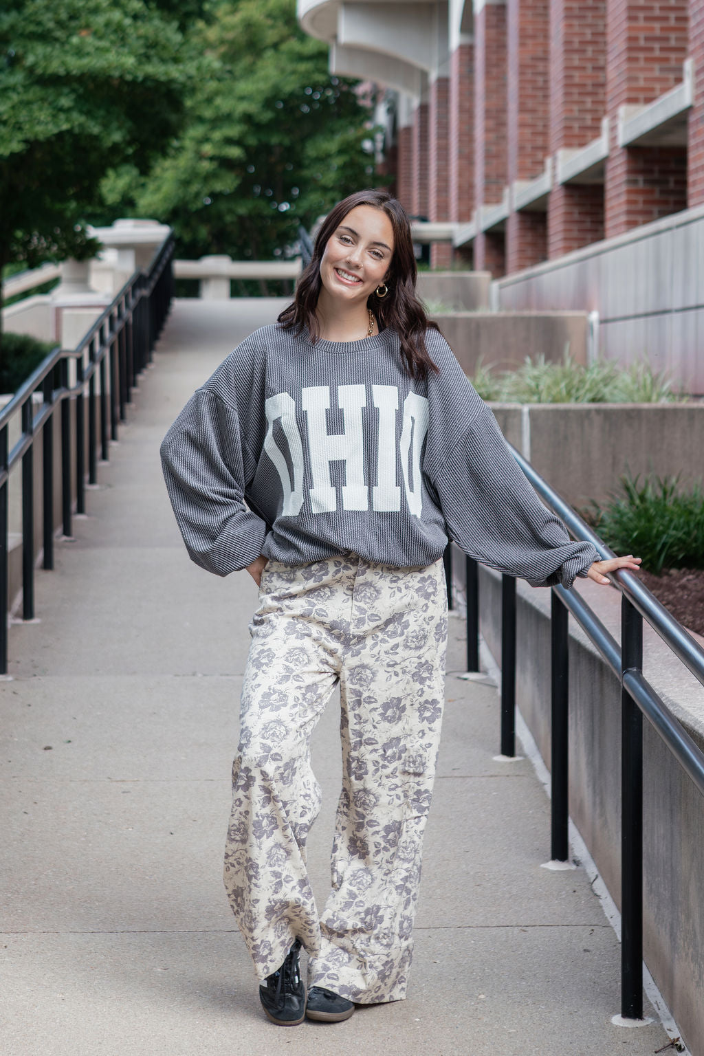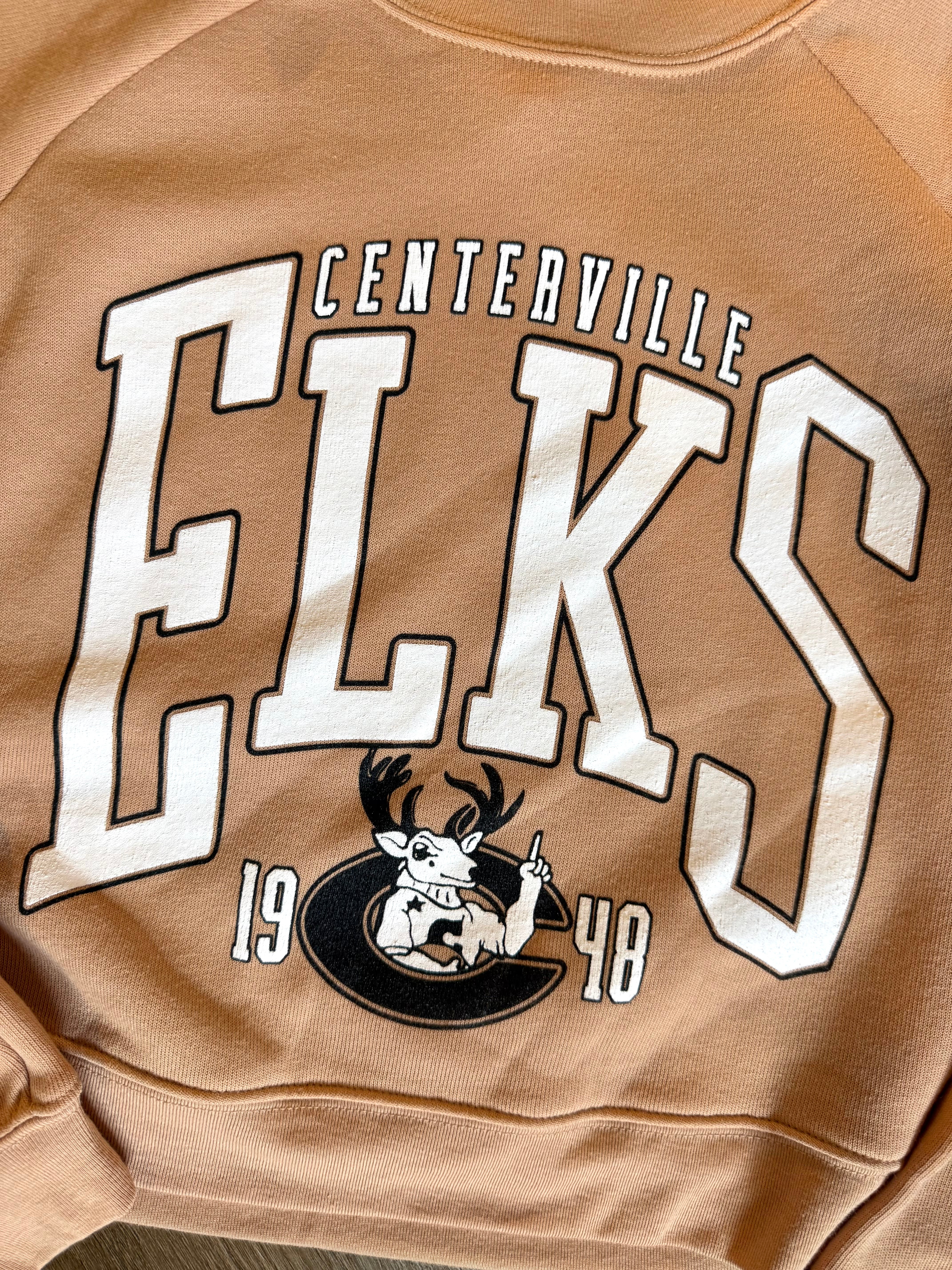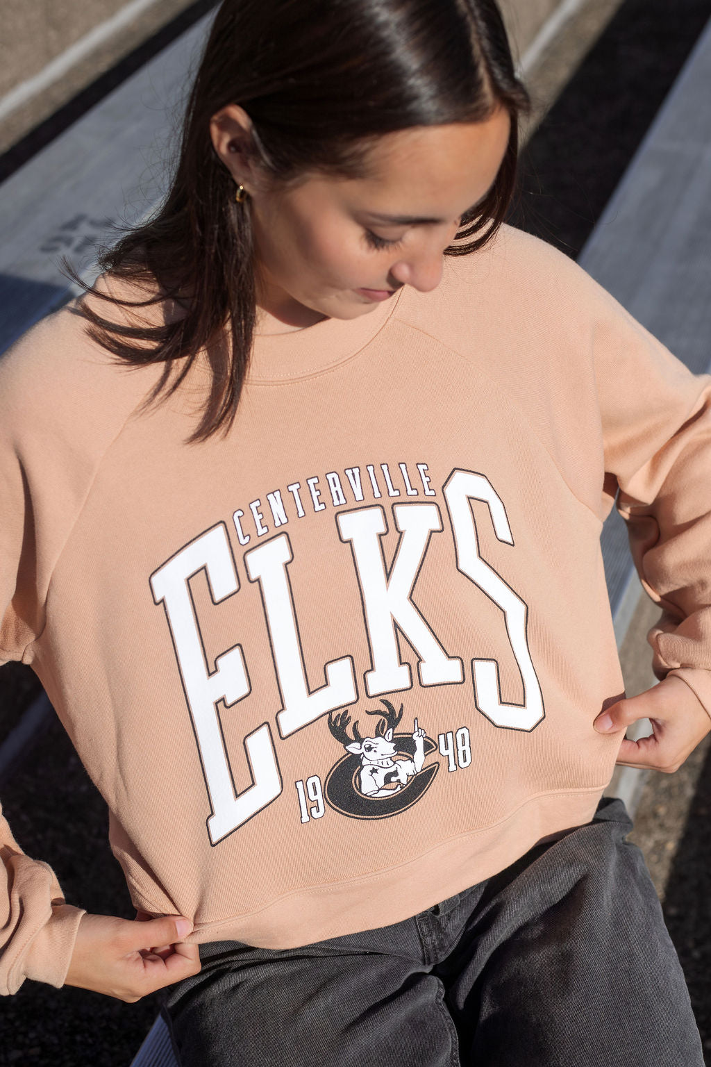 Elks Block White Ribbed Crew Sweatshirt - Crop