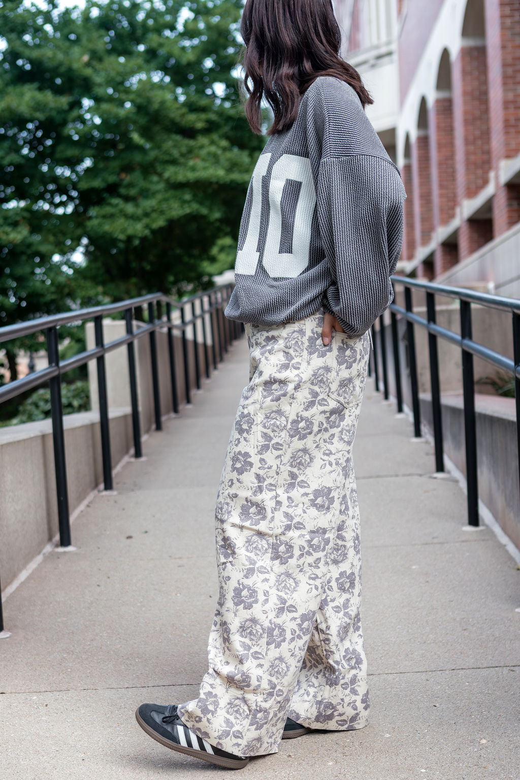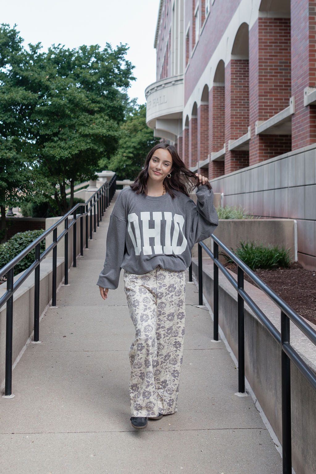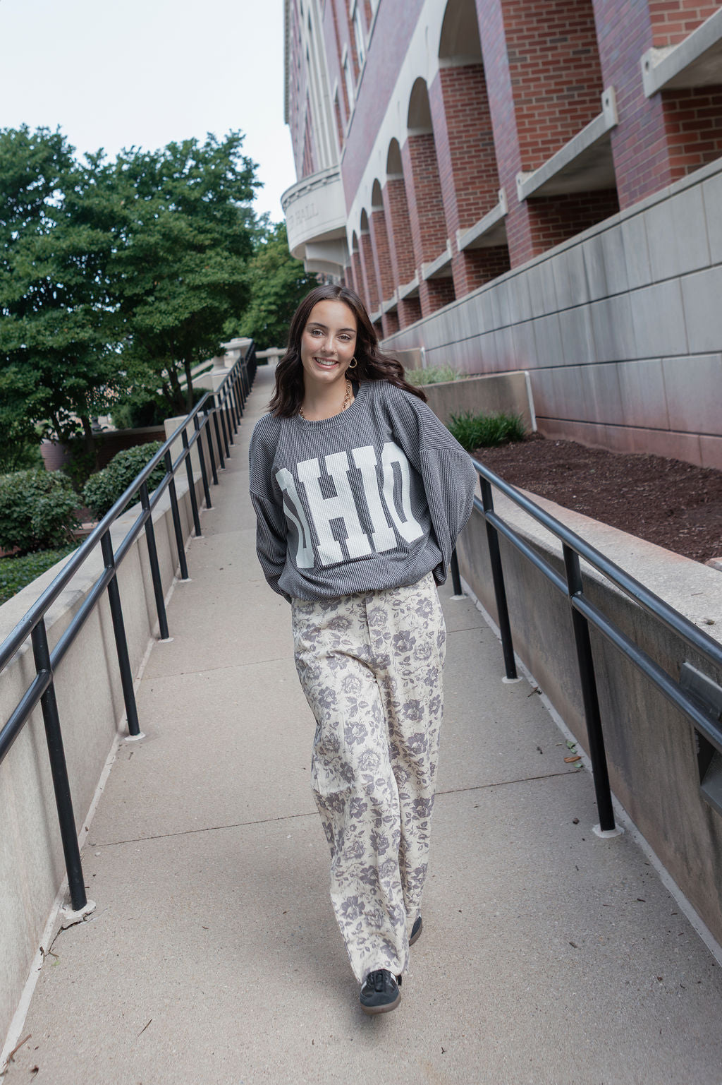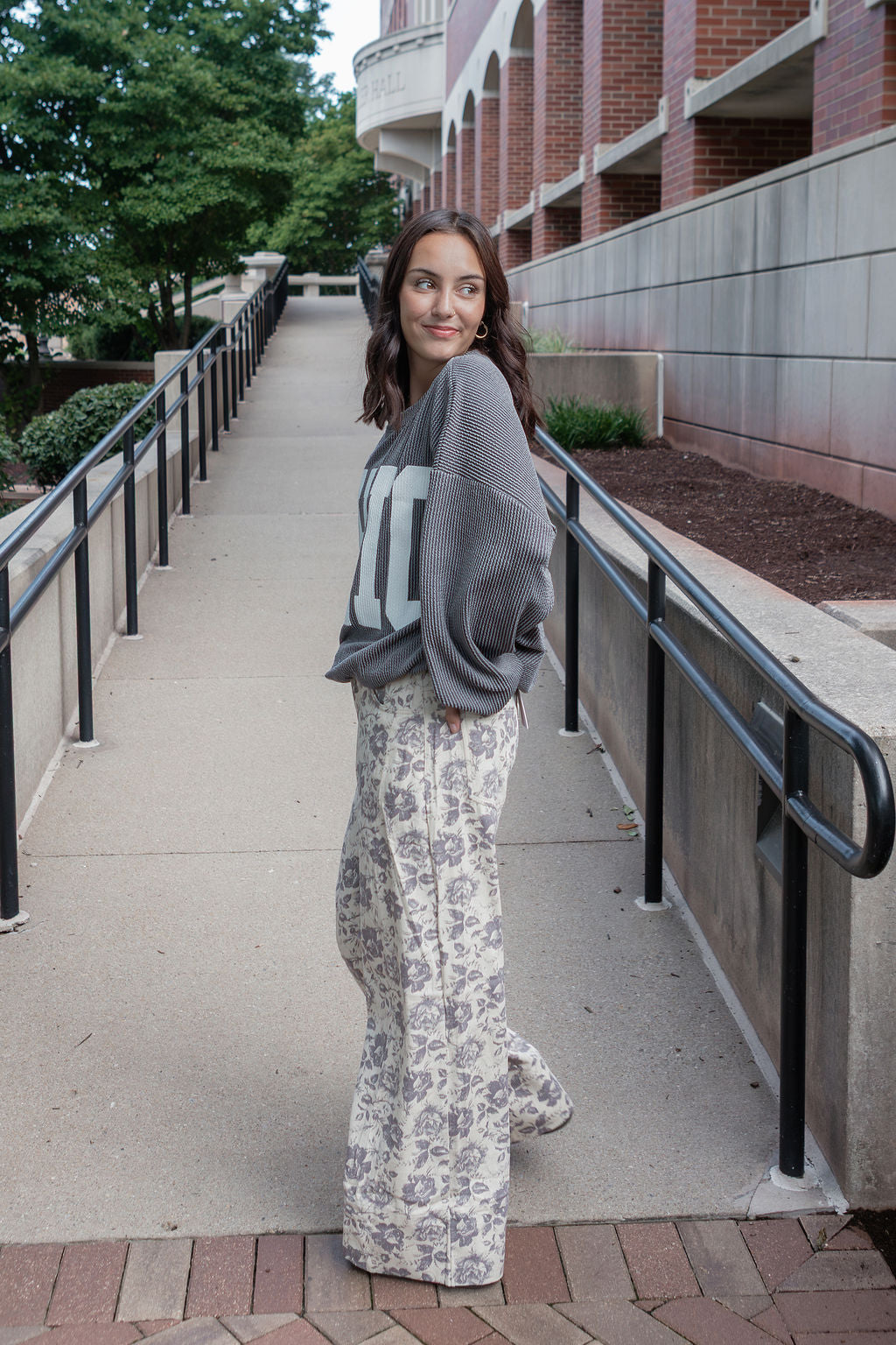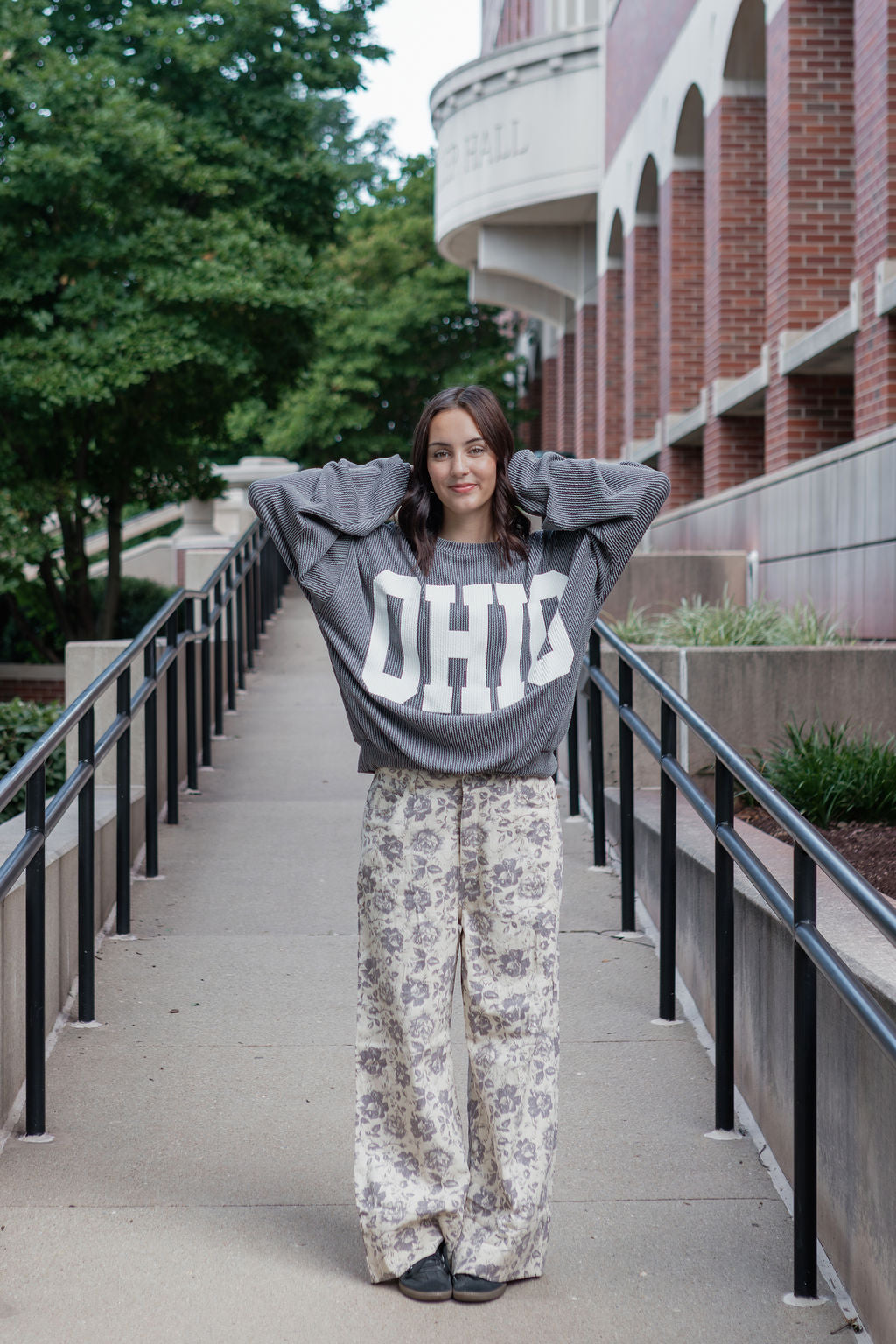 Elks Block White Ribbed Crew Sweatshirt - Crop