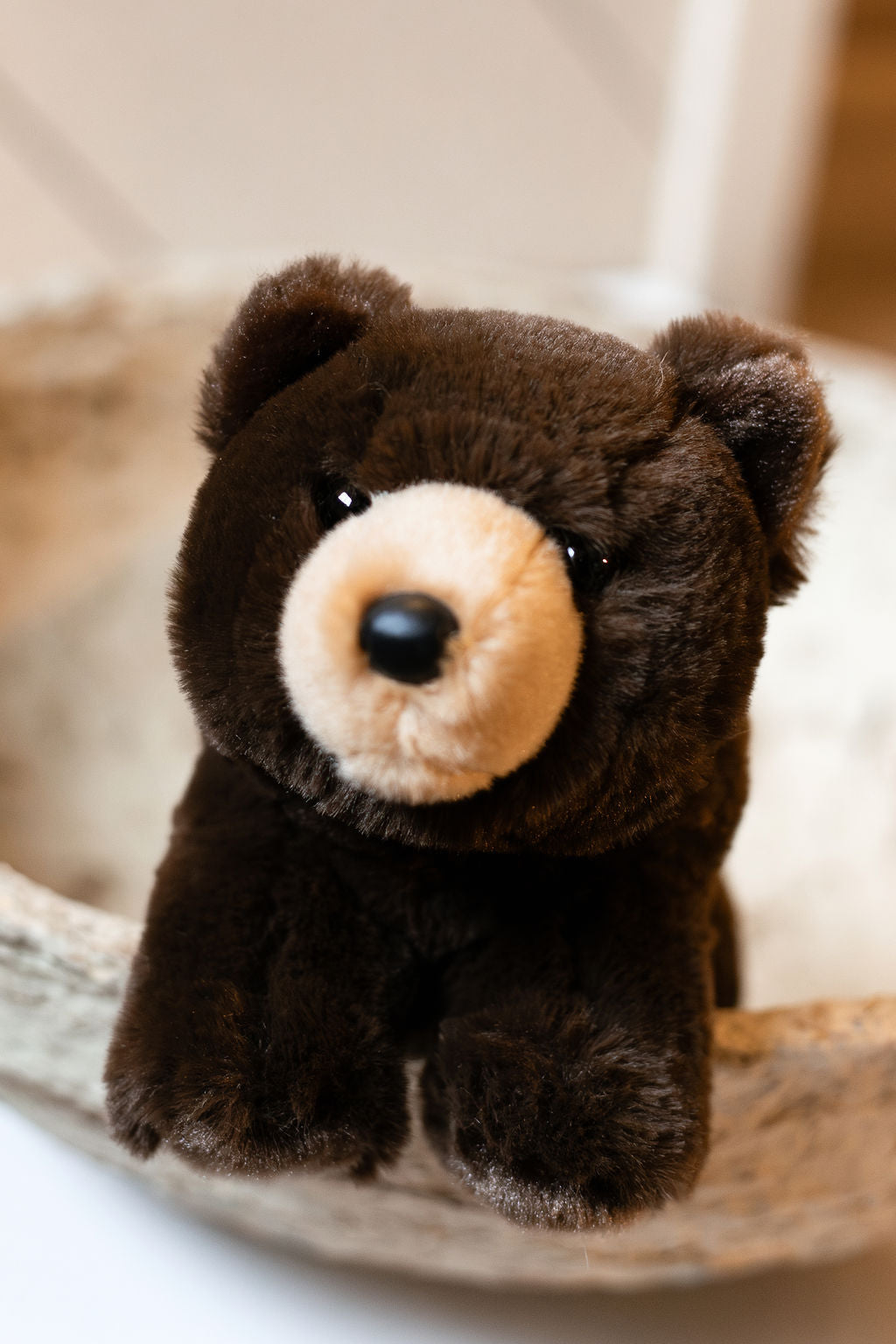 When you think of Grizzly Bears, their giant size and fearsome nature are some of the first things that come to mind, but when it comes to Brownie, our Mini Soft Bear stuffed animal, nothing could be further from the truth! This diminutive Brown Bear cub is sized to fit within your hand or pocket and has a happy-go-lucky personality that has won him the affection of his fans. Chocolate brown plush fur accented with a tan colored snout lends realism to our little Bear, while expressive, dark eyes bring him to life. All charm and cuddliness, Brownie is a lighthearted companion for animal lovers who love bear hugs but want something more than just your typical teddy bear. Grizzly Bears don’t get much cuter than Brownie, make this curious little plush cub yours today!