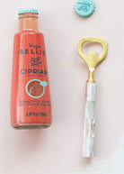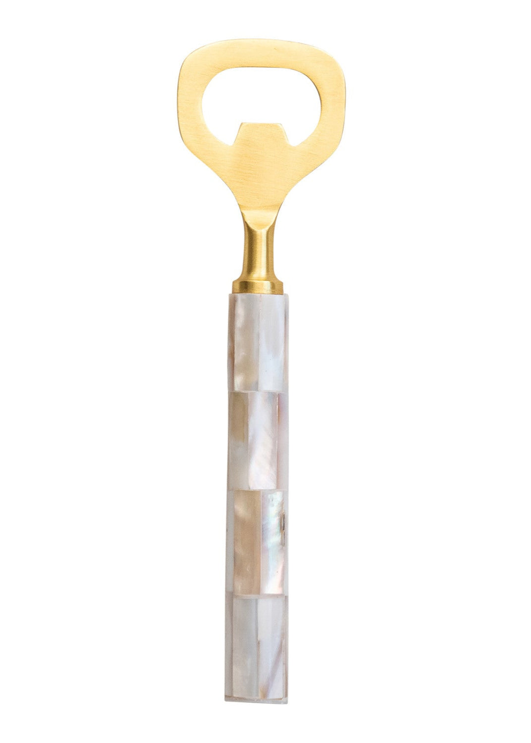 This stainless steel & mango wood bottle opener with mother of pearl inlaid handle in a gold finish is both functional and decorative. Elevate any gathering with our exquisite collection of entertaining tools, including napkin rings, bottle openers, and more, designed to inspire all celebrations.