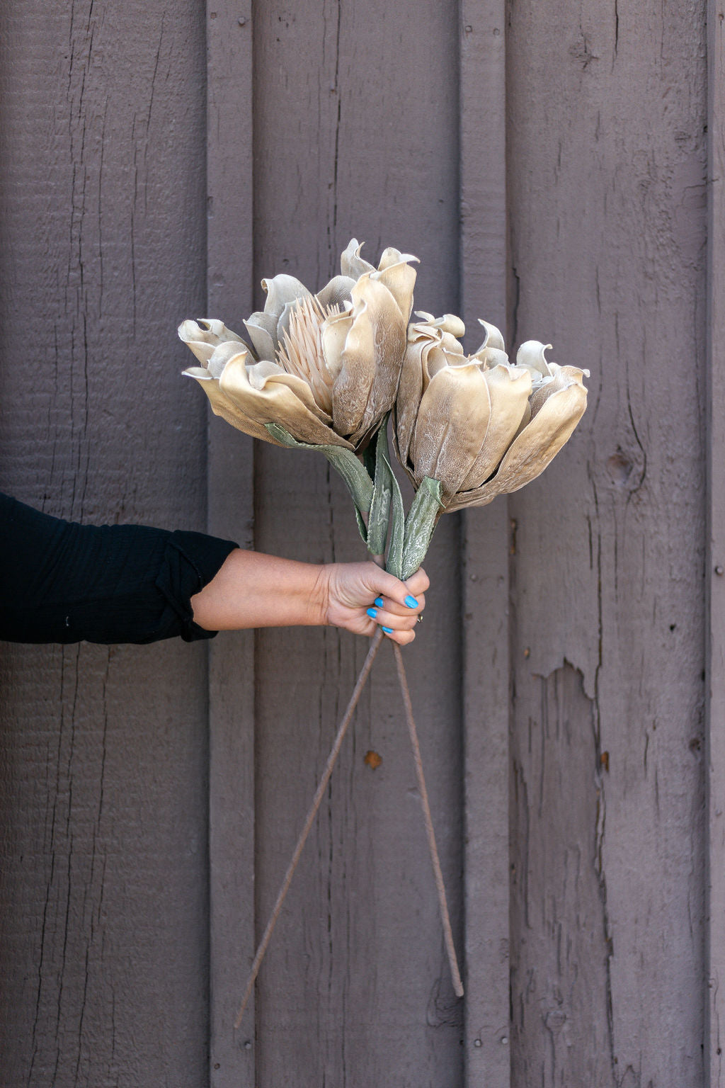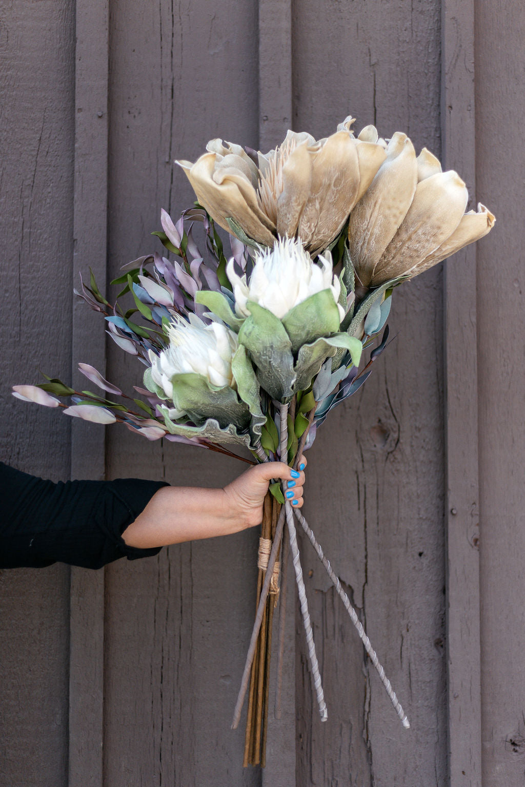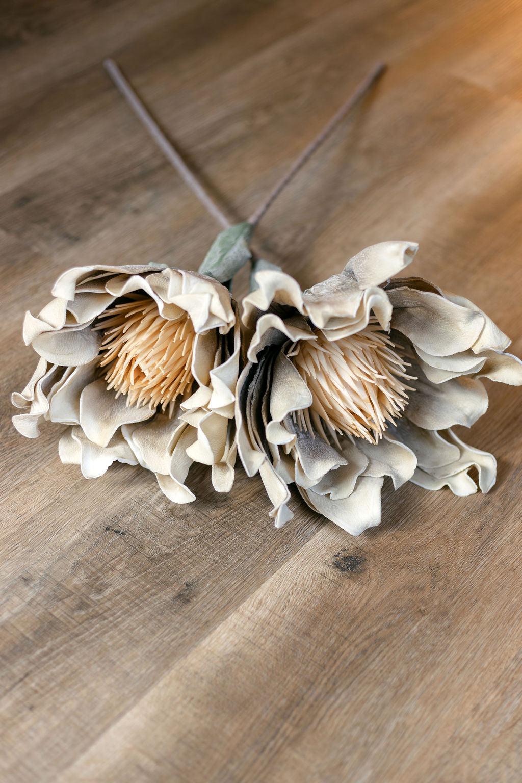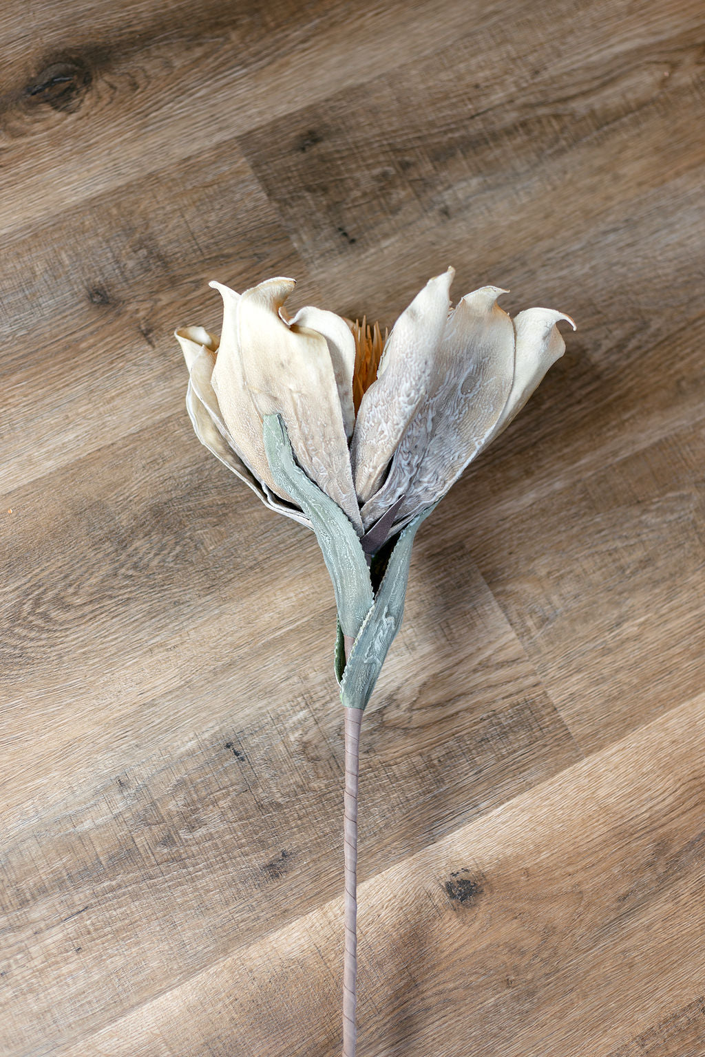Absolutely beautiful protea that it a definite centerpiece of any decor arrangement, Muted tones make it bright, airy, and able to incorporate into any color scheme.