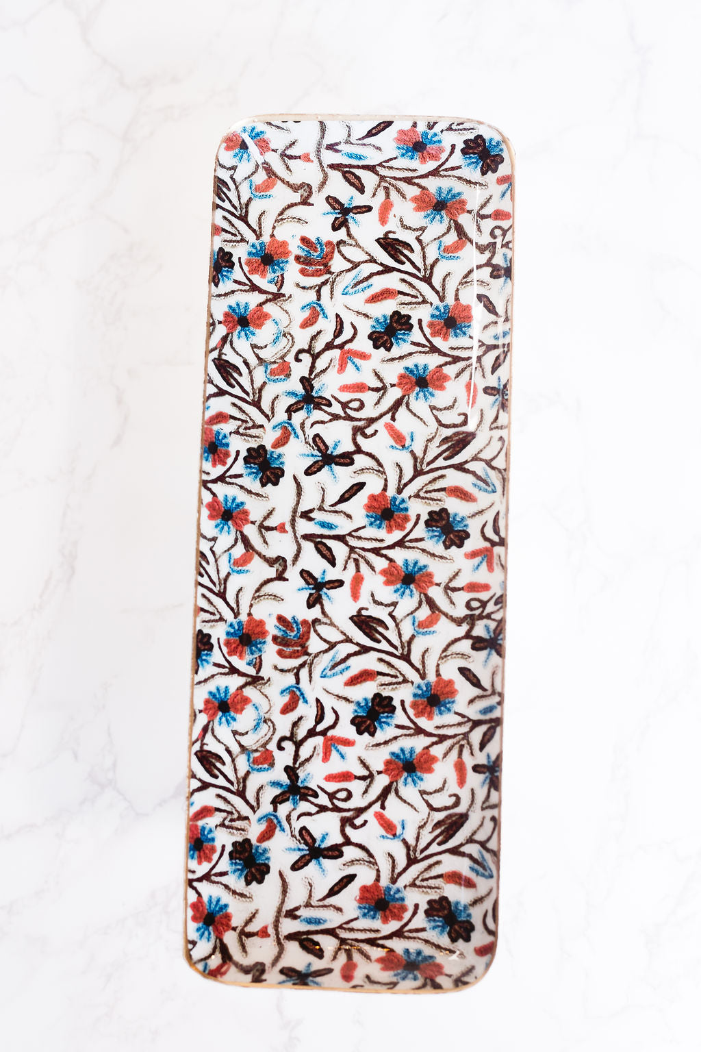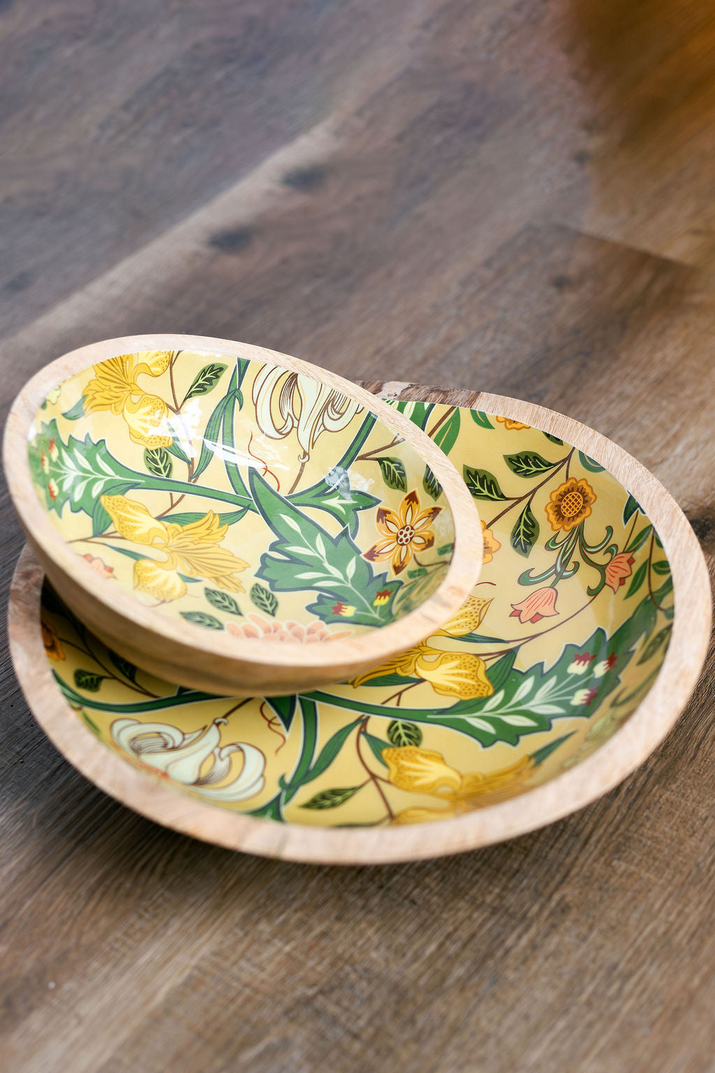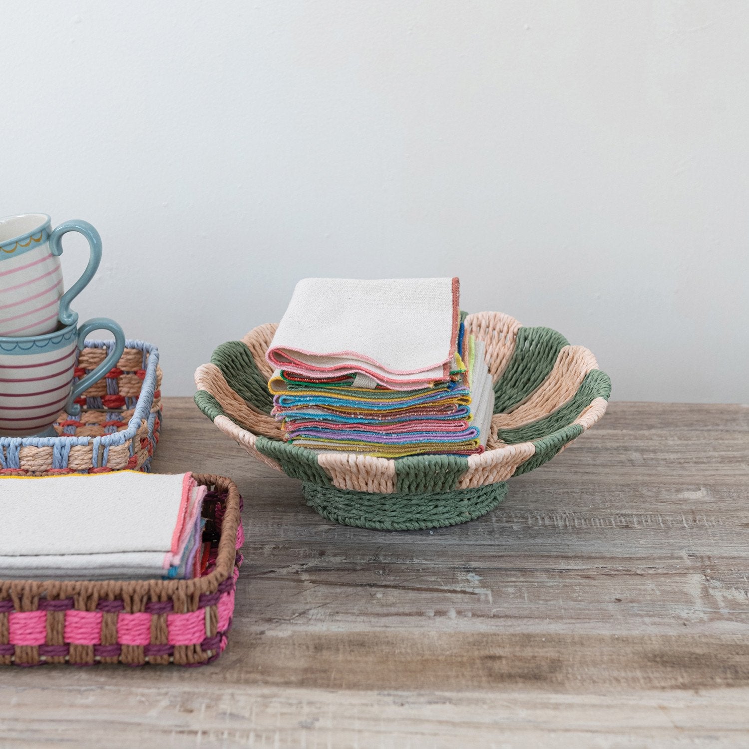 Green Striped Woven Paper Rope Scalloped Footed Bowl