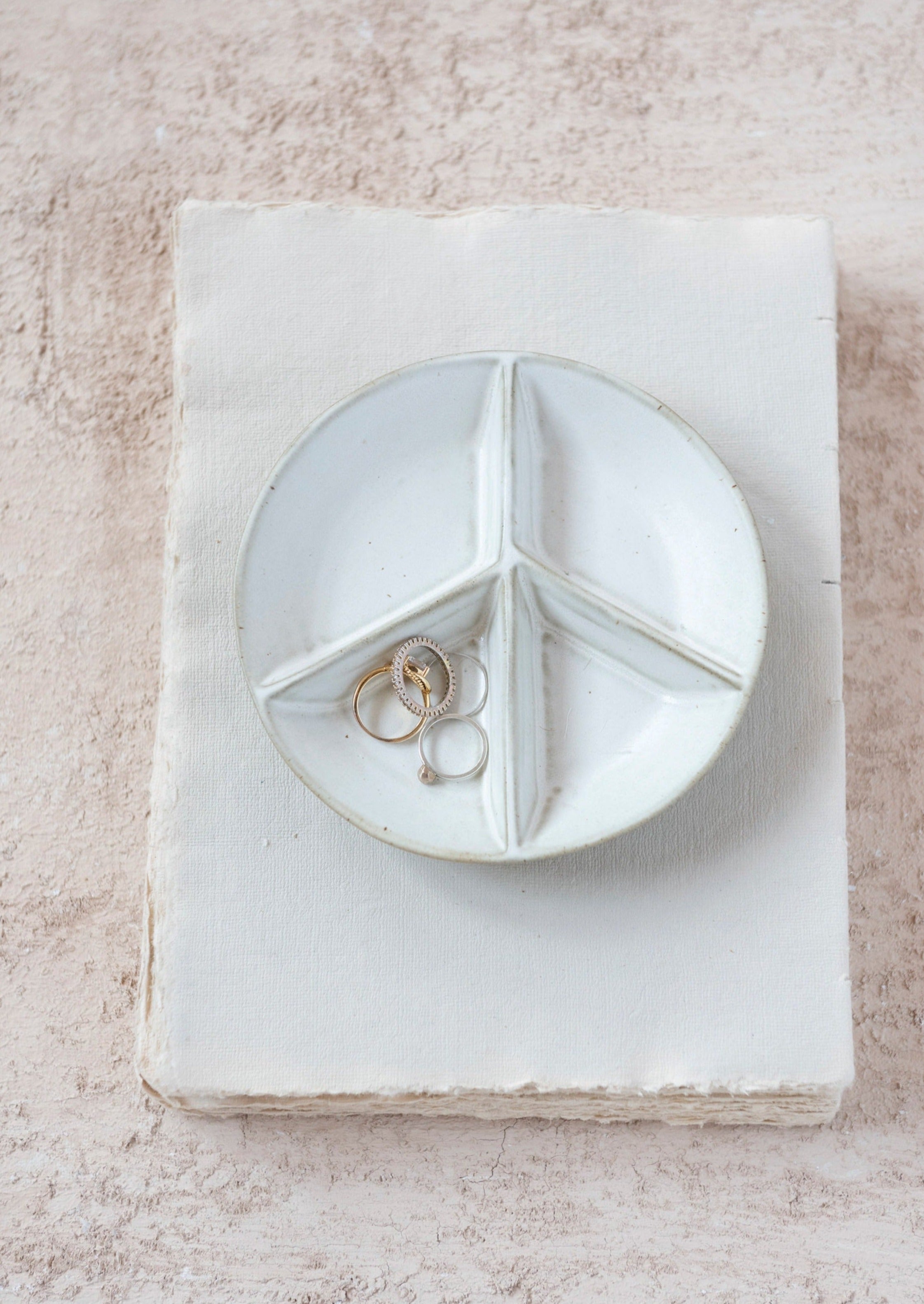 Get in touch with your inner flower child with our Stoneware Peace Sign Divided Dish! Perfect for serving up peace and love (and snacks), this dish has 4 separate sections for all your favorite treats. Hippies and non-hippies alike will appreciate the groovy vibes this dish brings to any gathering. Groove on, man!