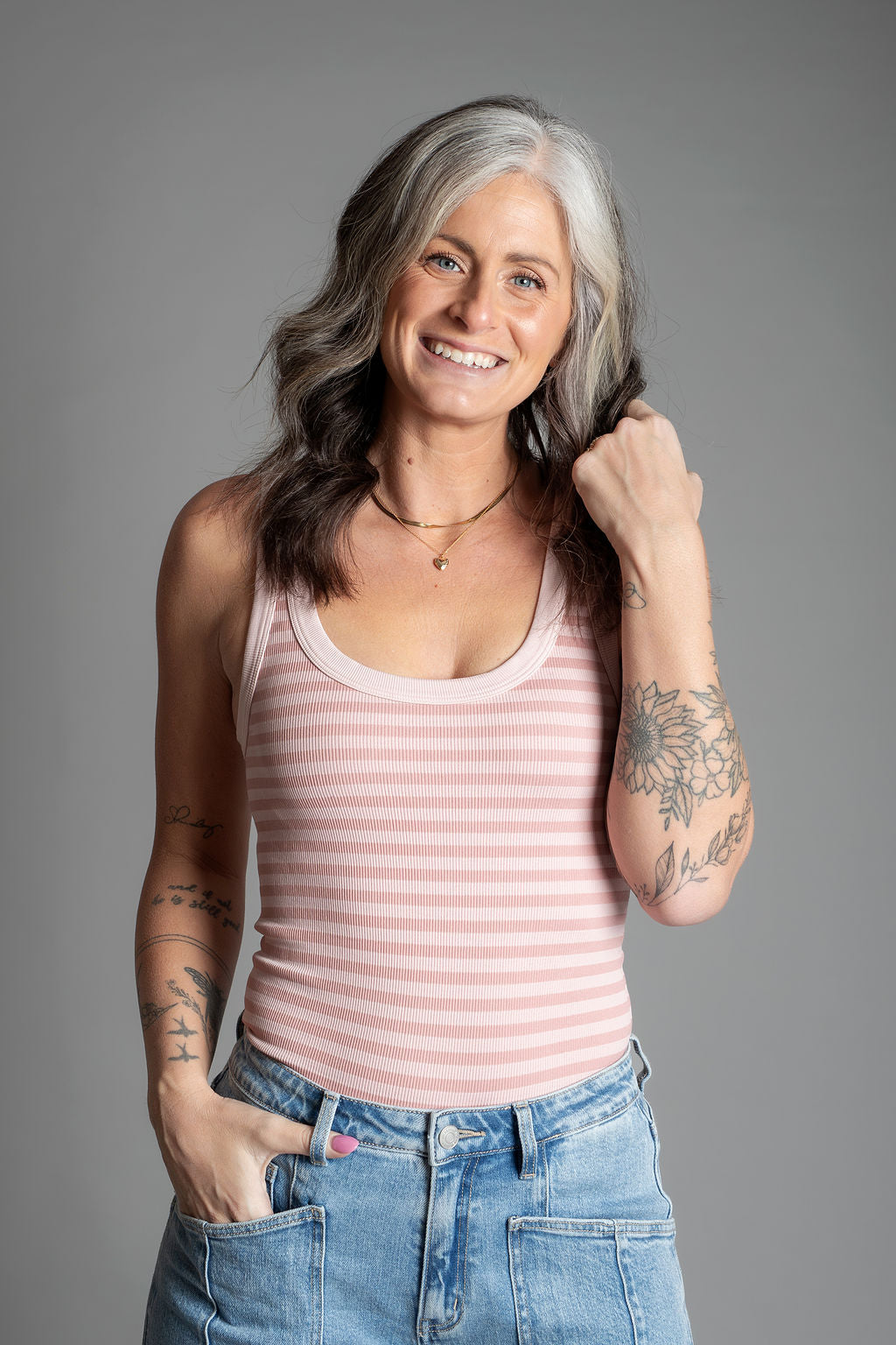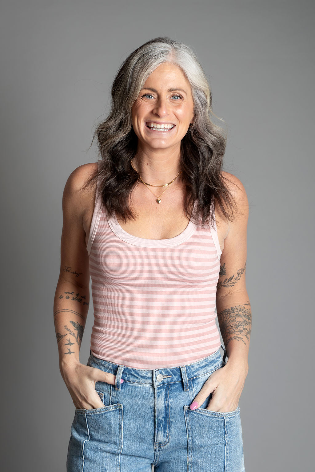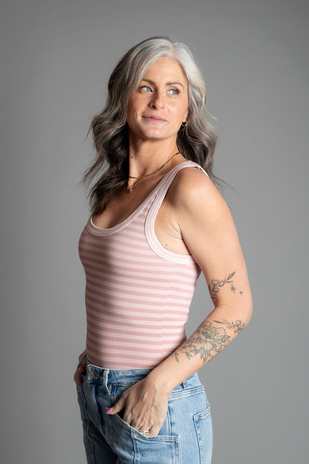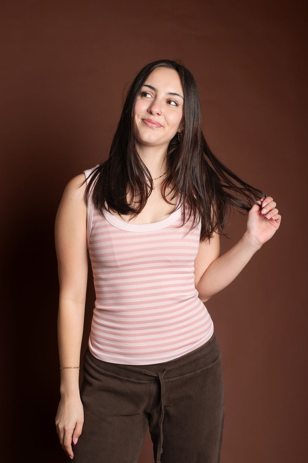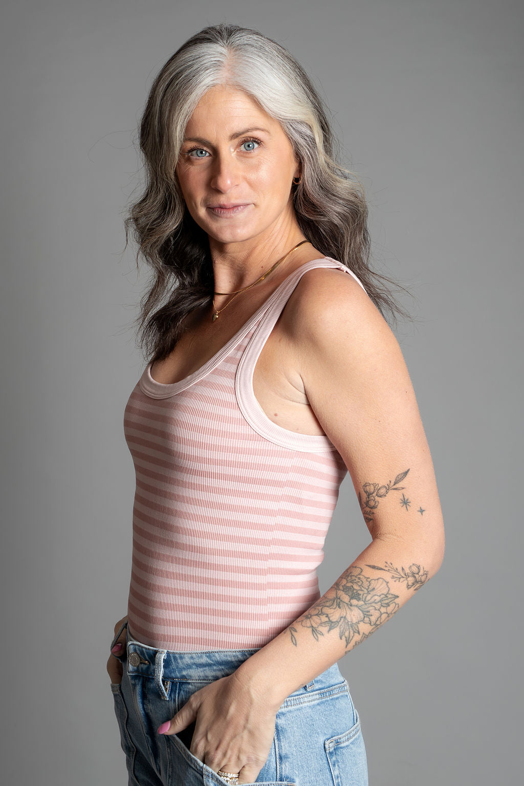 Nola - Reversible Striped Tank Top - Pearl Blush