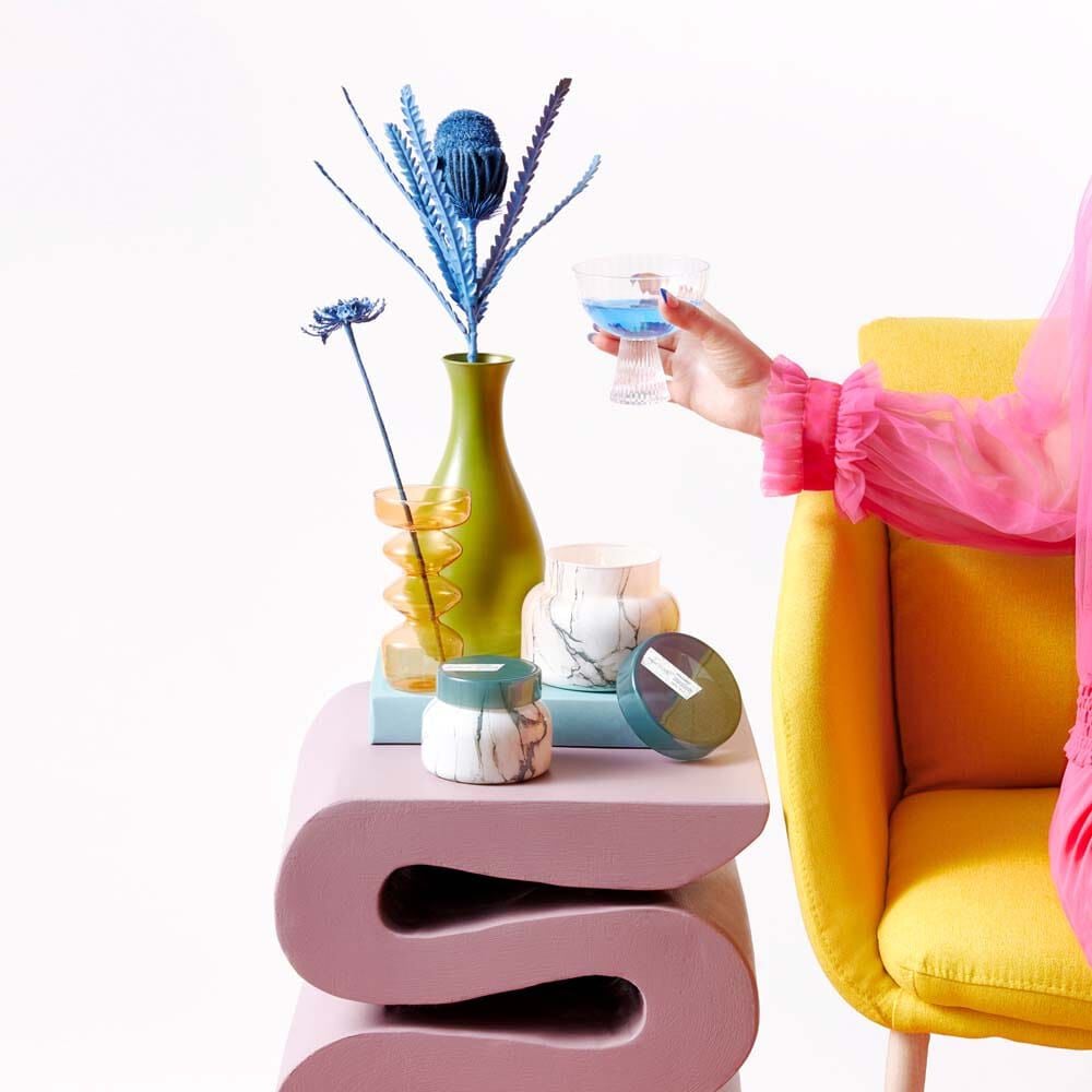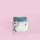 Say hello to your home's new focal point! This Modern Marble petite jar features an eye-catching design paired with our iconic sugared-citrus Volcano fragrance. Finished with a pop of pacific blue, this candle will complement any room.