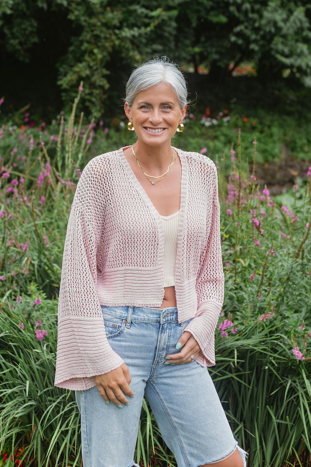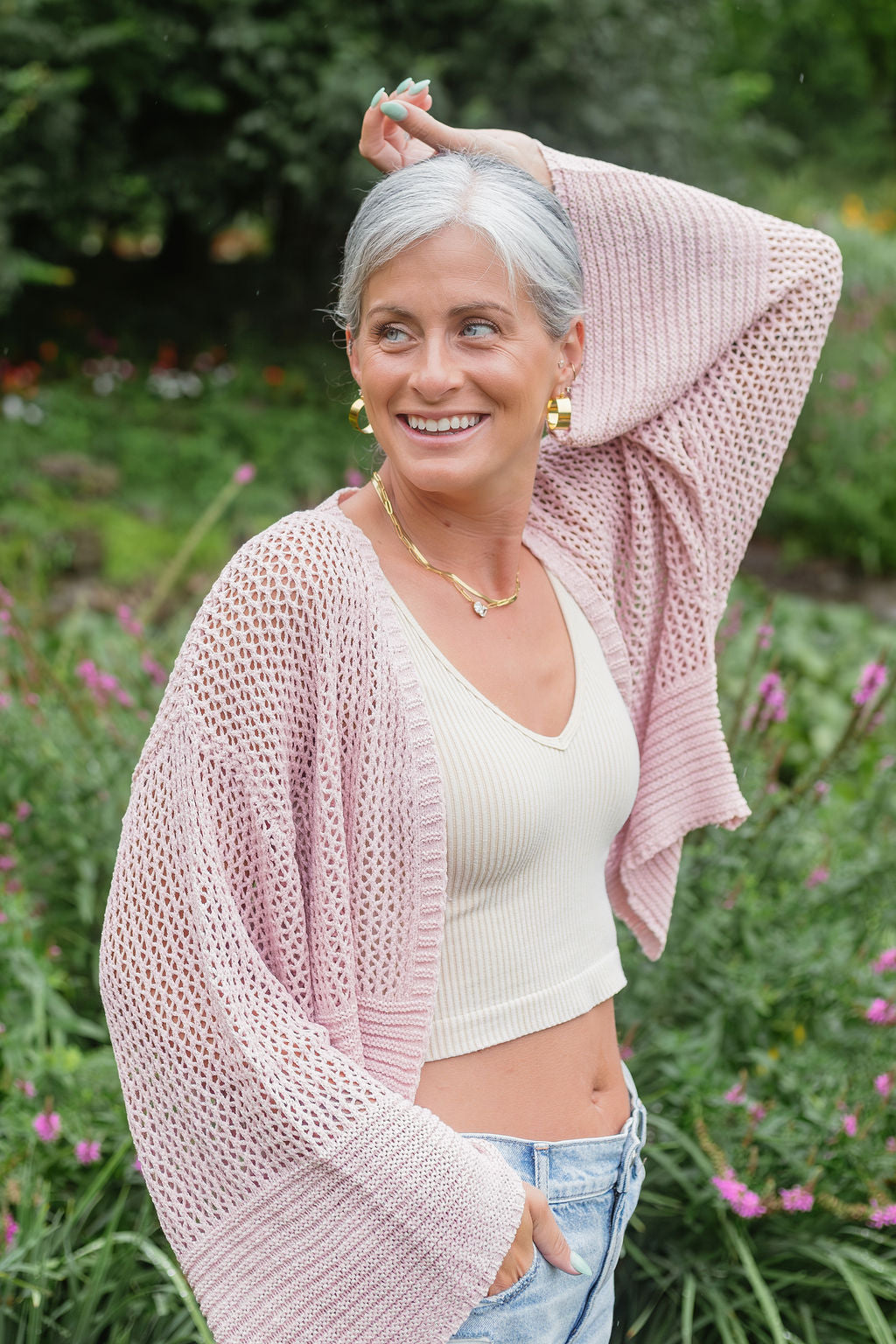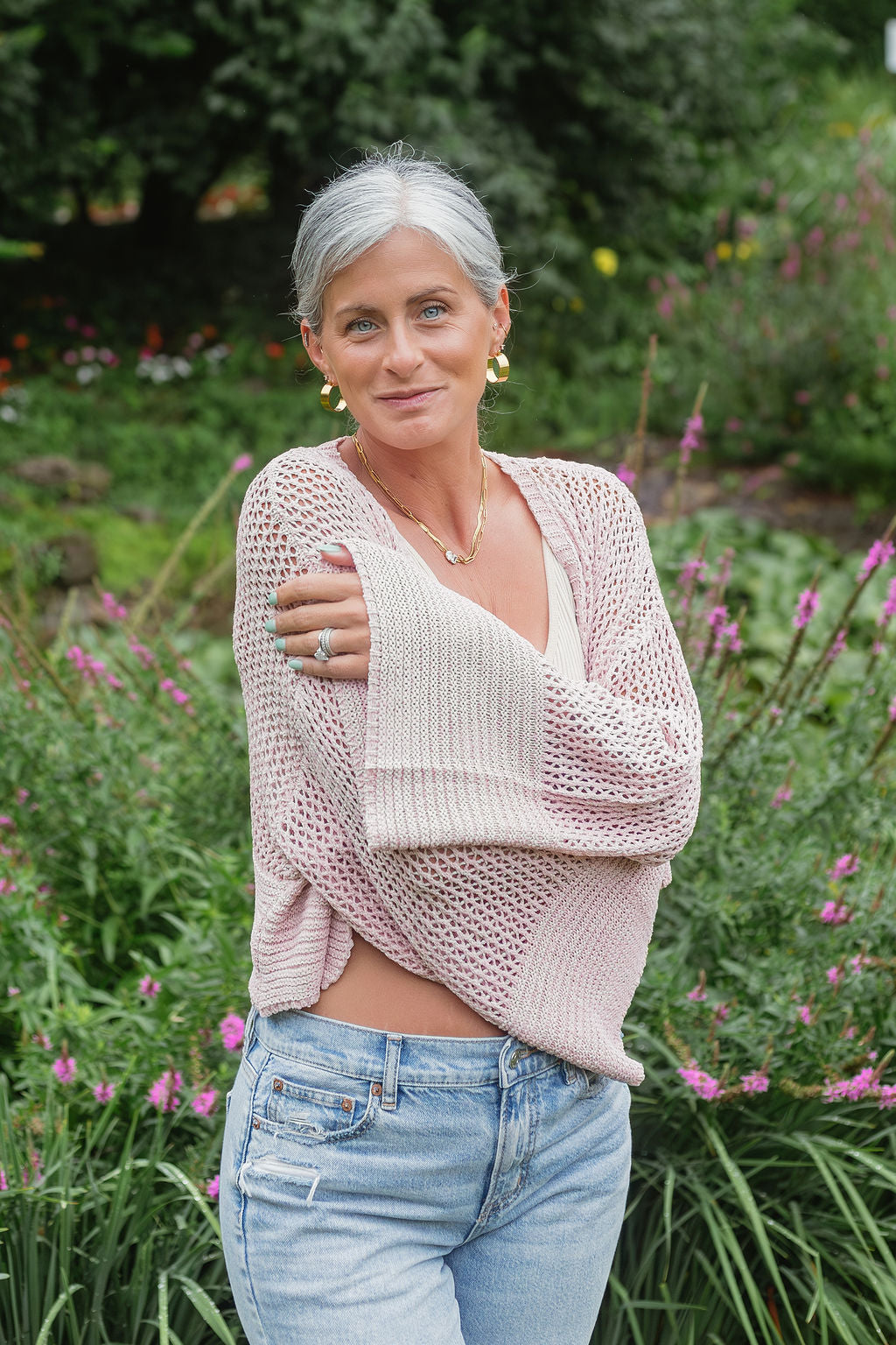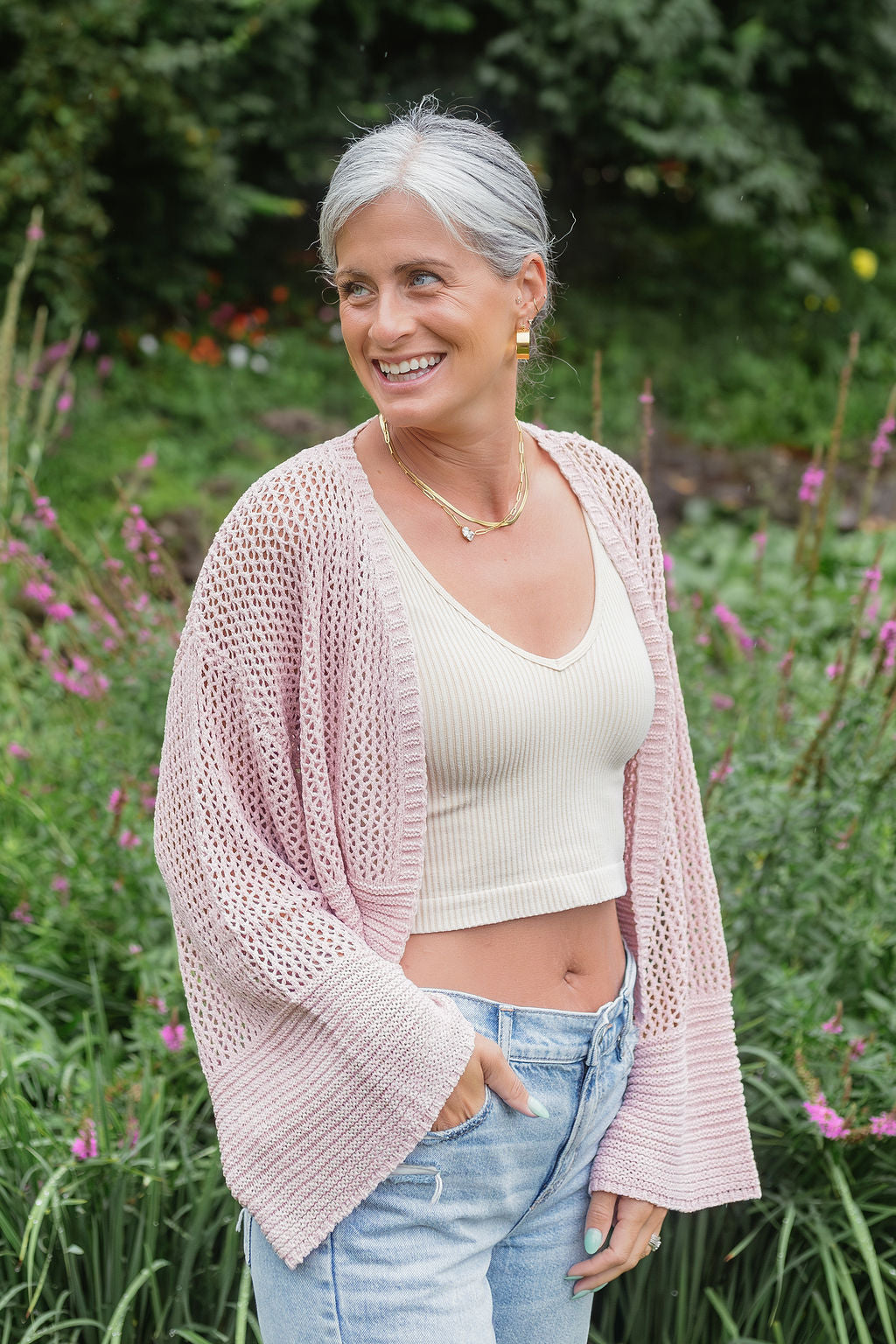 Rory Red Rolled V-Neck Cardigan Top Sweater