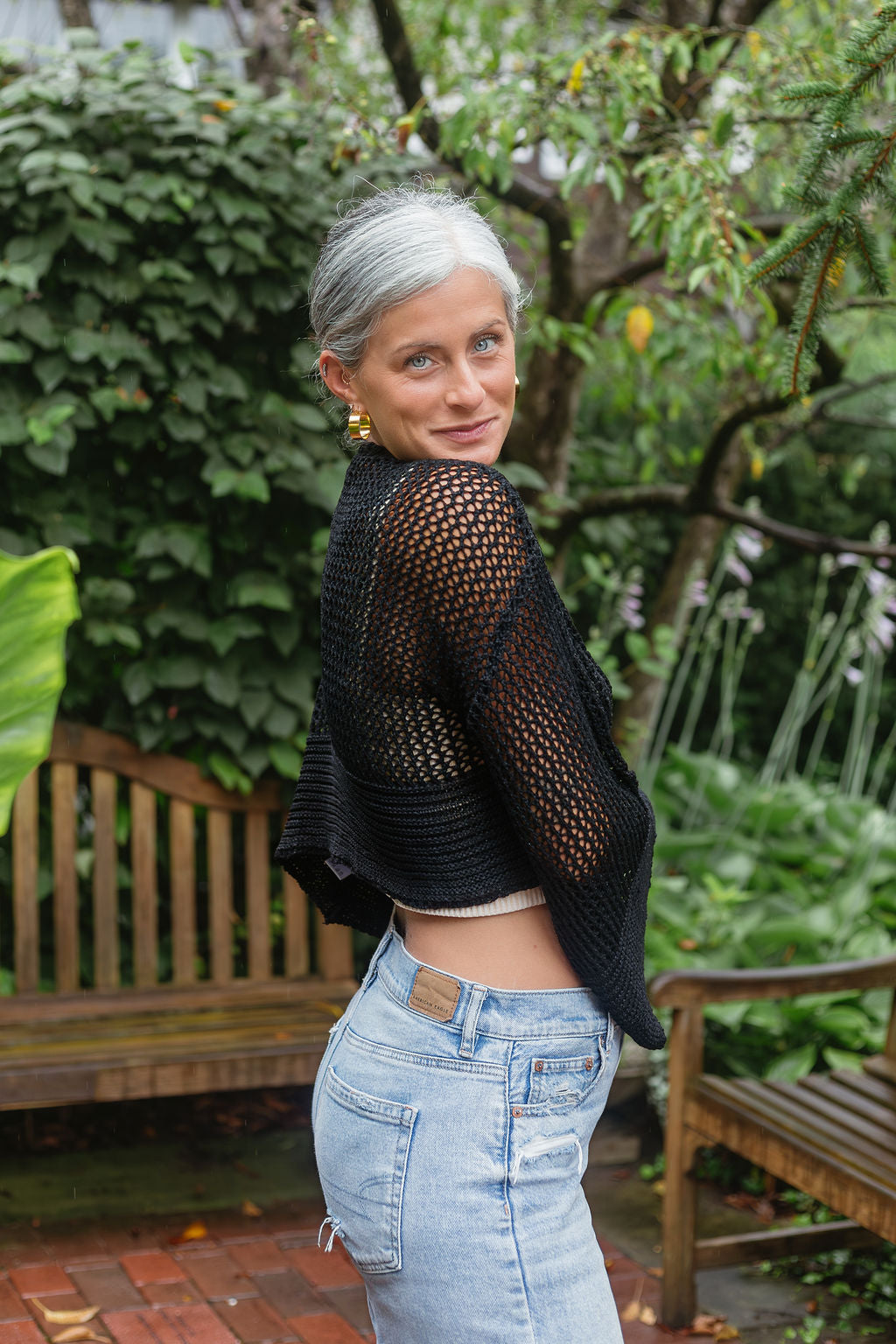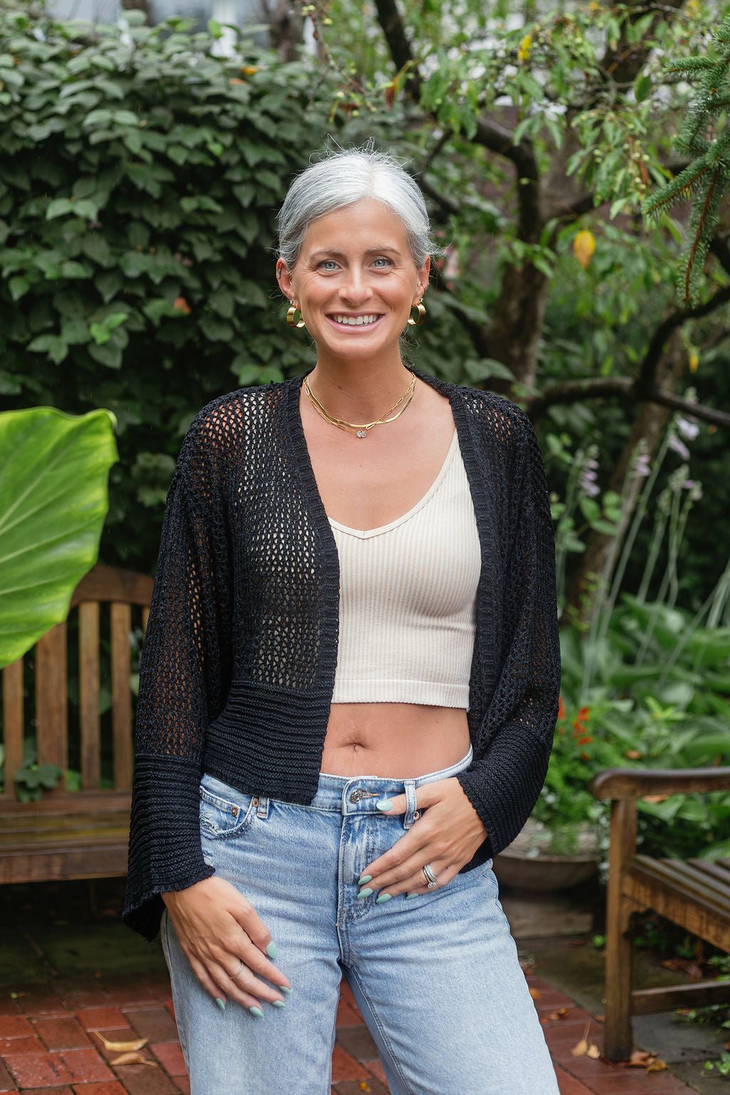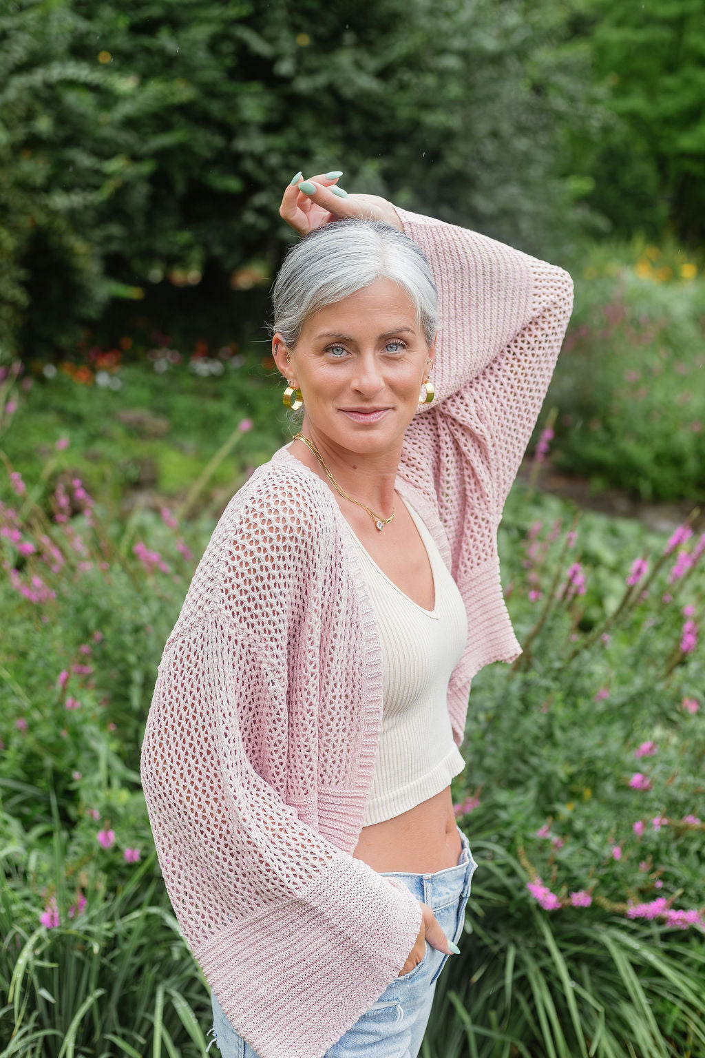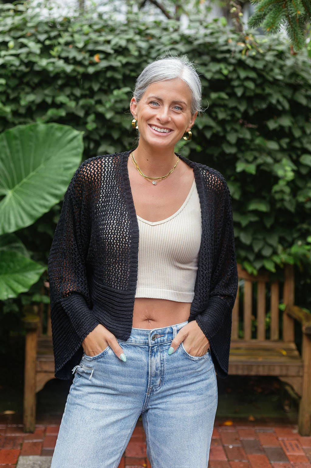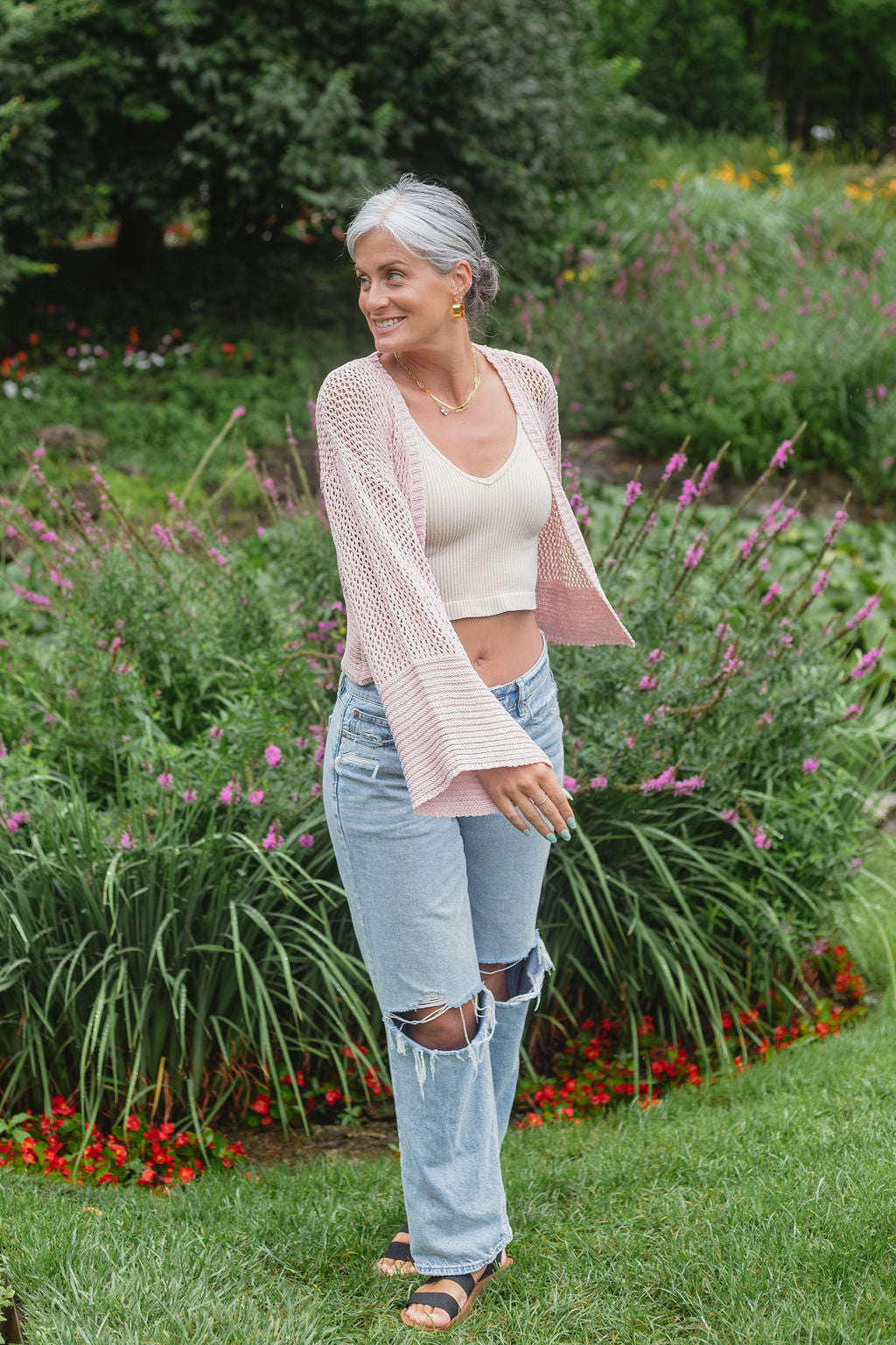 Rory Red Rolled V-Neck Cardigan Top Sweater