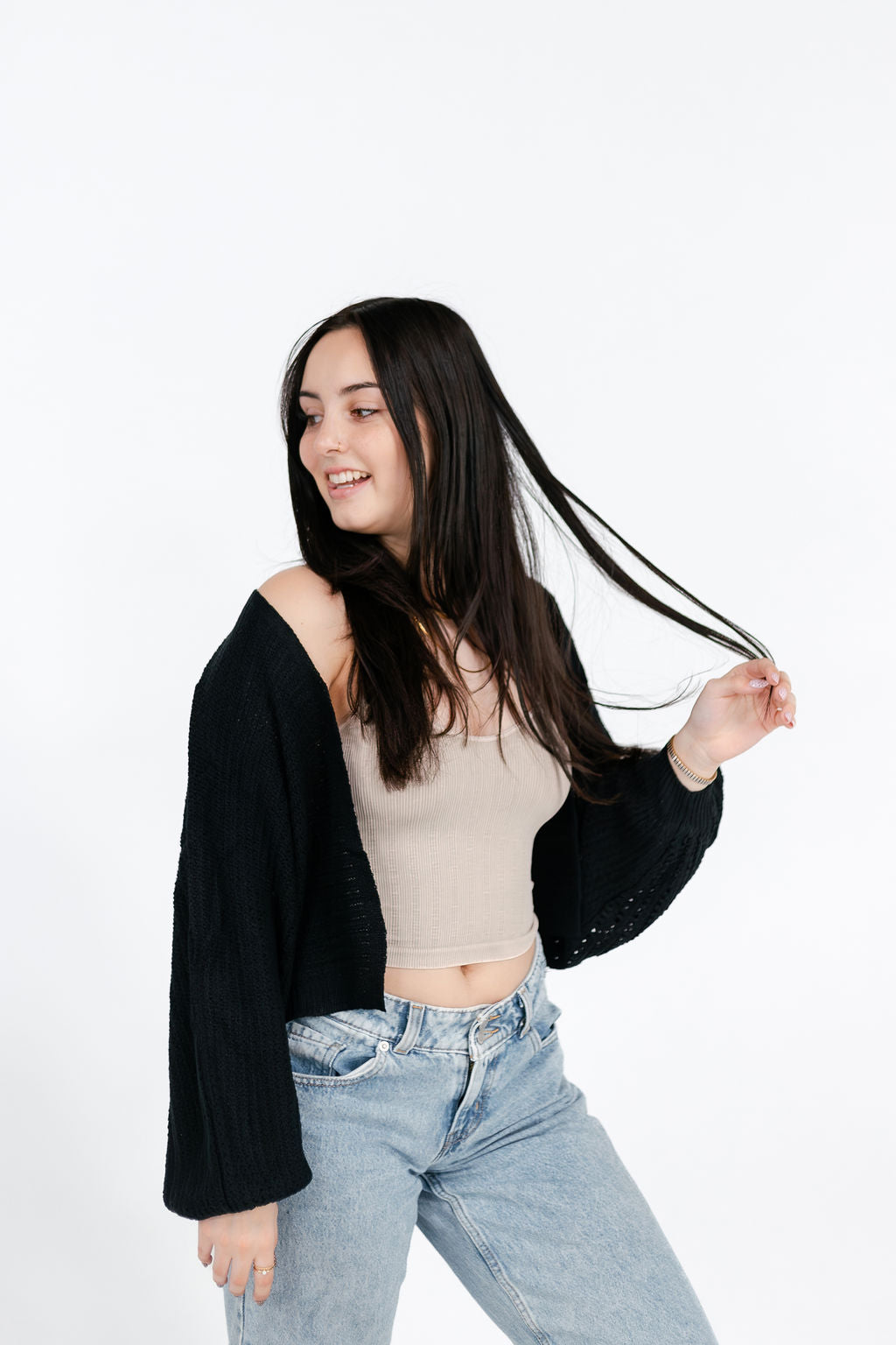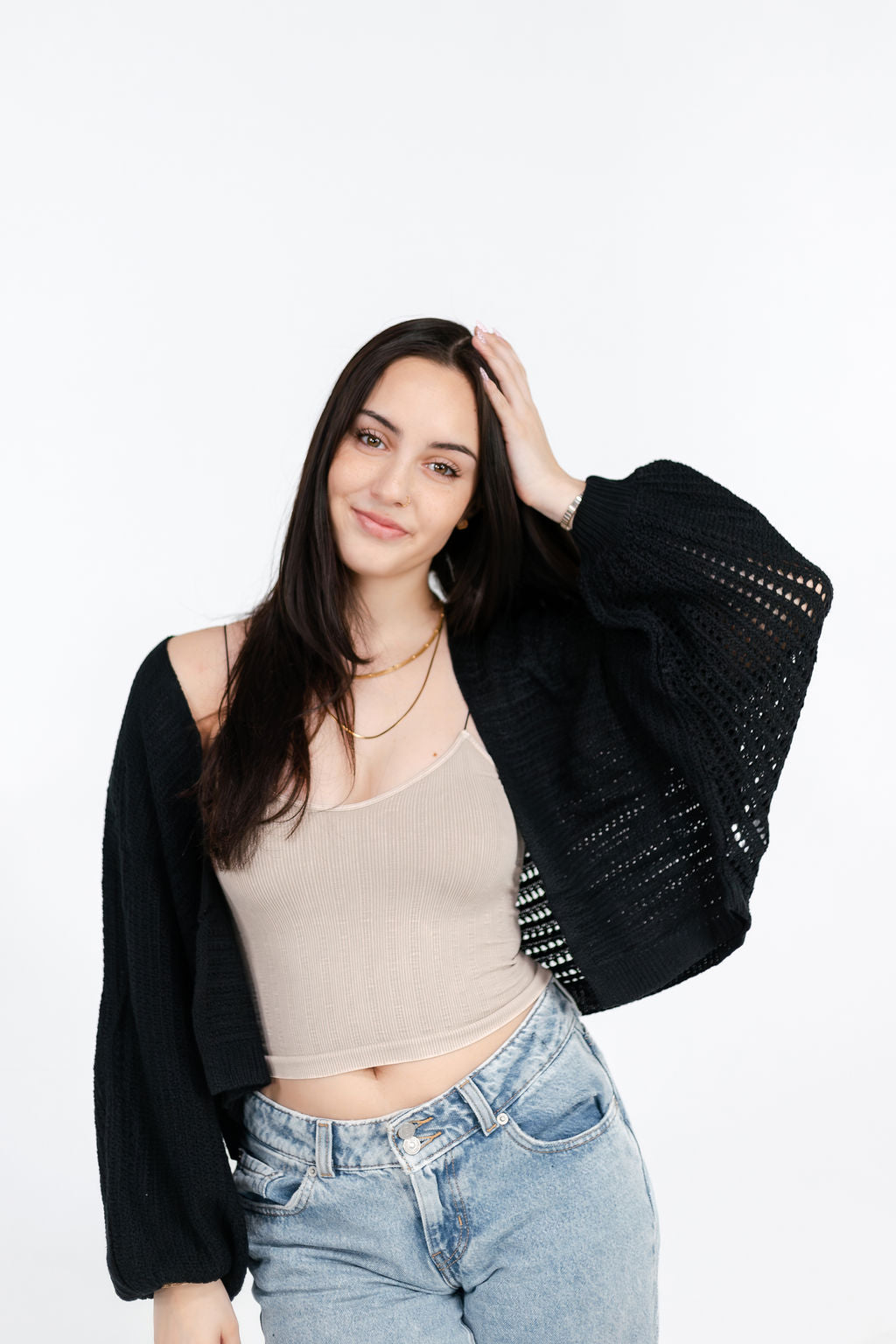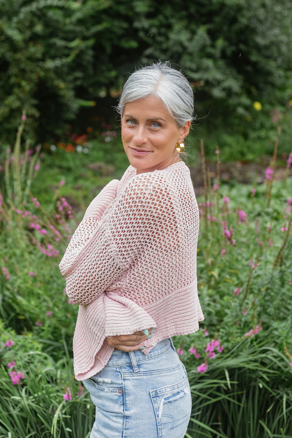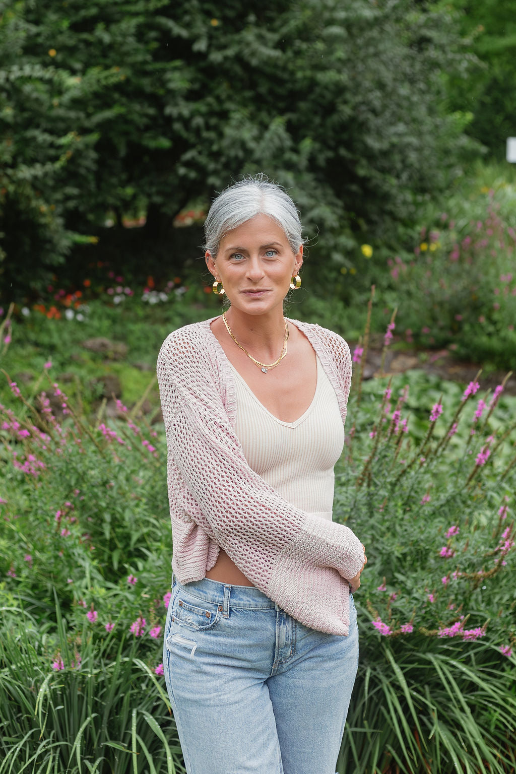 Rory Red Rolled V-Neck Cardigan Top Sweater