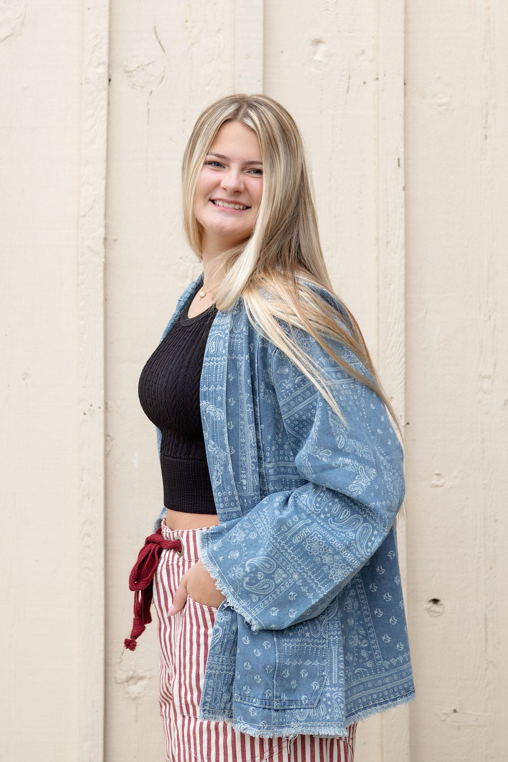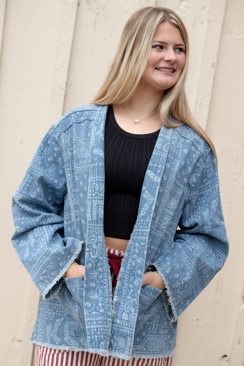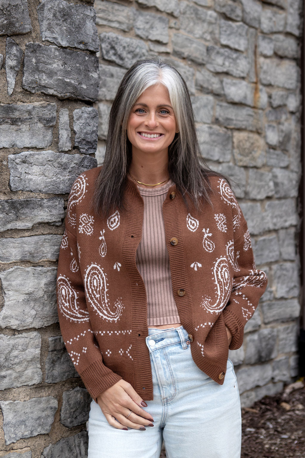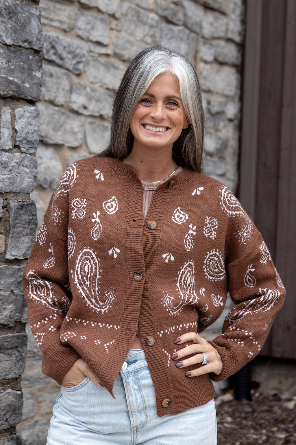 Ranch Crew Neck Paisley Pattern Sweater Cardigan