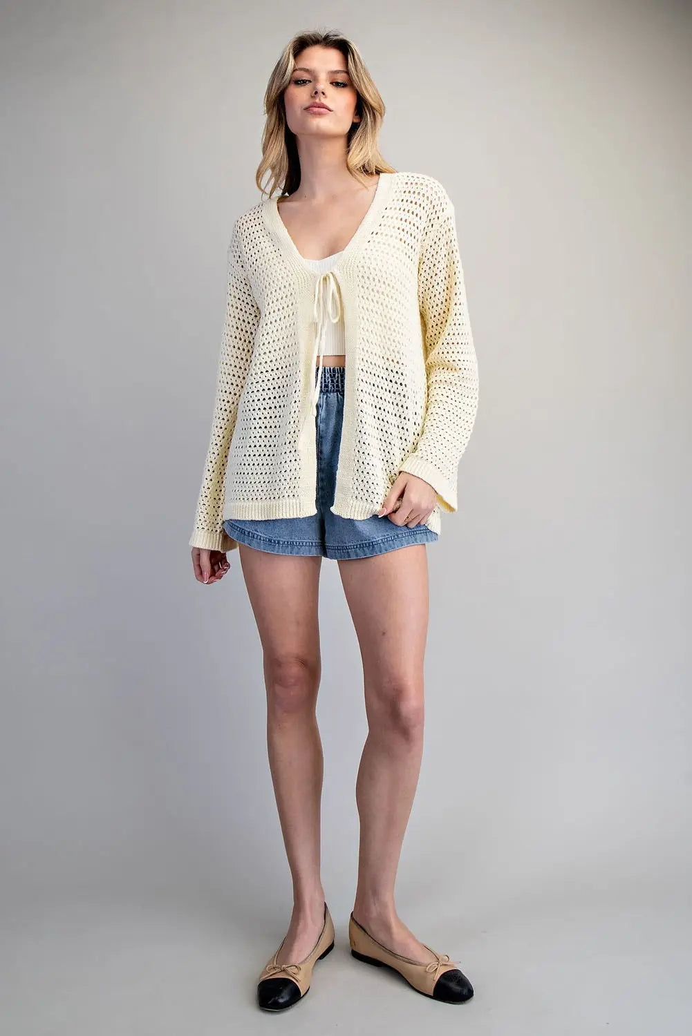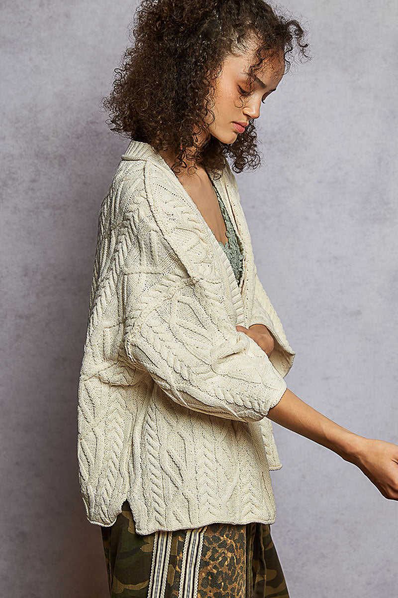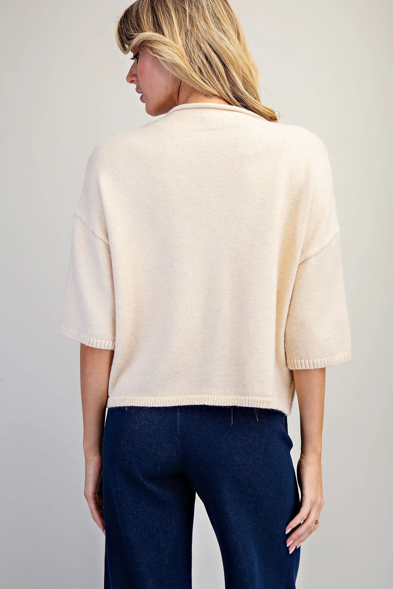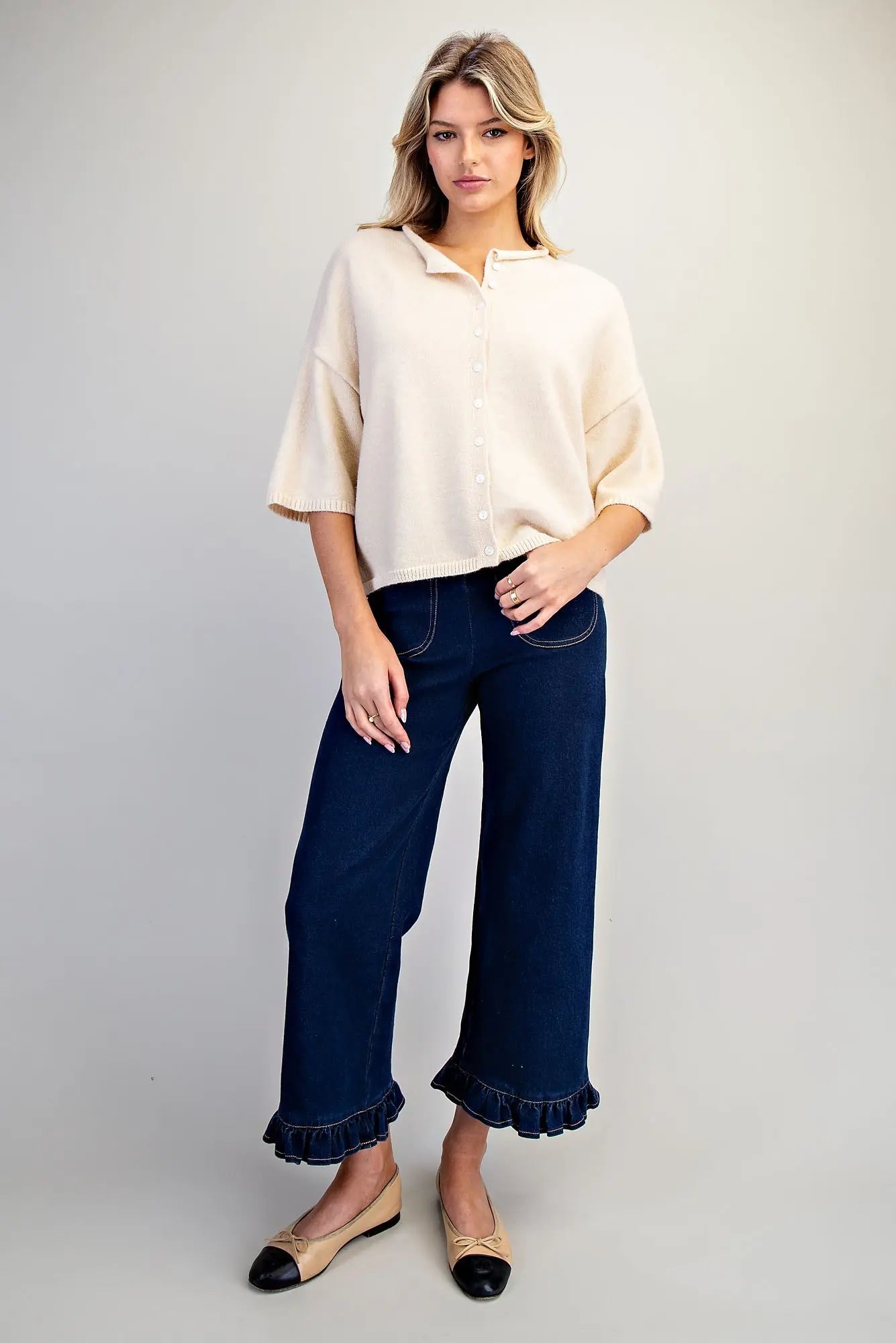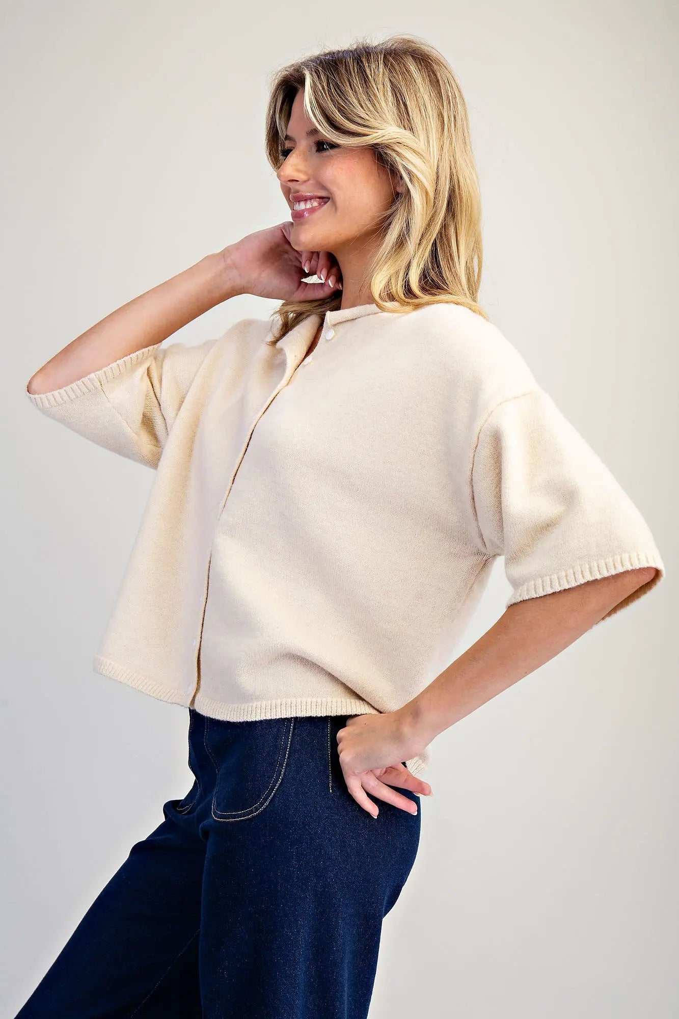 Essie Sand Solid Button Down Half Sleeve Cardigan