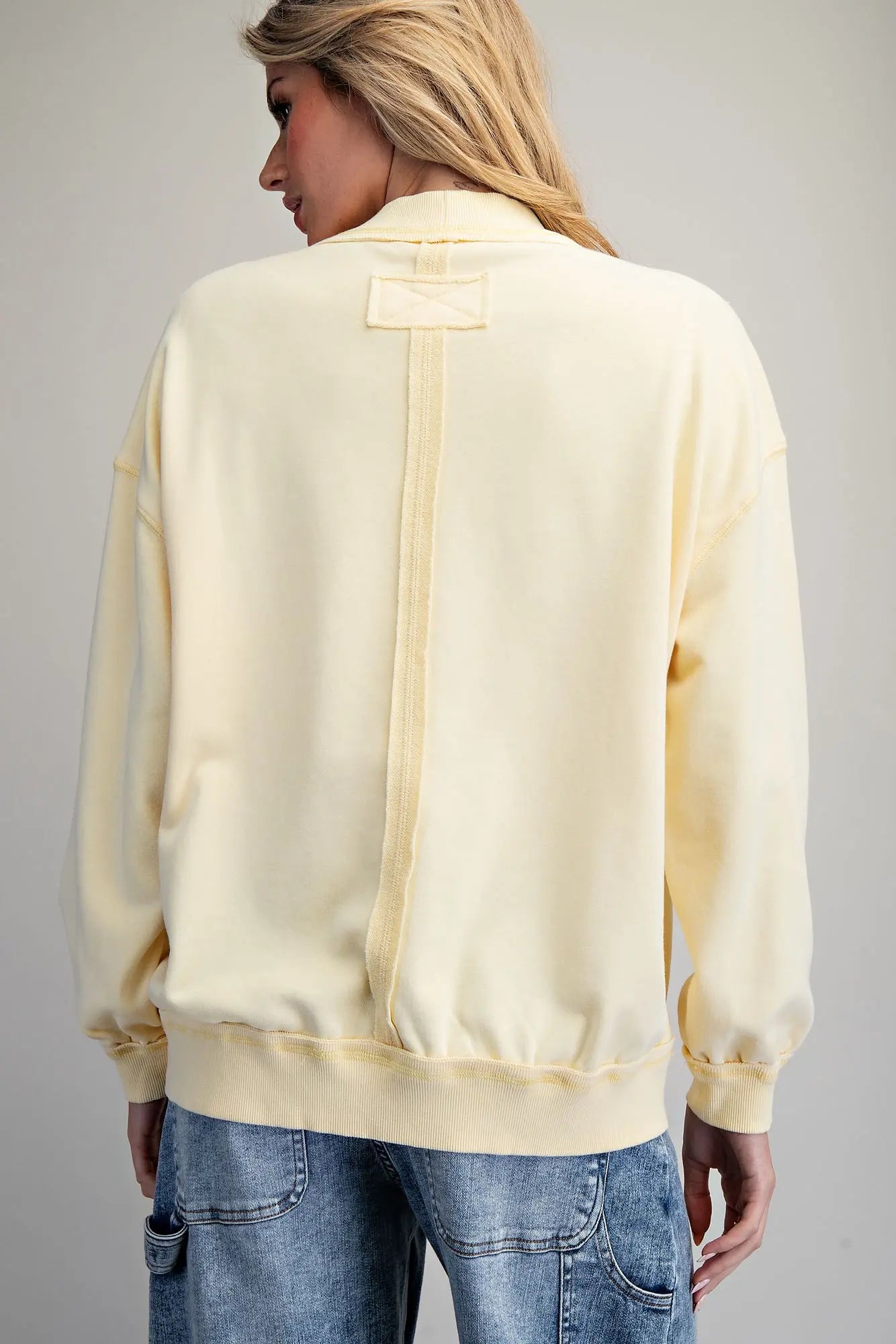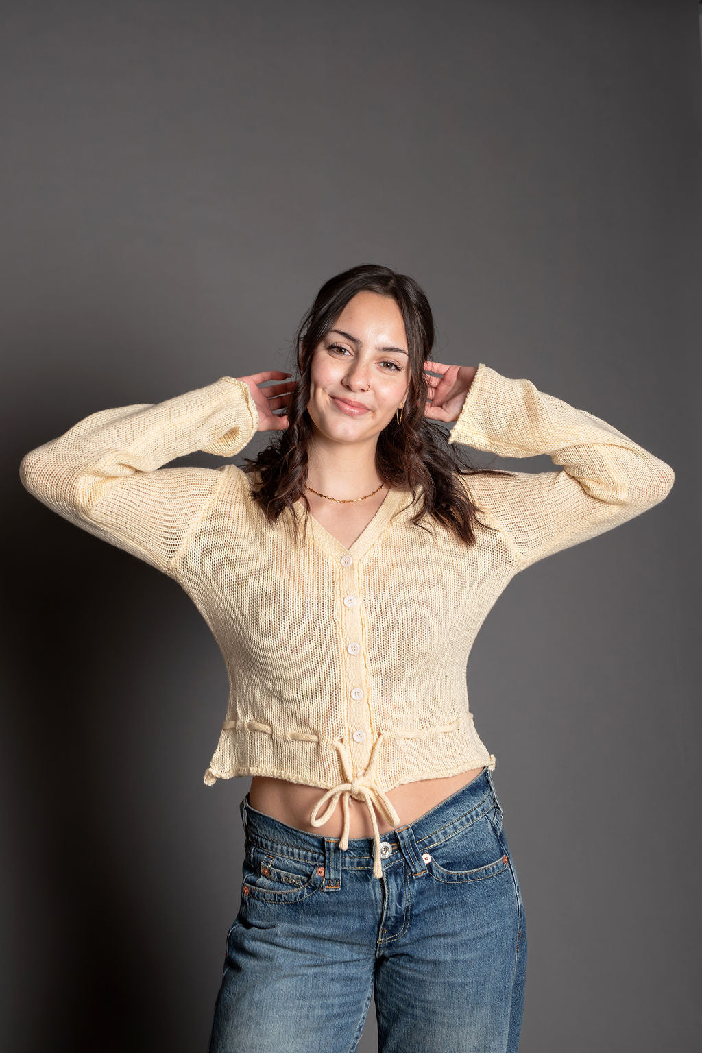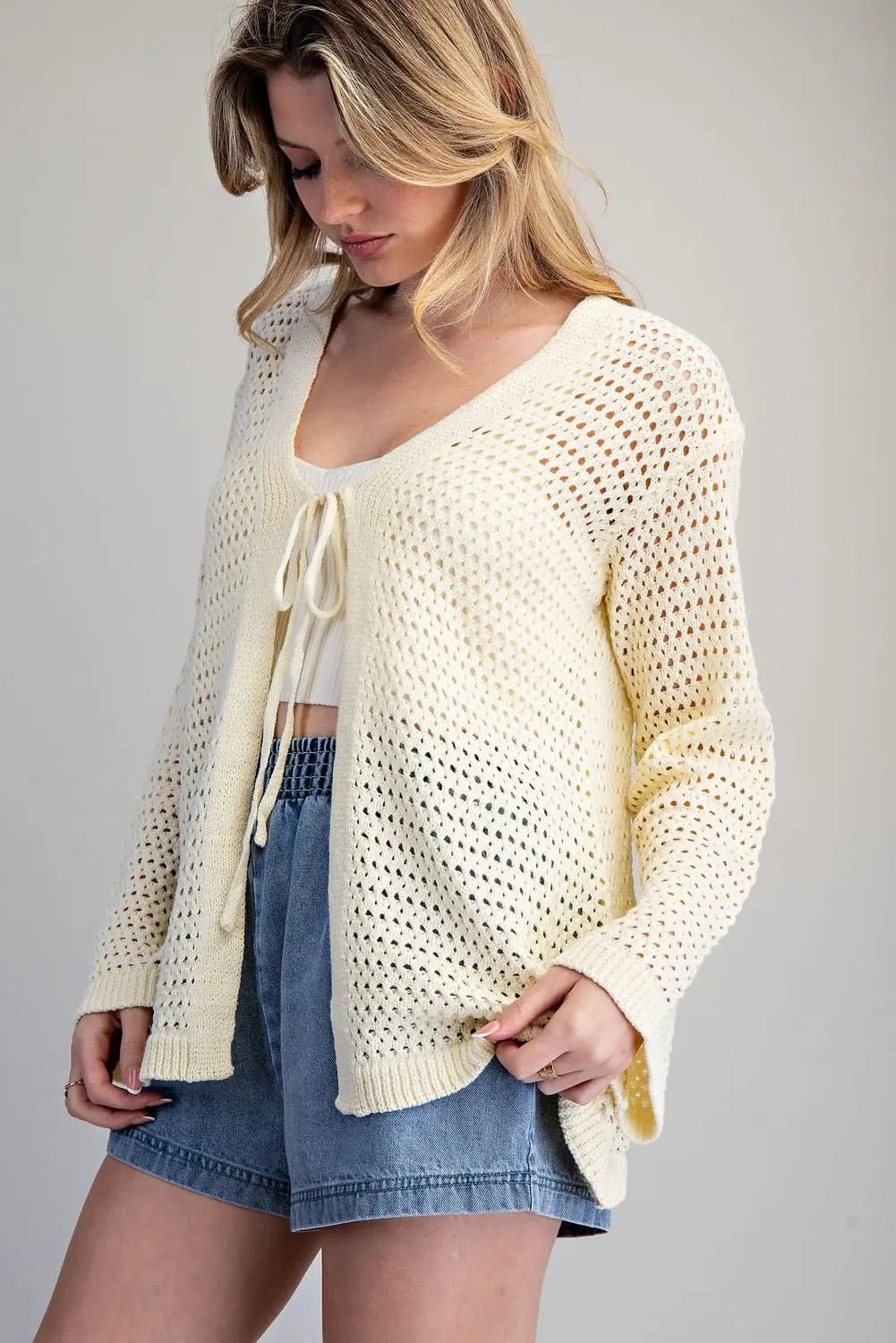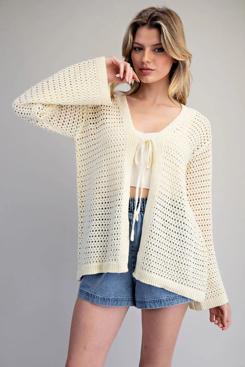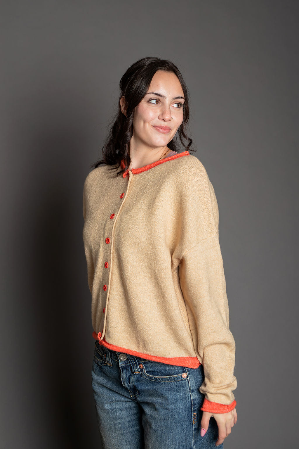 Essie Sand Solid Button Down Half Sleeve Cardigan