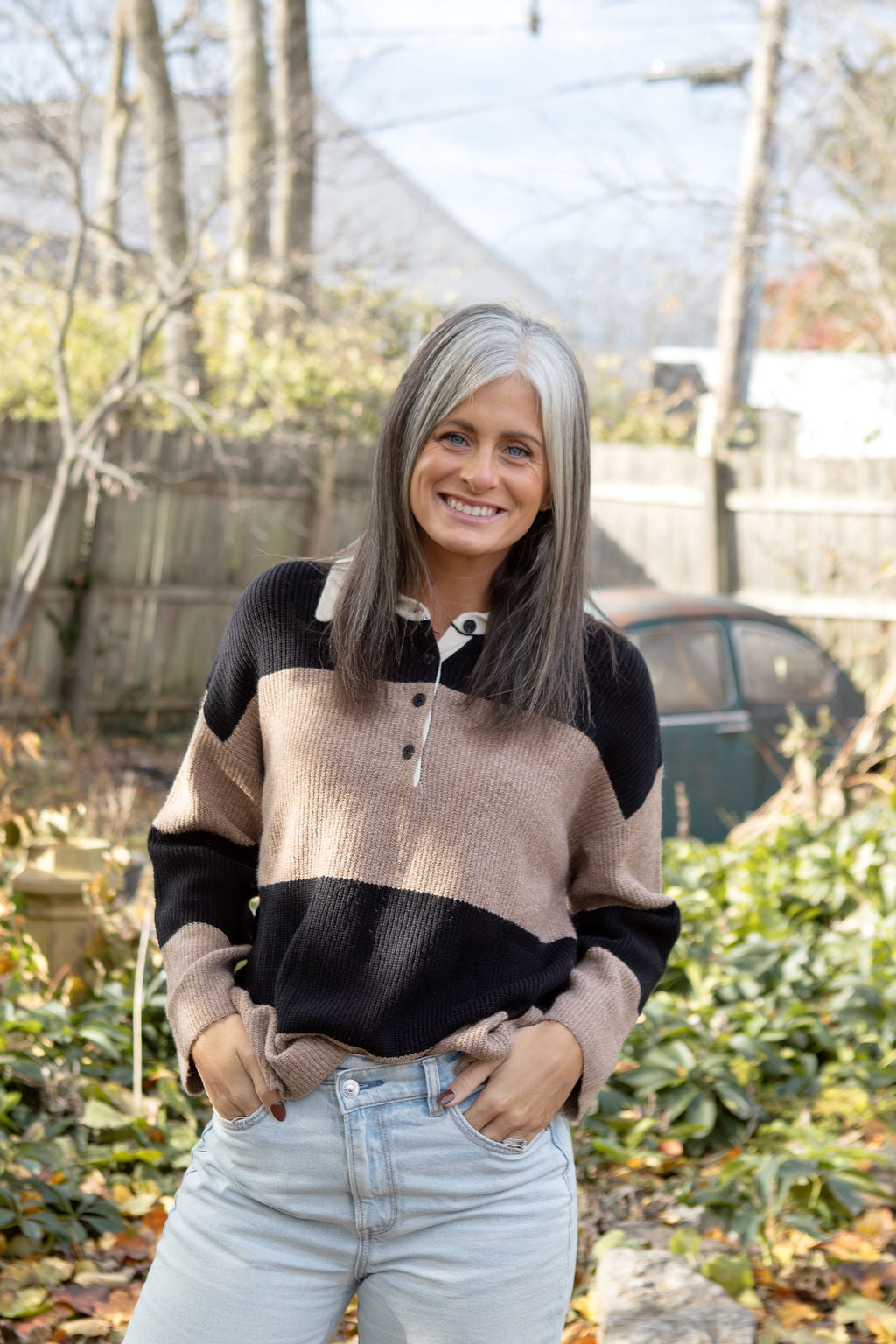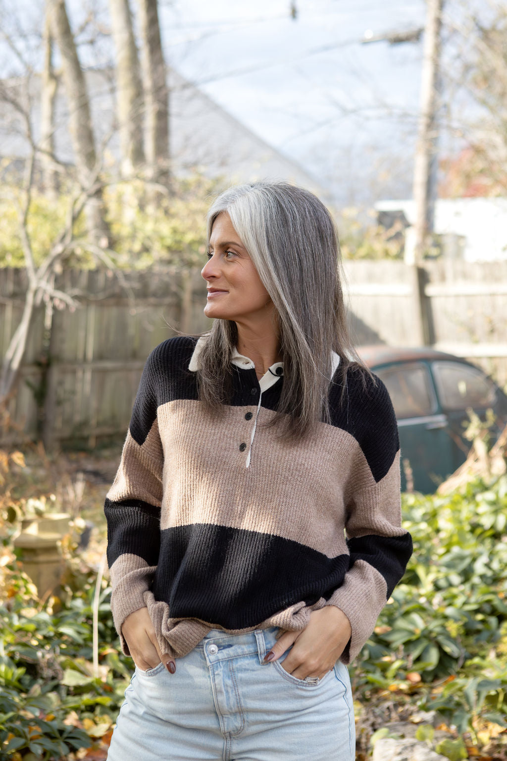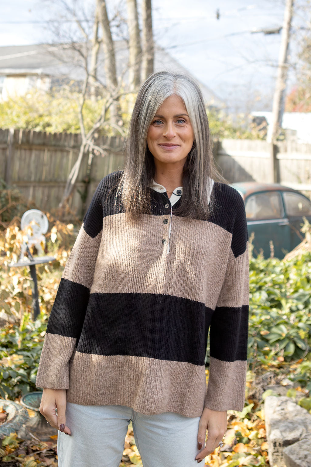 Elevate your casual game with this laid-back polo sweater that giving effortless cool. Featuring a relaxed, oversized silhouette with drop shoulders and a collared half-button front, it's the perfect piece for those days when you want to look put-together without trying too hard.