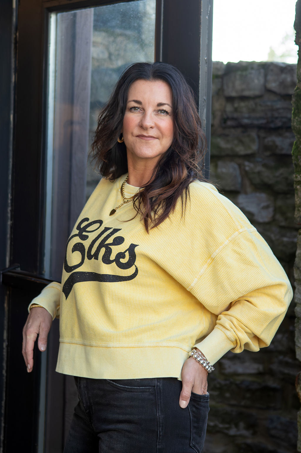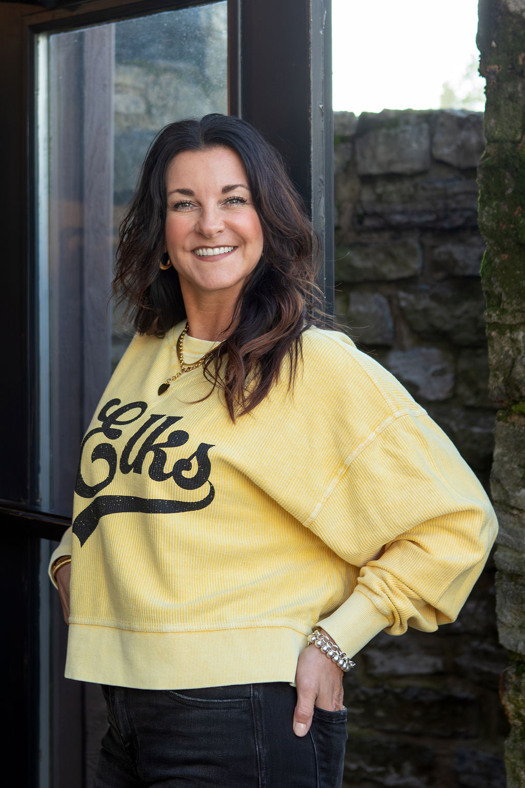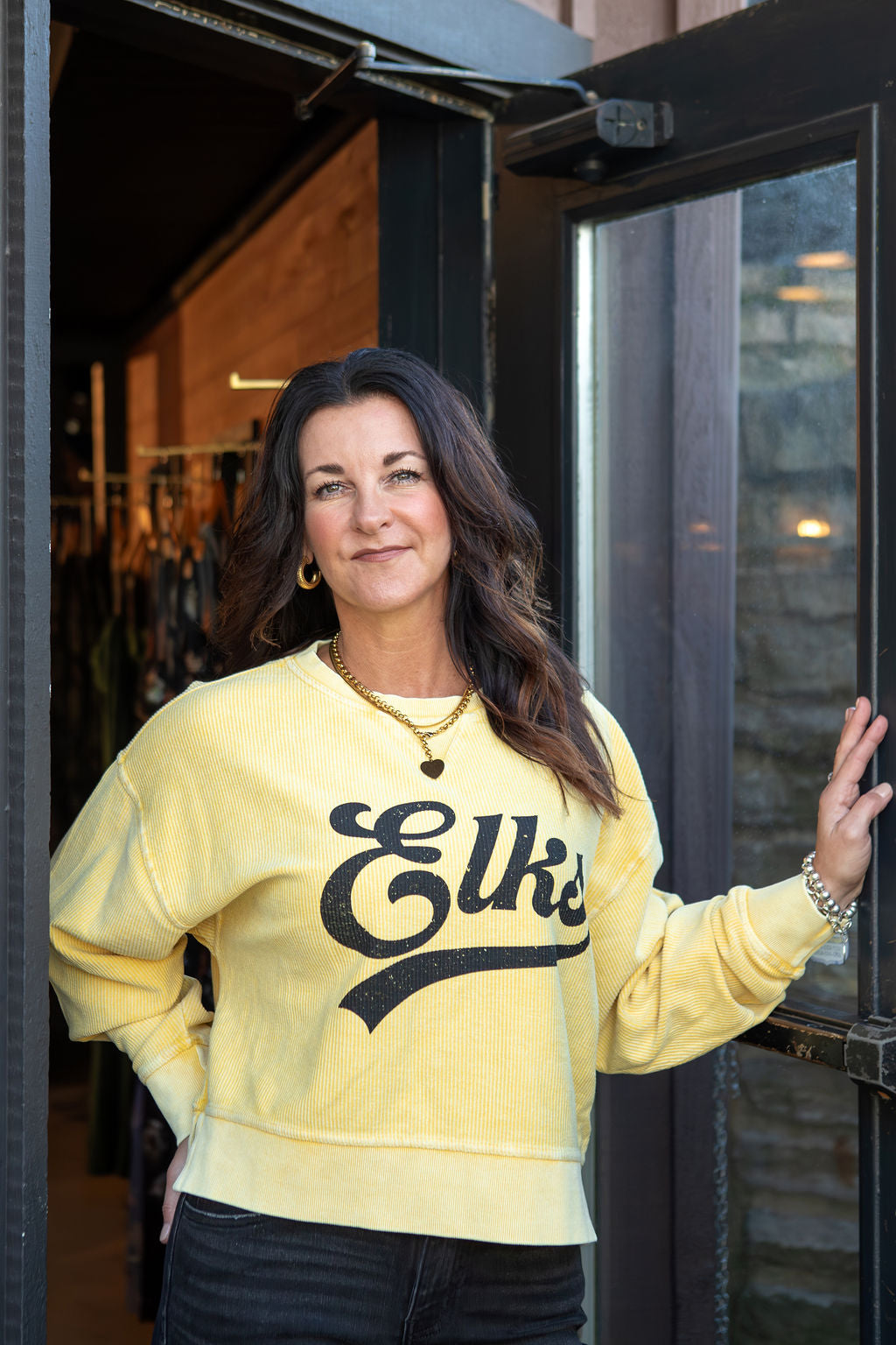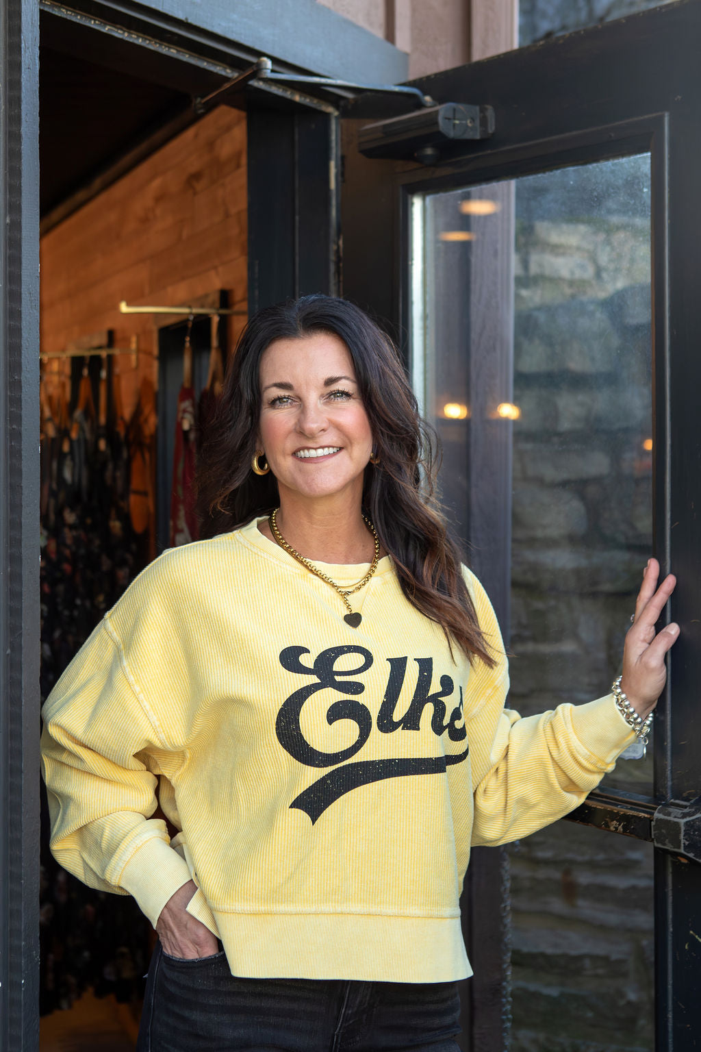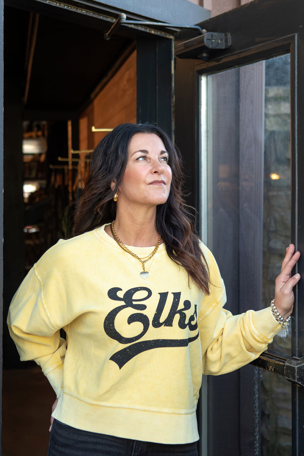 Elks Retro Script Yellow Ribbed Crew Sweatshirt