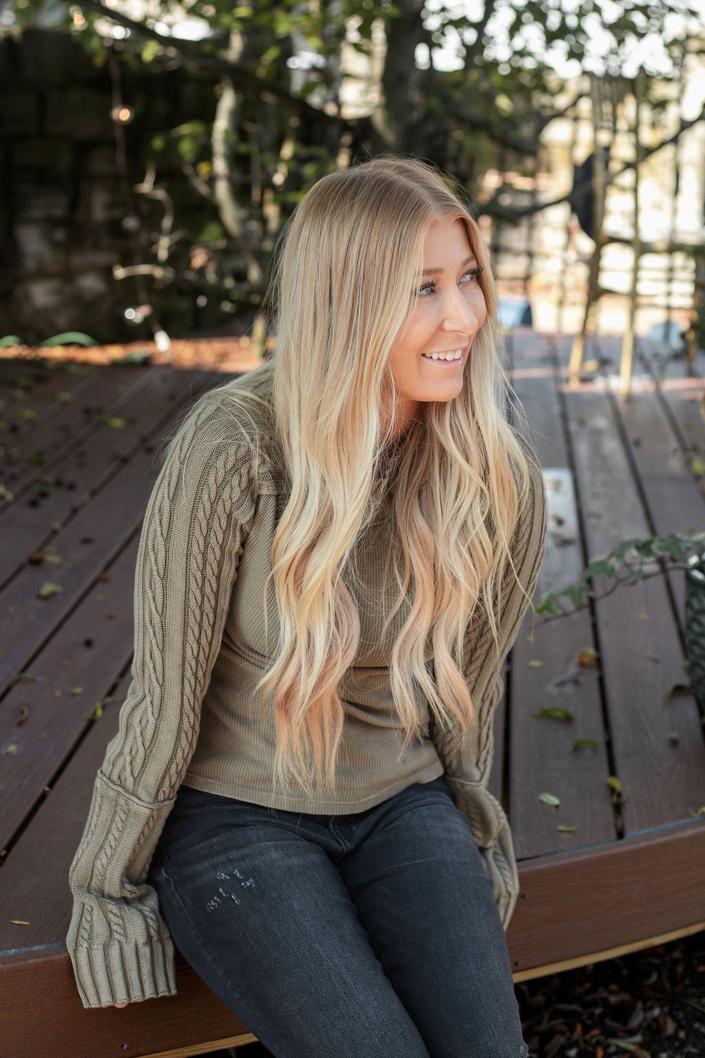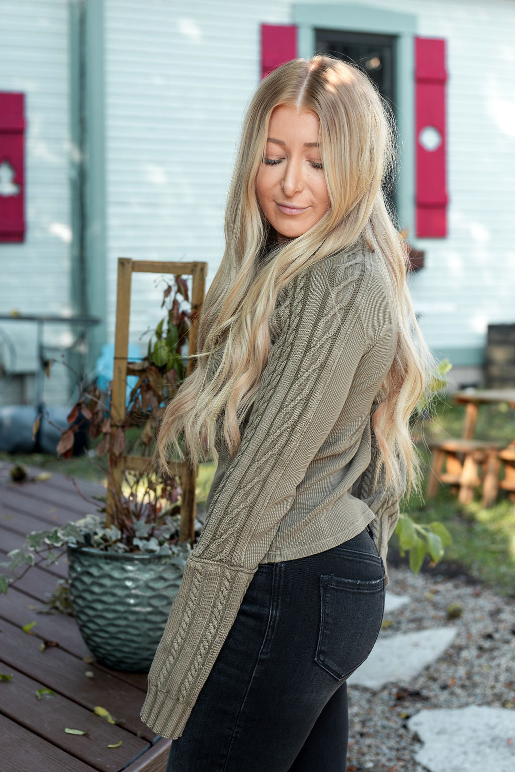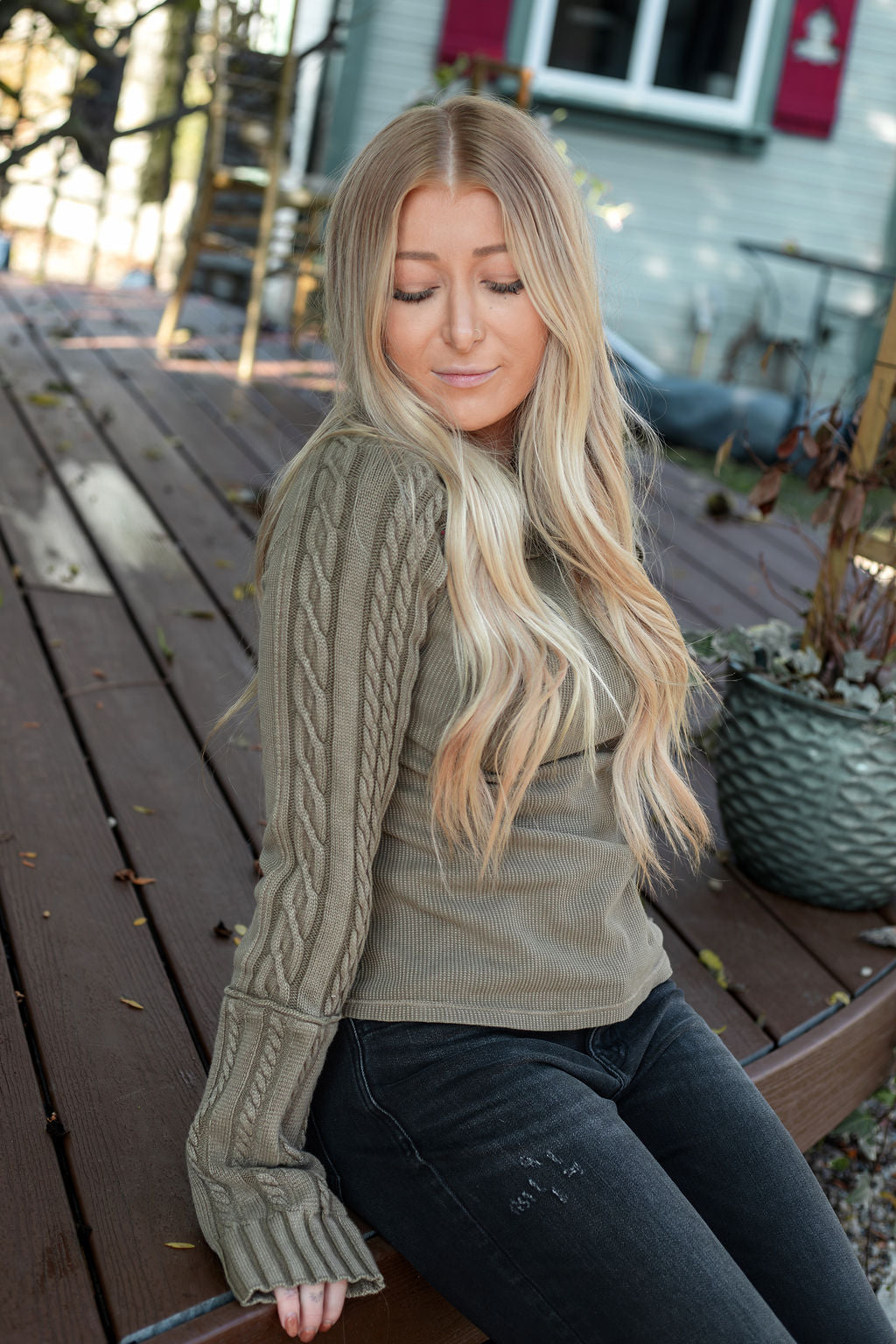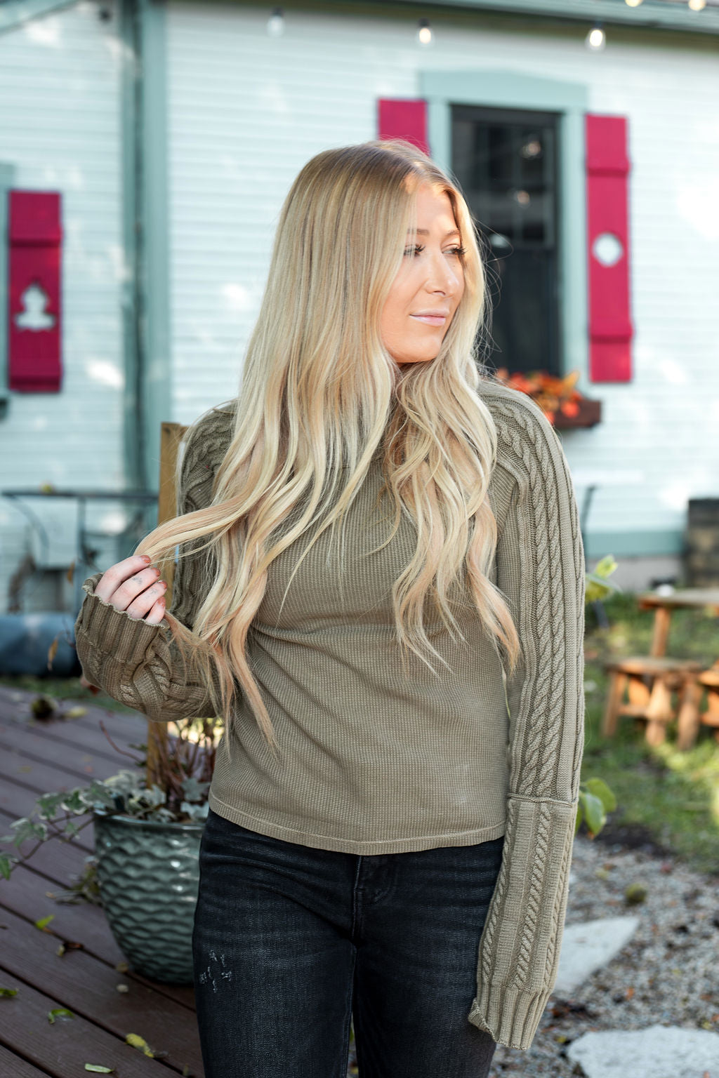 Embrace ultimate coziness with this We The Free sweater, featuring a waffle knit base and cable-knit trims for the perfect blend of comfort and style. The turtle neckline and semi-fitted silhouette create a heritage-inspired, lived-in look that's perfect for everyday wear. Crafted from a soft cotton knit blend with a washed finish. Measurements (Size Small):