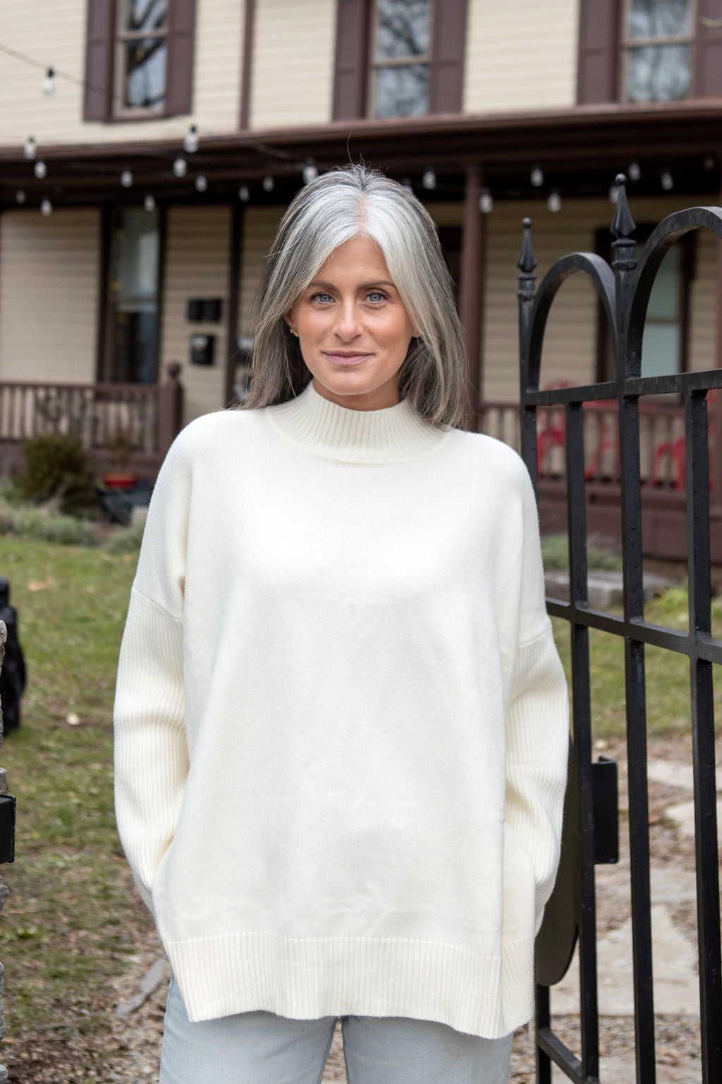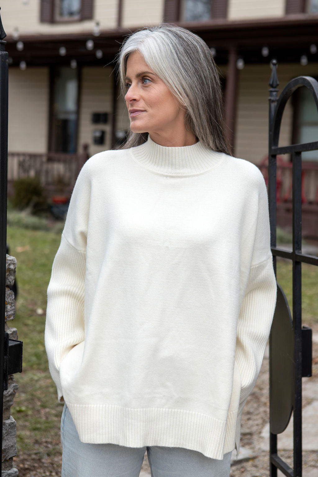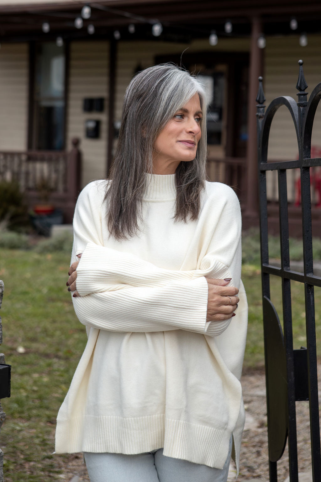 Dream On Wide Sleeve Mock Neck Sweater - Ivory