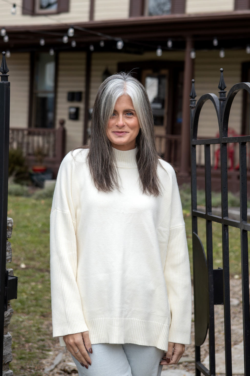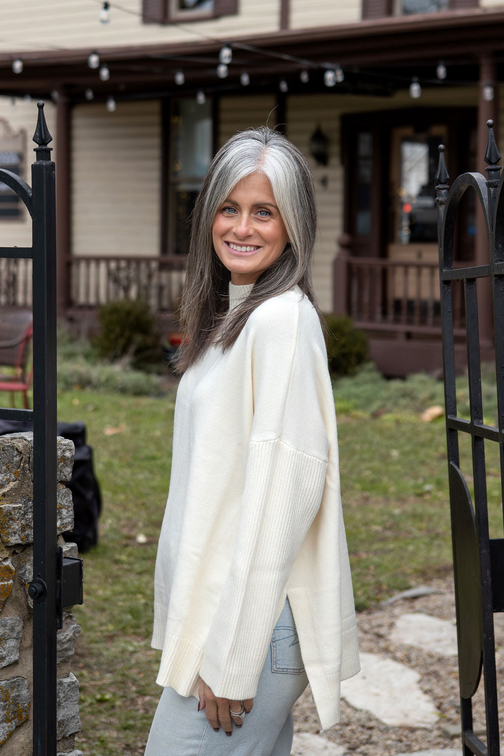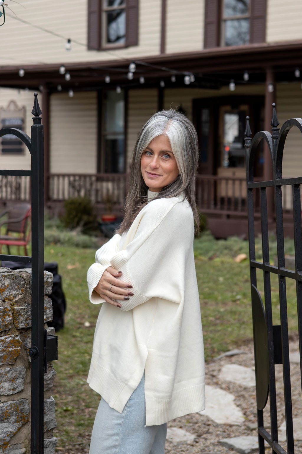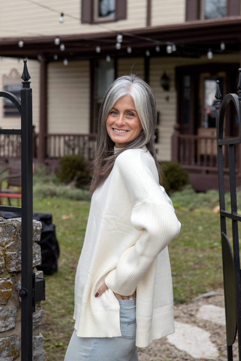 Dream On Wide Sleeve Mock Neck Sweater - Ivory