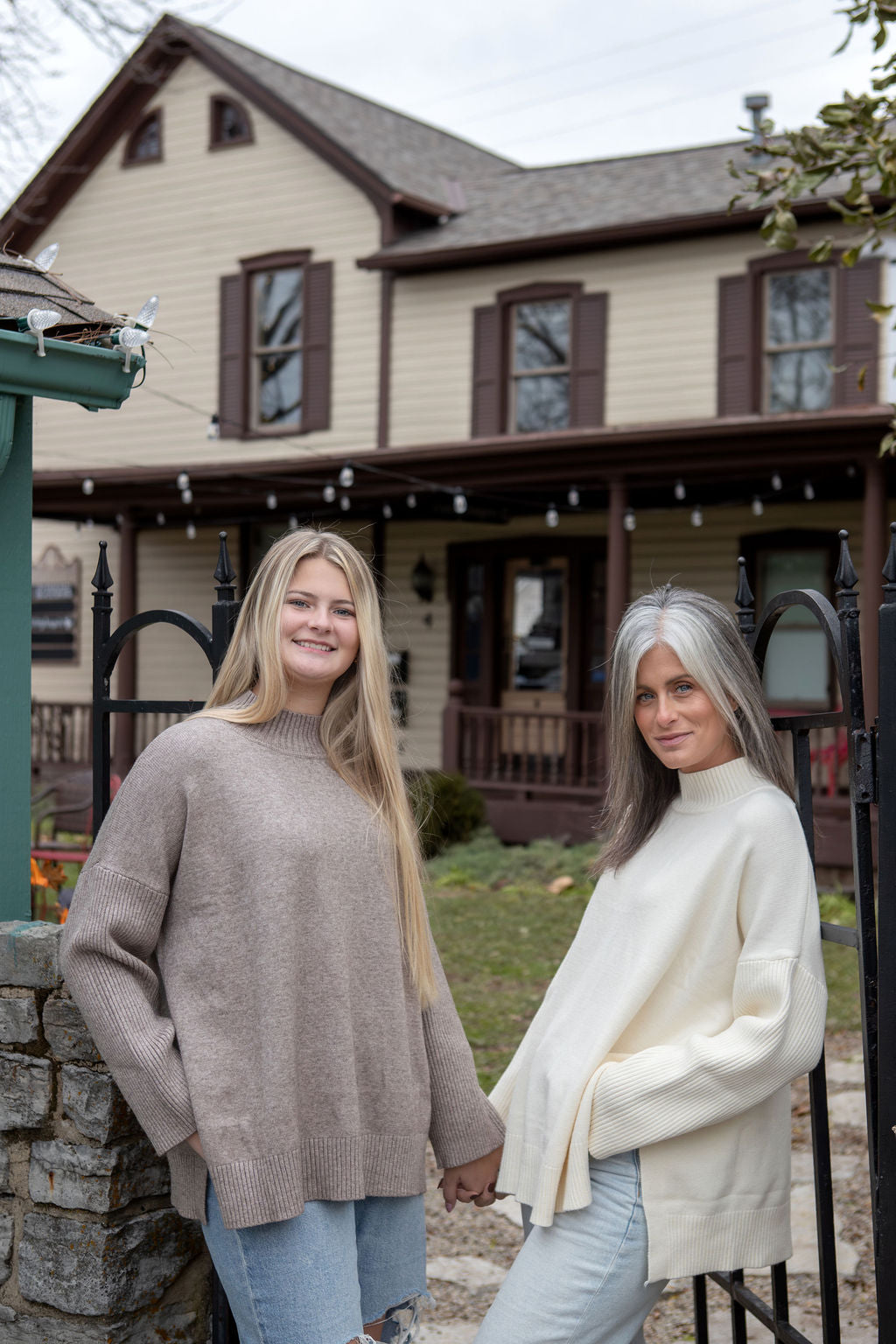This sweater is a cozy, relaxed-fit knit featuring a mock neckline and wide, slightly cropped sleeves with ribbed detailing for added texture. Its boxy silhouette makes it a versatile layering piece, offering both comfort and sophistication.