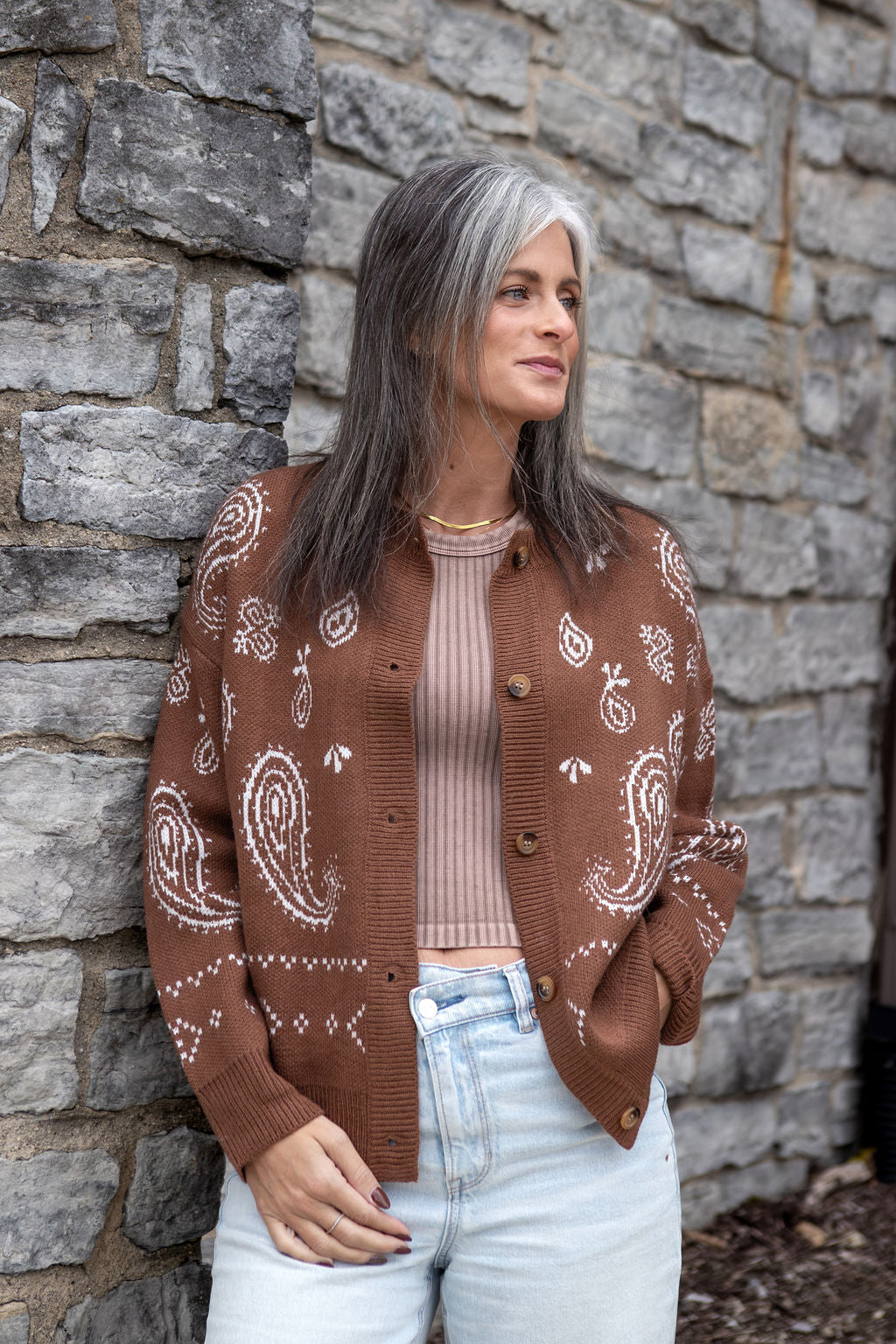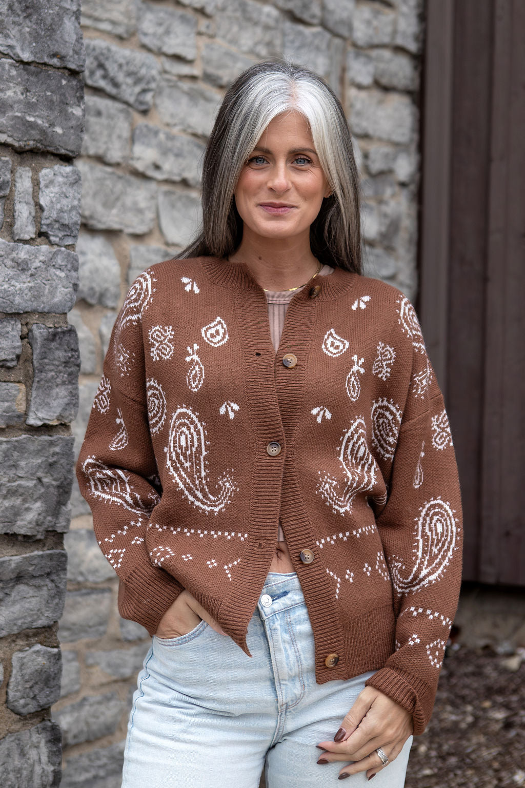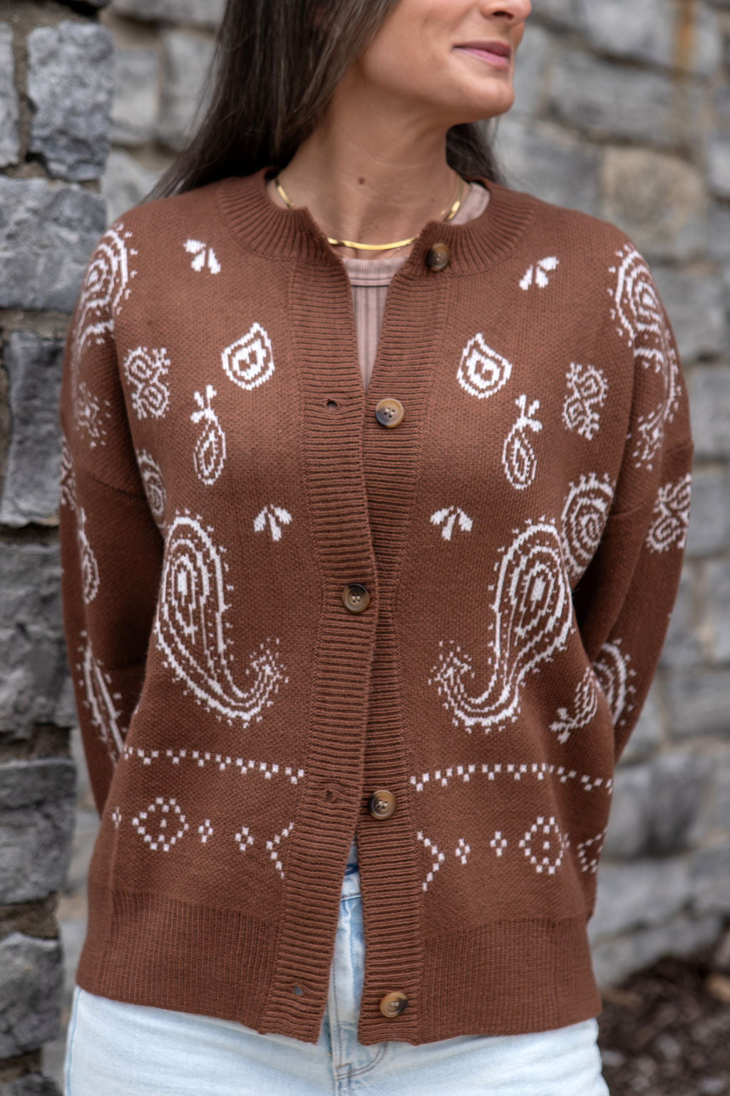 Ranch Crew Neck Paisley Pattern Sweater Cardigan