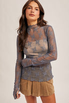 Elevate your layering game with the Sia Slate Mock Neck Lace Long Sleeve. Crafted from a stretchy 90% nylon and 10% spandex blend, this piece moves with you while the mock neck adds just the right amount of polish. Thumb holes keep your sleeves exactly where you want them, and delicate lace detailing brings a touch of sophistication to your everyday rotation. Perfect for layering under anything or standing solo as your new go-to top.
