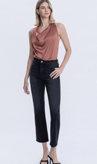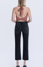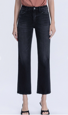 Verdant Gleam Mid Rise Black Ankle Straight Jeans