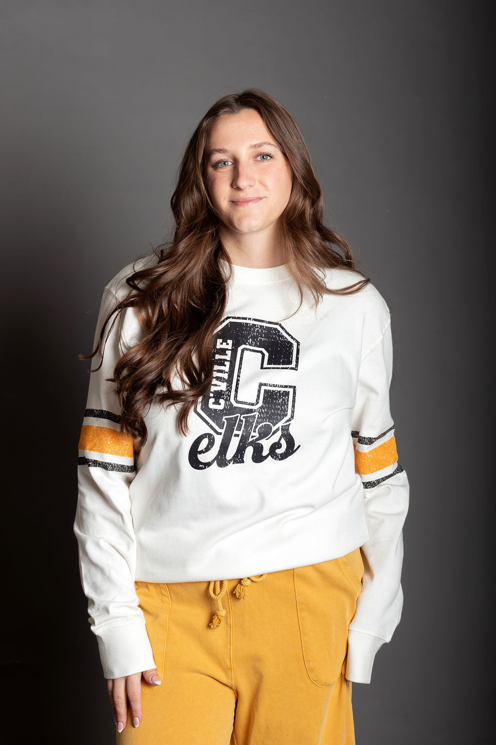 Elks Block White Ribbed Crew Sweatshirt - Full Length