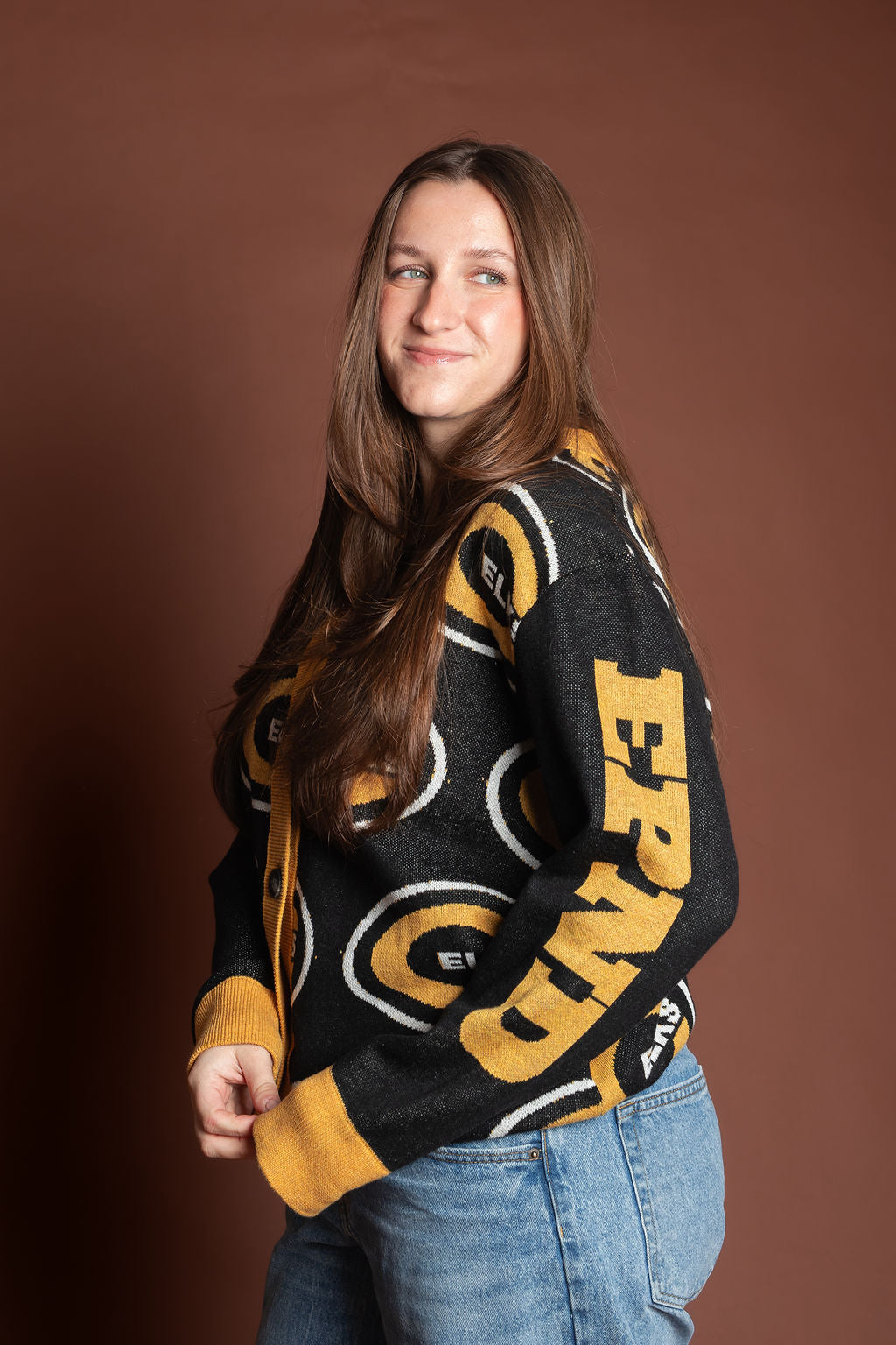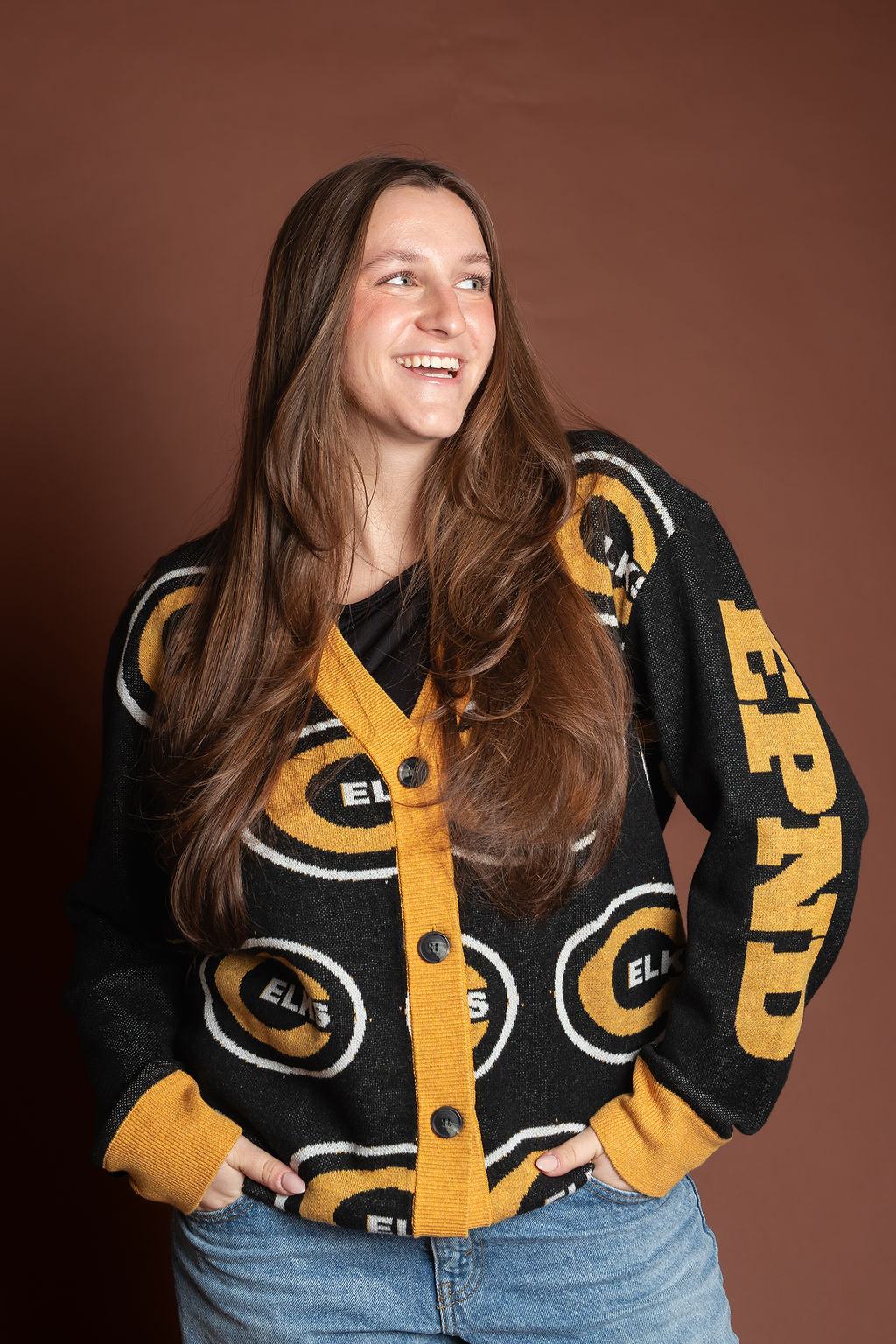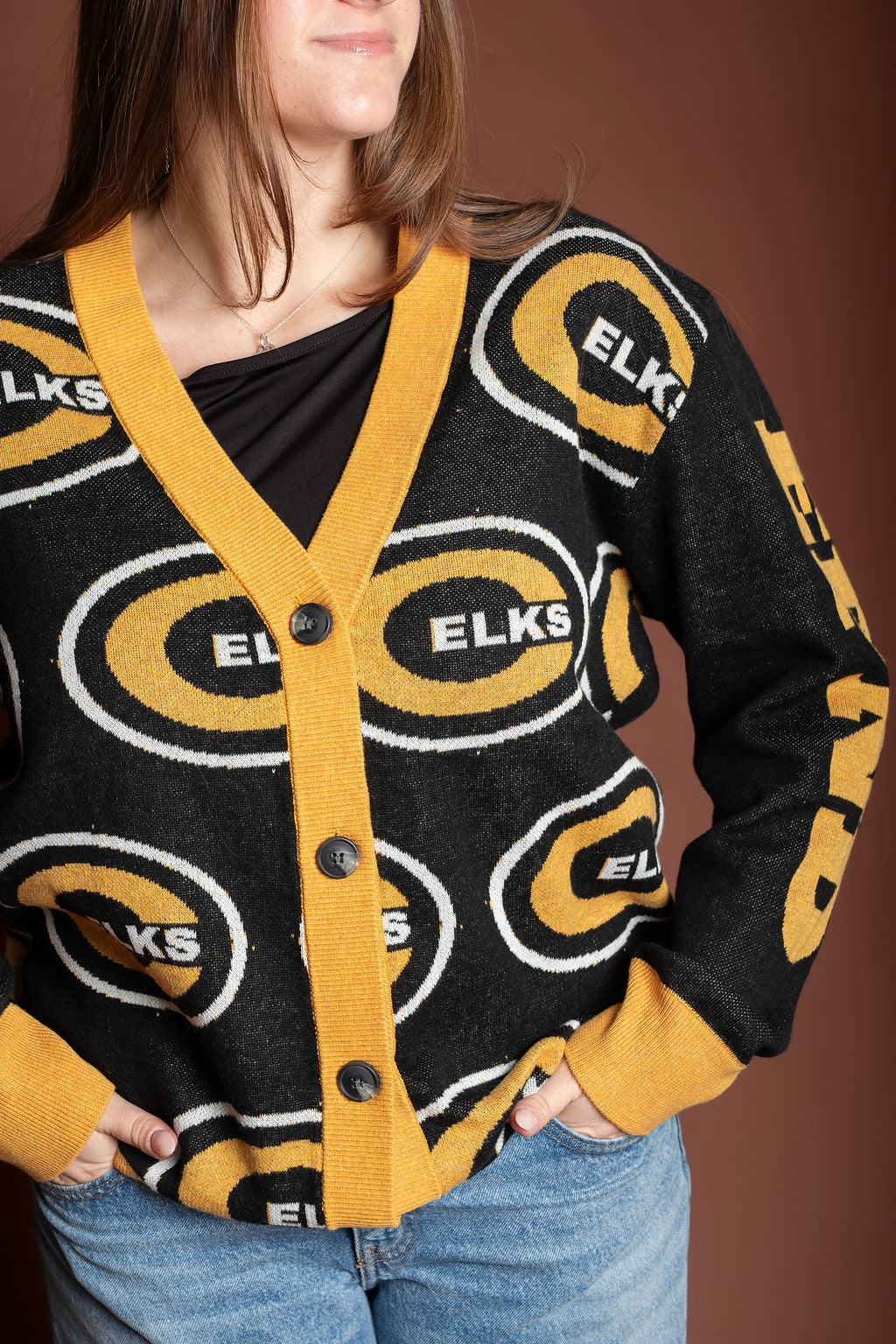 Layer up in this knit cardigan featuring the Centerville Elks logo with a classic button-up front. Crafted from soft, breathable fabric perfect for layering. EPND design runs down one sleeve - similar to how we wear our heart on our sleeve for our ELKS.