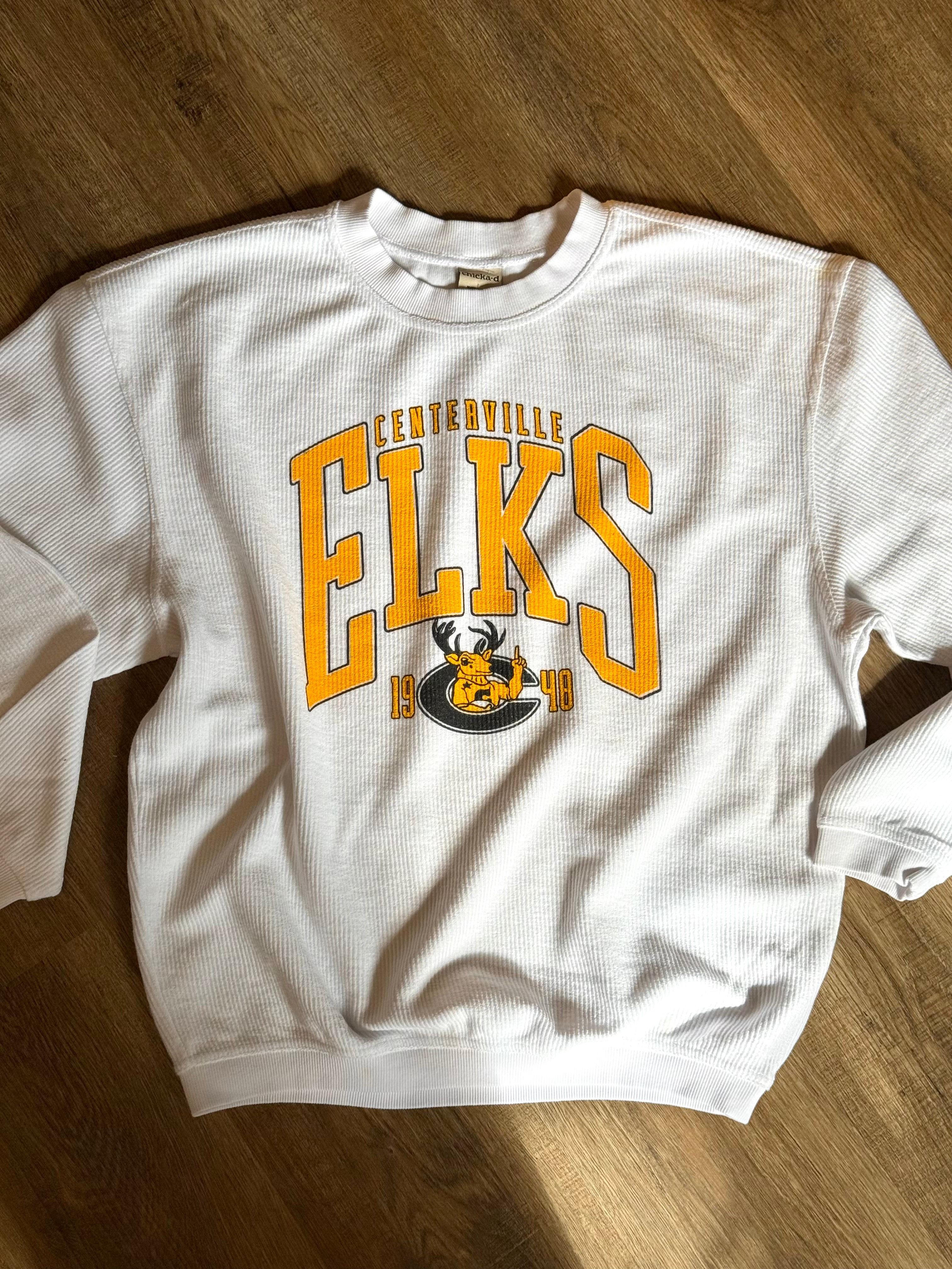 Elks Block White Ribbed Crew Sweatshirt - Full Length