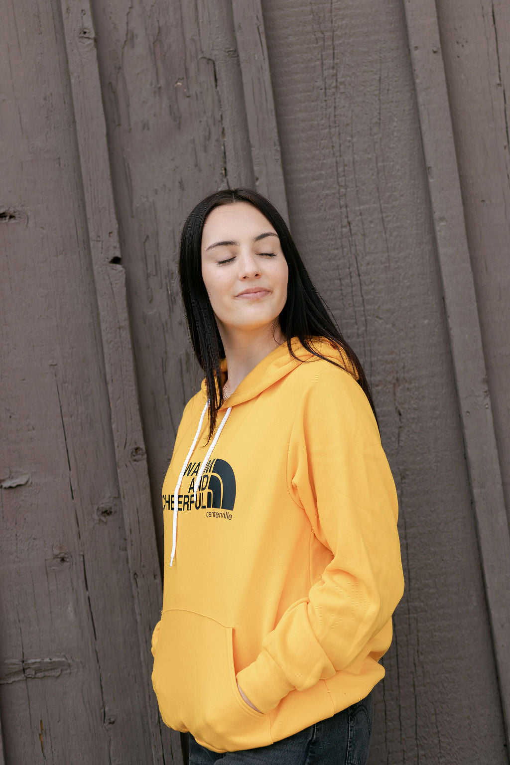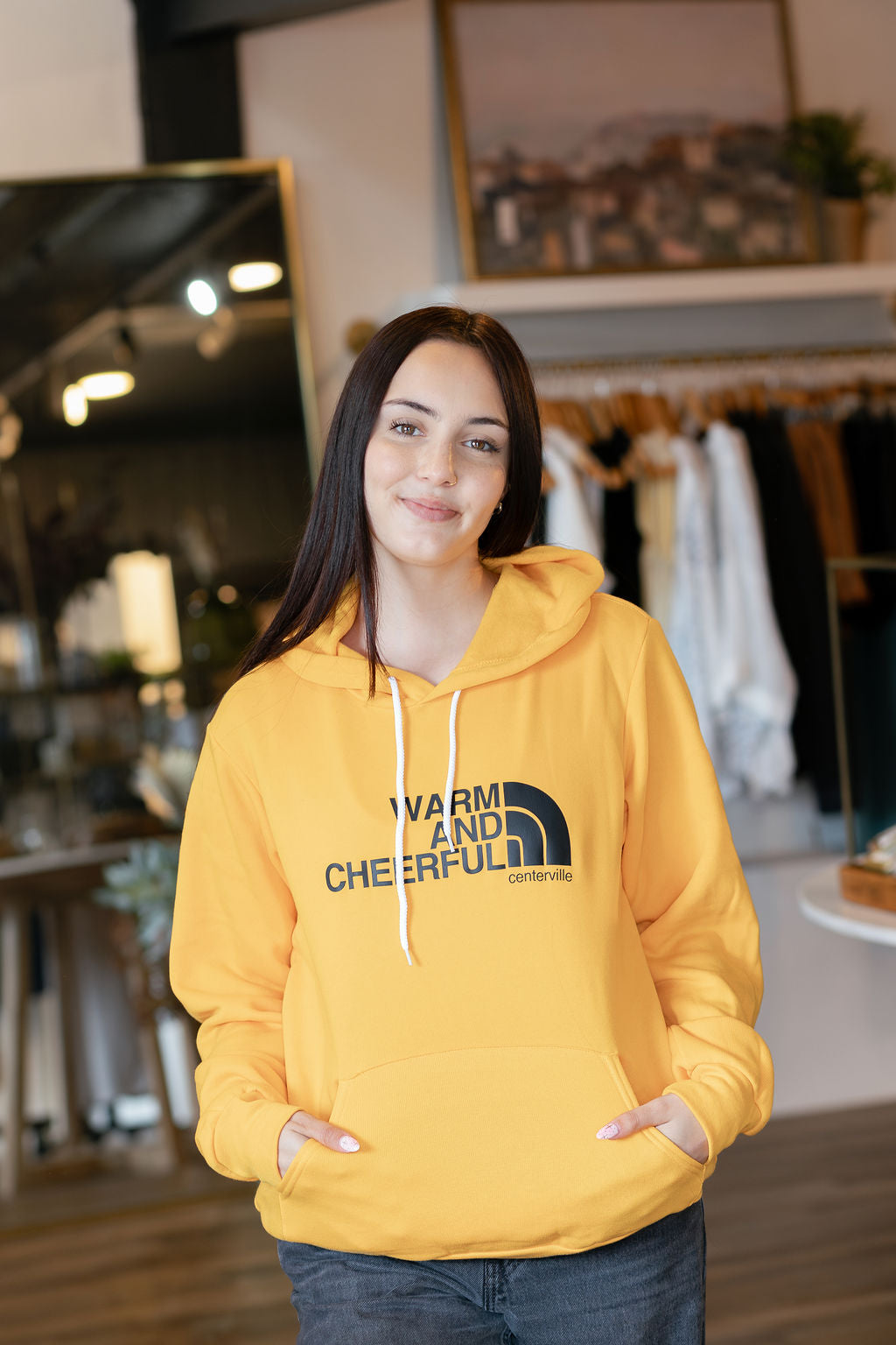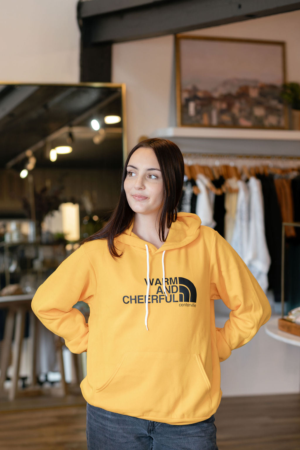 “Warm and cheerful Centerville” has always been the unofficial motto of our sweet town. When the signage came down, this has only become a phrase and sentiment throughout the years. Playing off of "The North Face" logo, Katie Lee Design Co brings us her exclusive "The Elk Face" design. Available in mustard yellow.