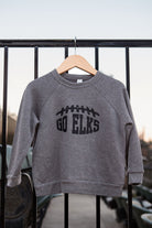 Show your team spirit with the Grey Football GO ELKS Crew! This cozy, stylish crewneck is perfect for game day or casual wear, keeping you comfy while you cheer on your favorite team. Its sleek grey color pairs easily with any outfit, making it a fun and versatile addition to your wardrobe. Get ready to shout "GO ELKS!" in style and comfort!
